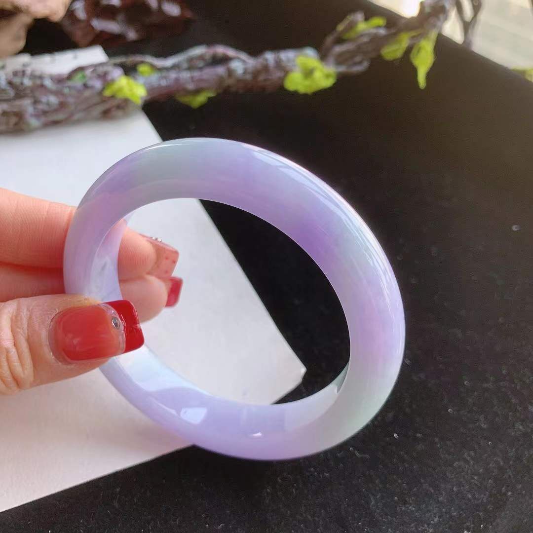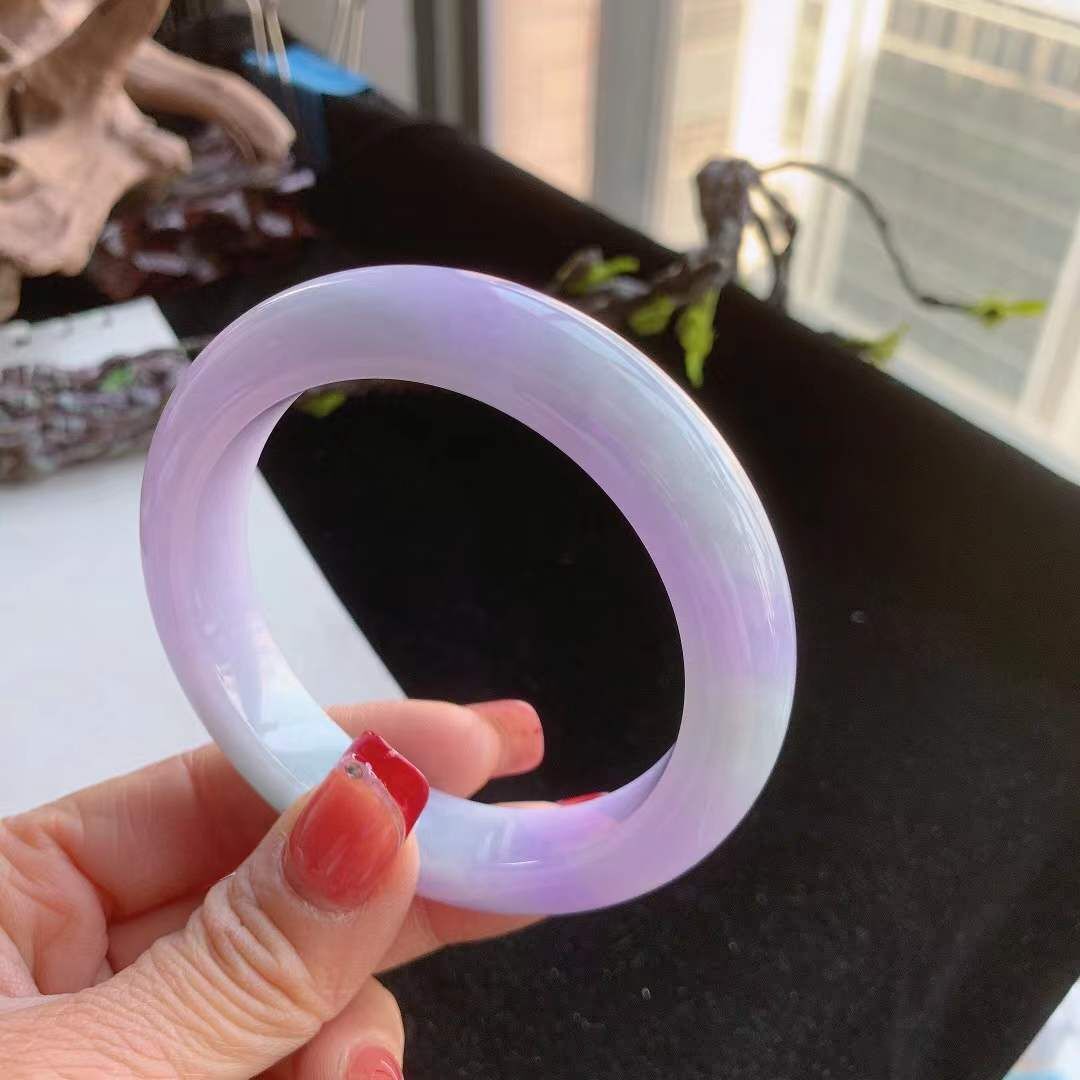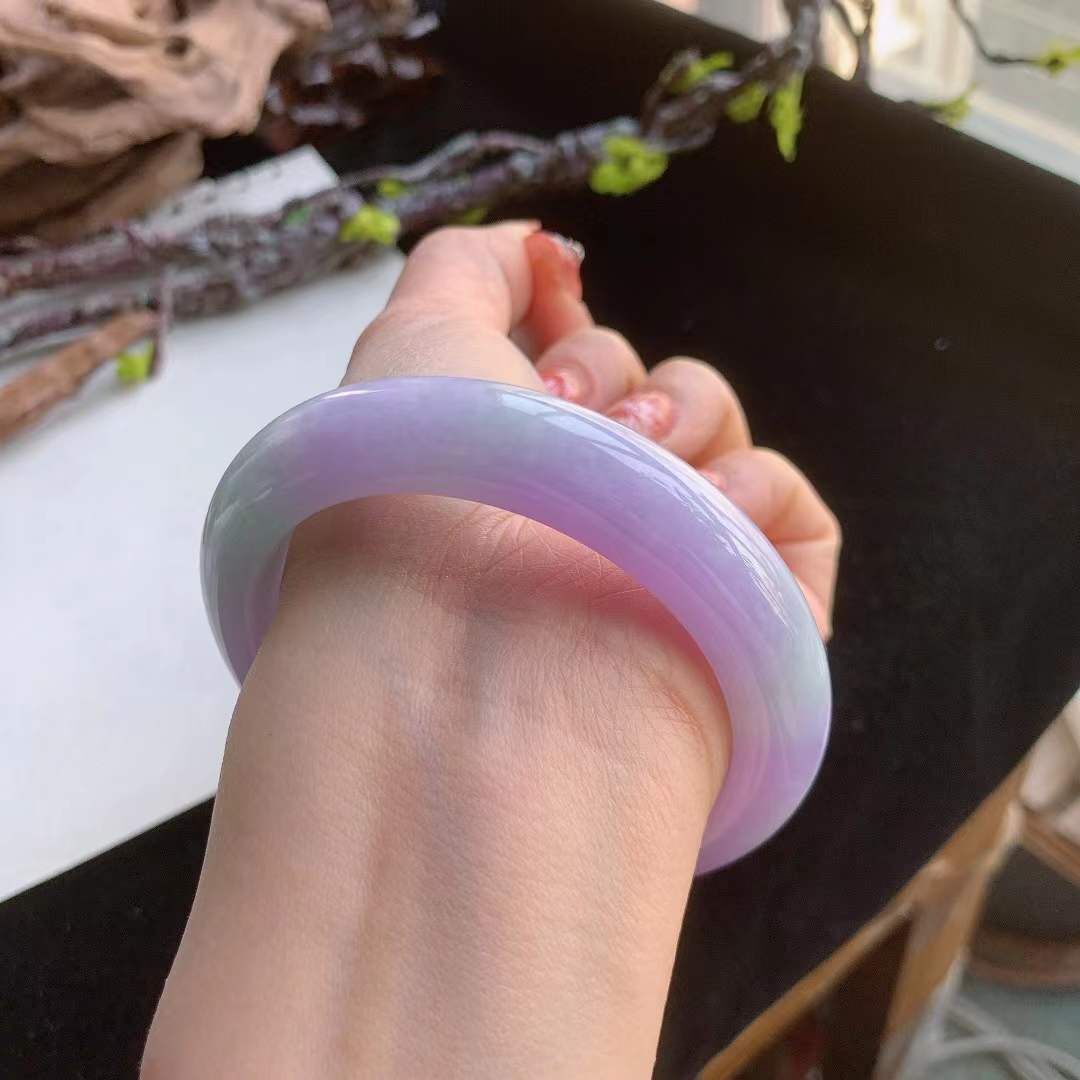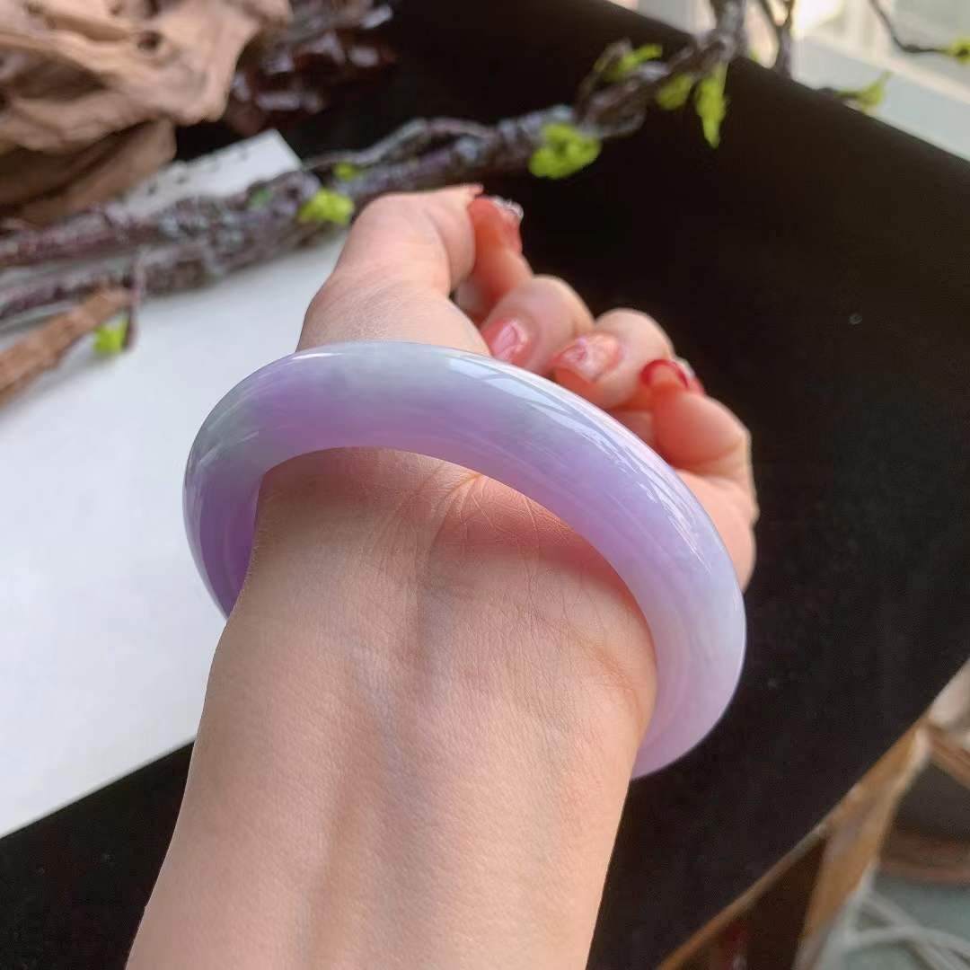 292640 59.4mm翡翠冰糯種紫羅蘭春彩手鐲