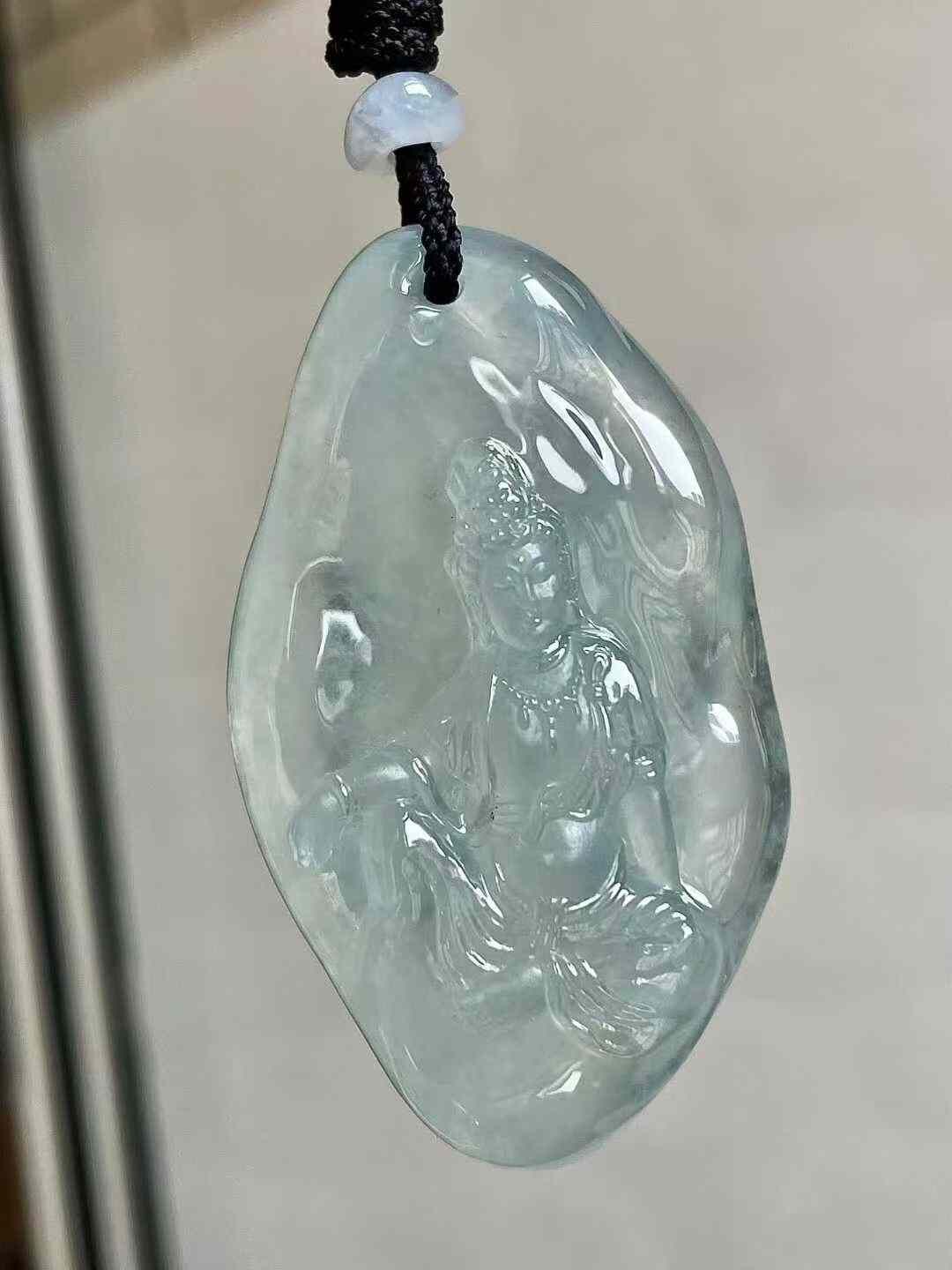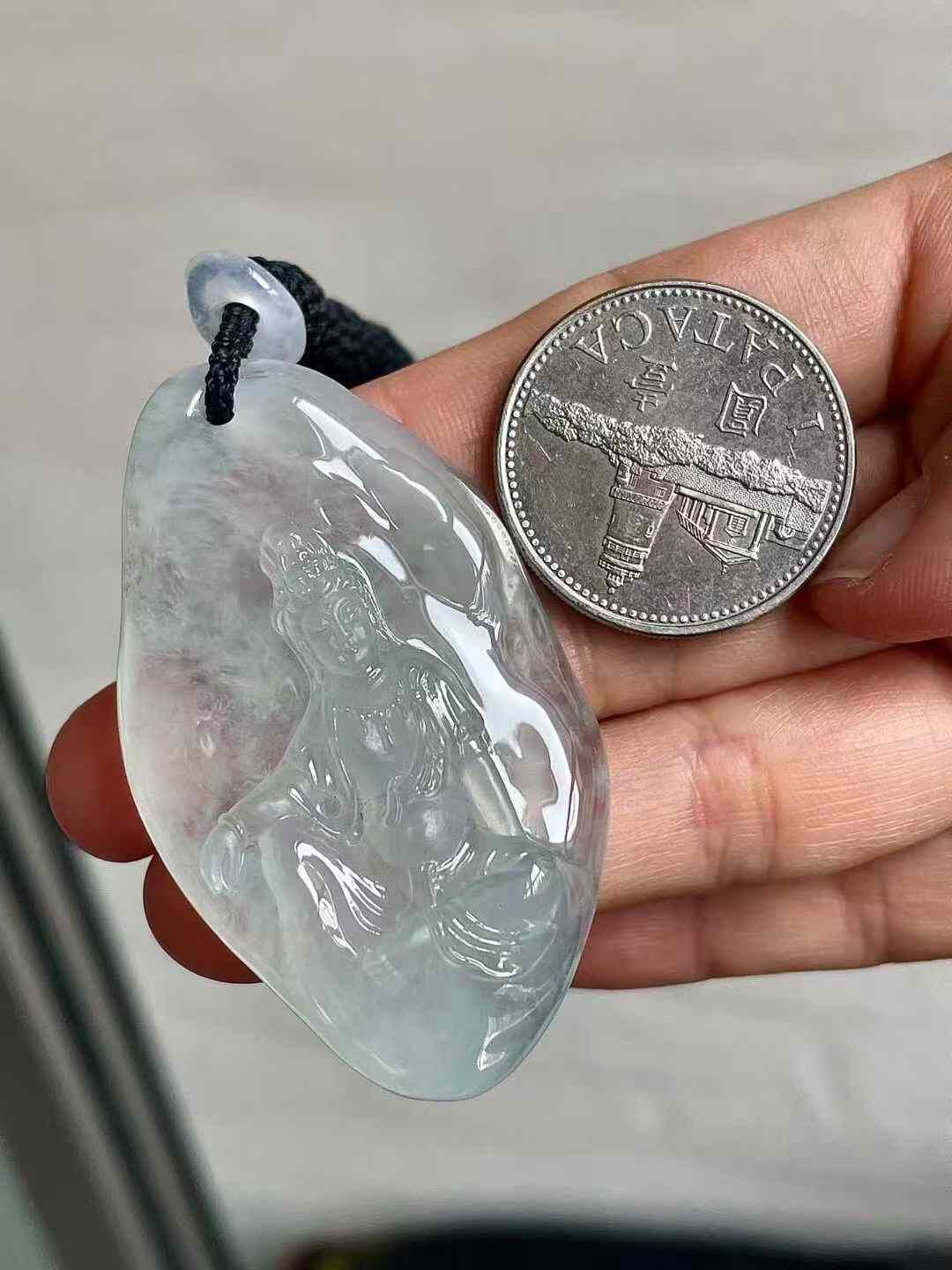 • 翡翠冰種自在觀音吊墜,天然翡翠A玉, 緬甸玉, Jade, Jadeite