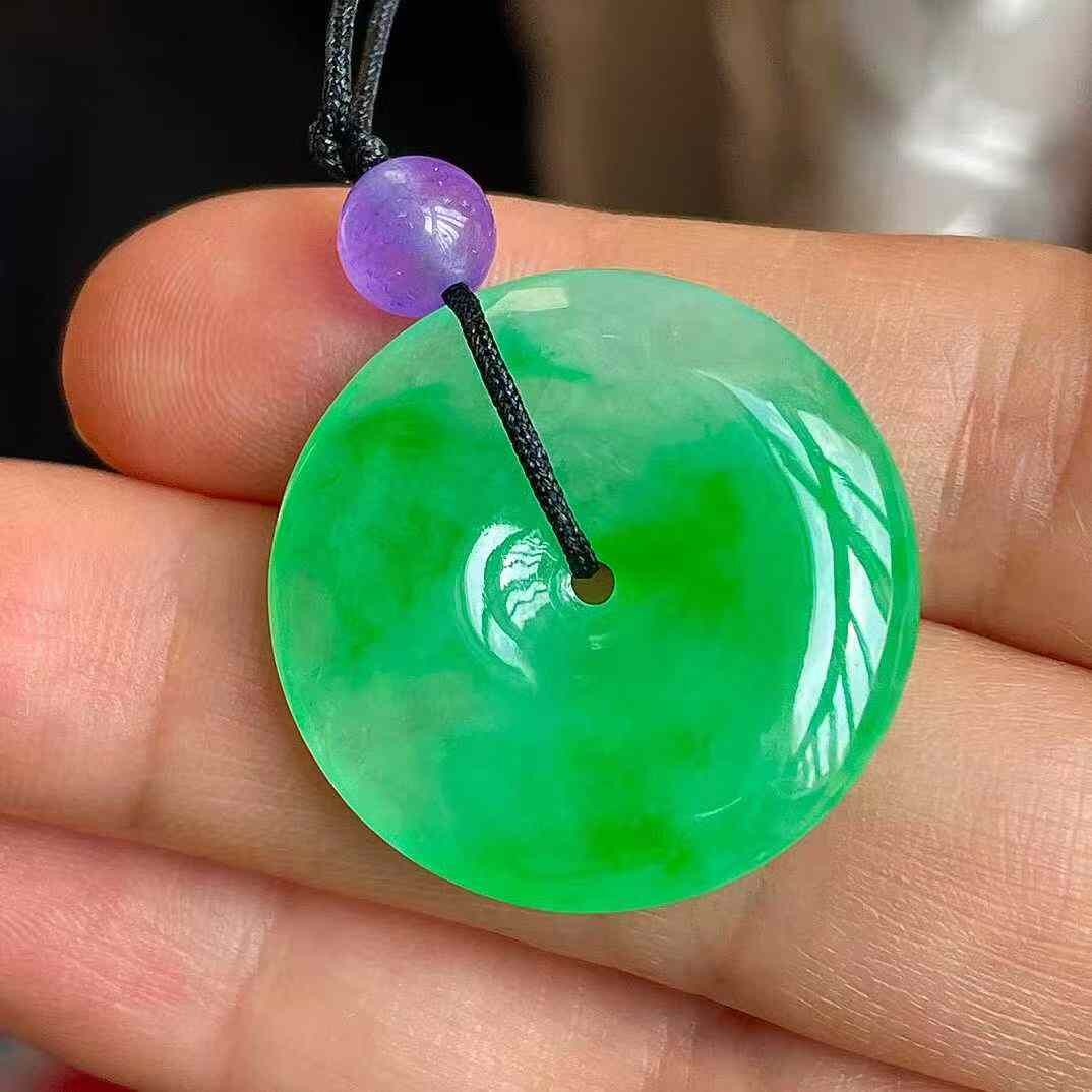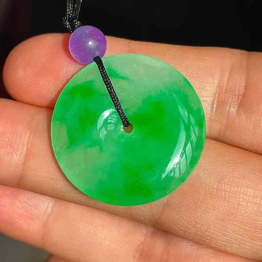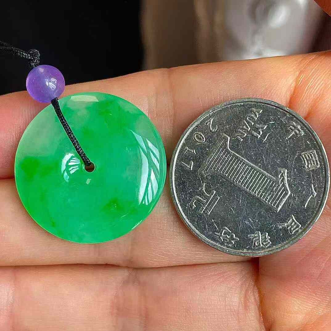 • 翡翠冰陽綠平安扣吊墜 (24mm直徑),天然翡翠A玉, 緬甸玉, Jade, Jadeite