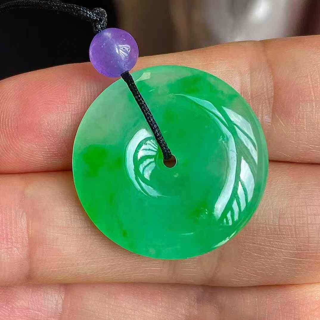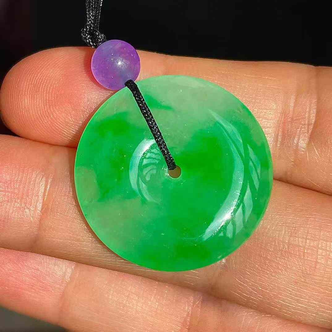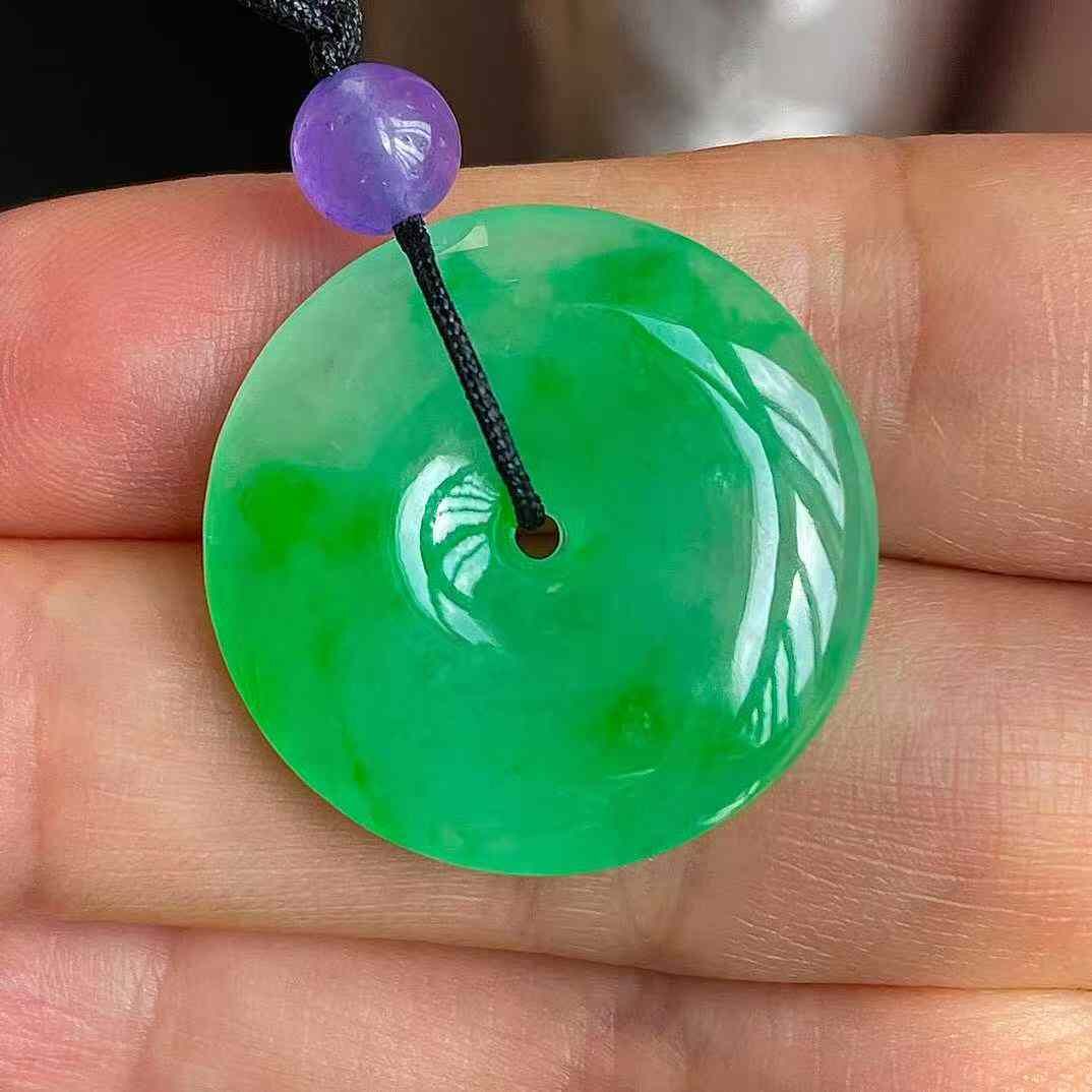 • 翡翠冰陽綠平安扣吊墜 (24mm直徑),天然翡翠A玉, 緬甸玉, Jade, Jadeite