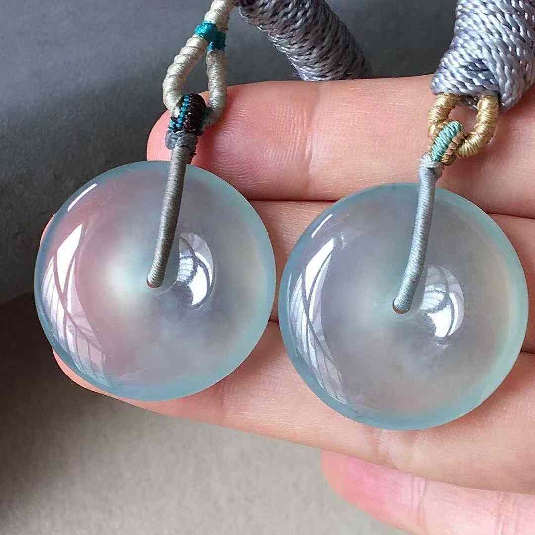 • 翡翠冰種平安扣一對,天然翡翠A玉, 緬甸玉, Jade, Jadeite