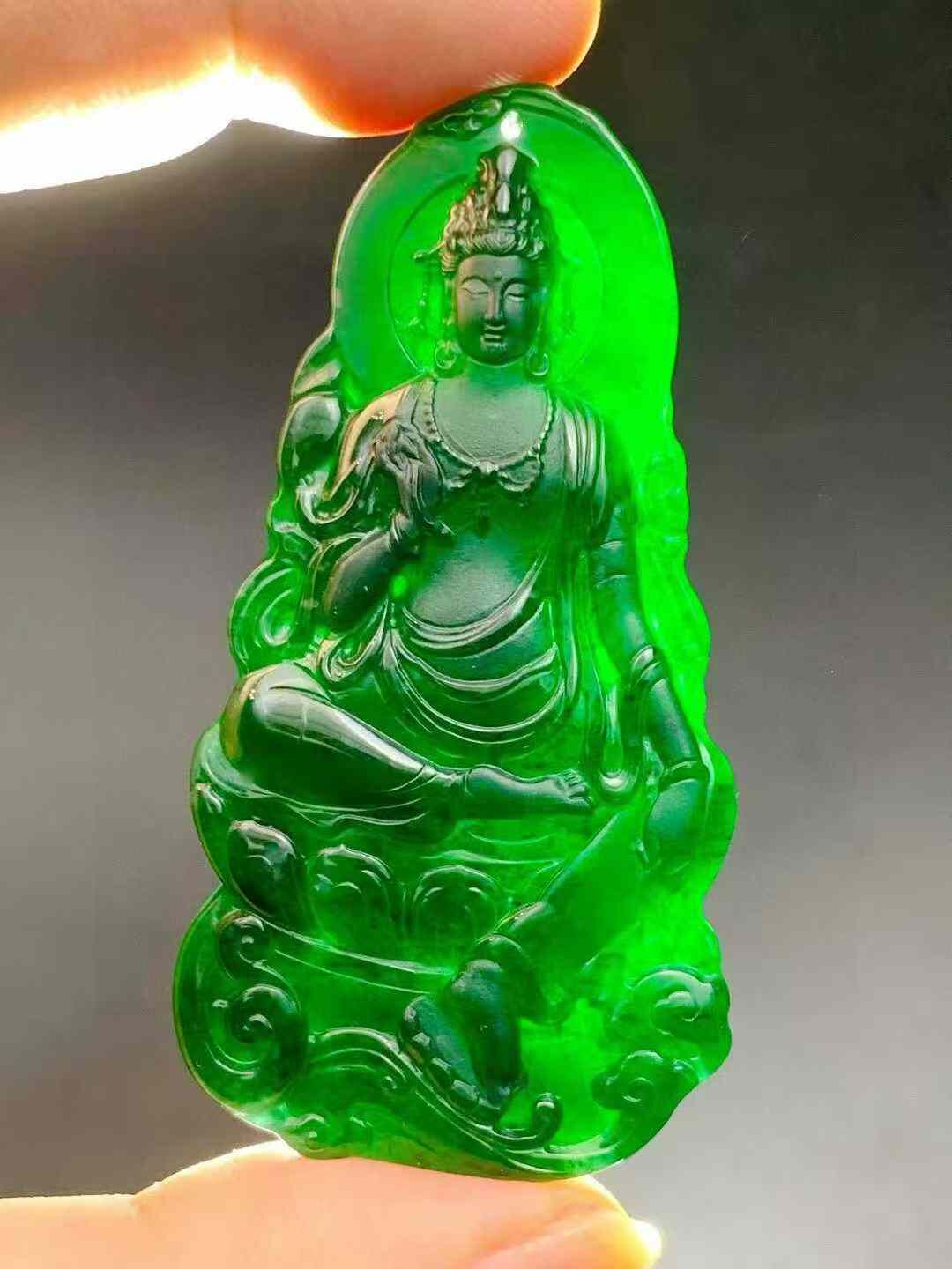 天然翡翠A玉,燈照透綠,雕工精美,完美無紋裂。