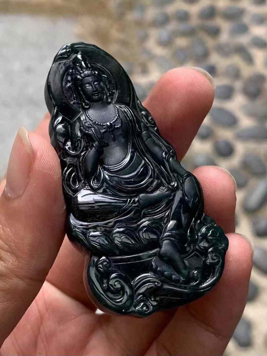 • 翡翠墨翠正裝觀音,天然翡翠A玉, 緬甸玉, Jade, Jadeite