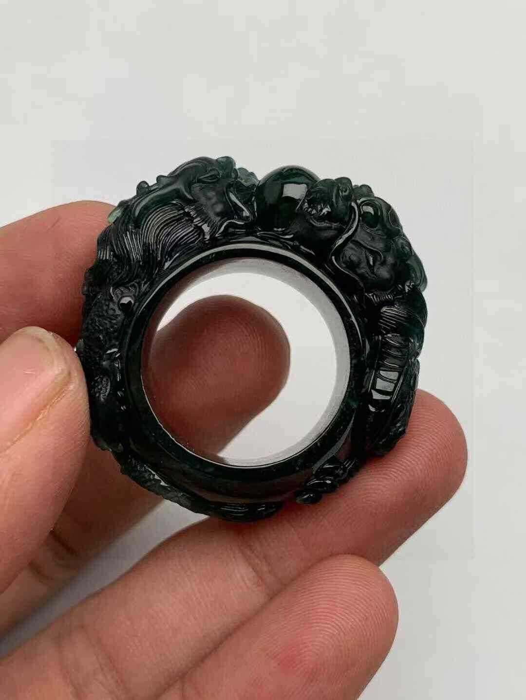 295949 翡翠墨翠雙龍戲珠指環