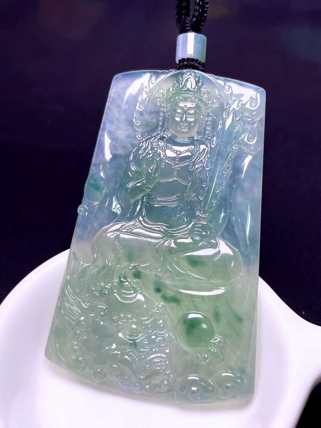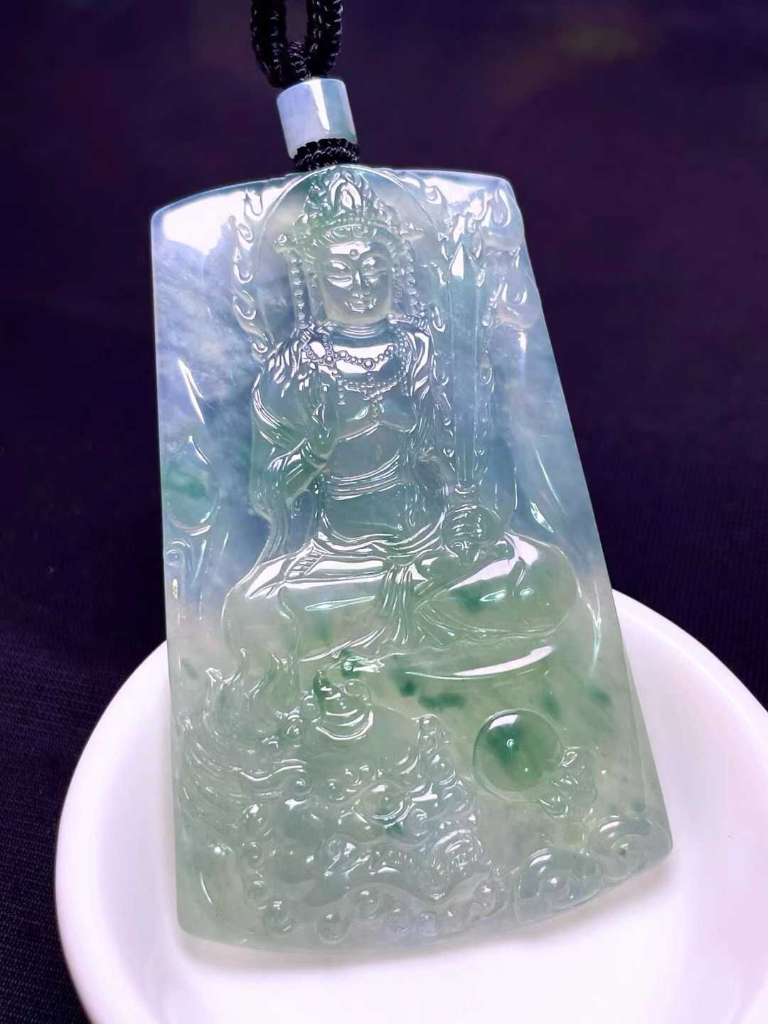 • 翡翠文殊菩薩吊墜,天然翡翠A玉, 緬甸玉, Jade, Jadeite