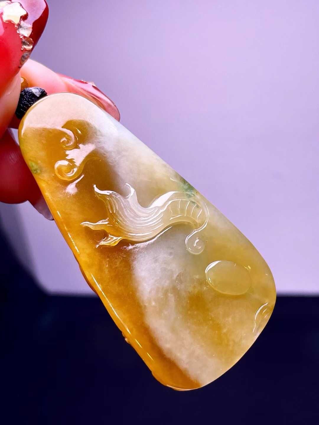 天然翡翠A玉,緬料,老坑冰種,黃翡飄花。