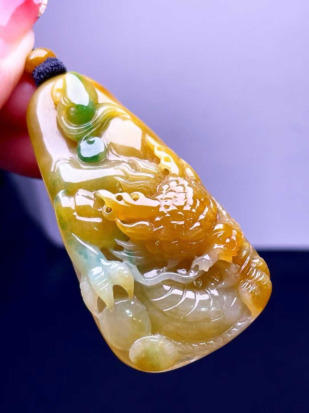 • 翡翠龍牌吊墜,天然翡翠A玉, 緬甸玉, Jade, Jadeite