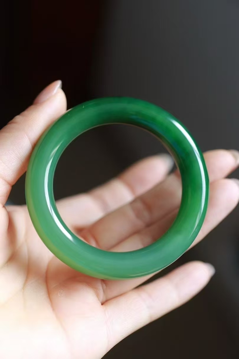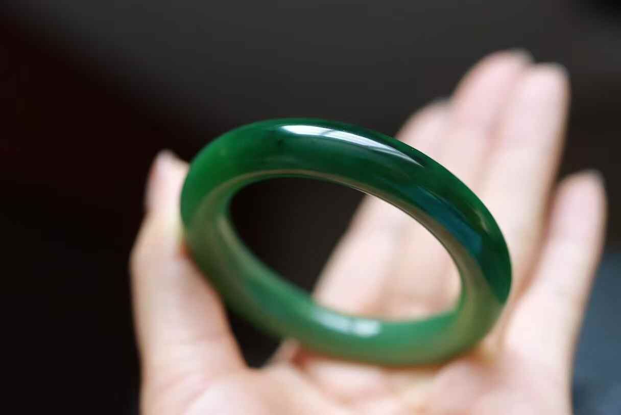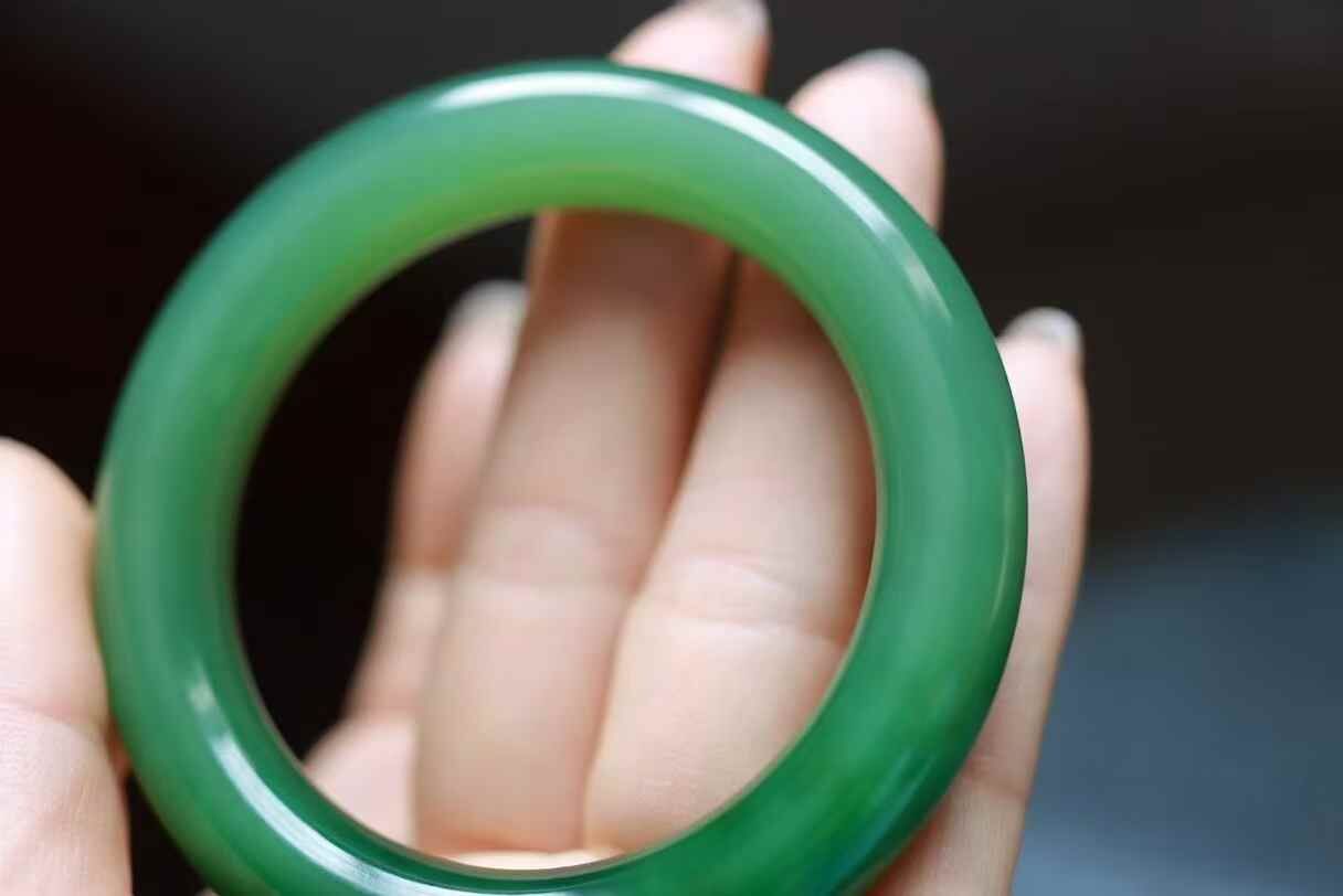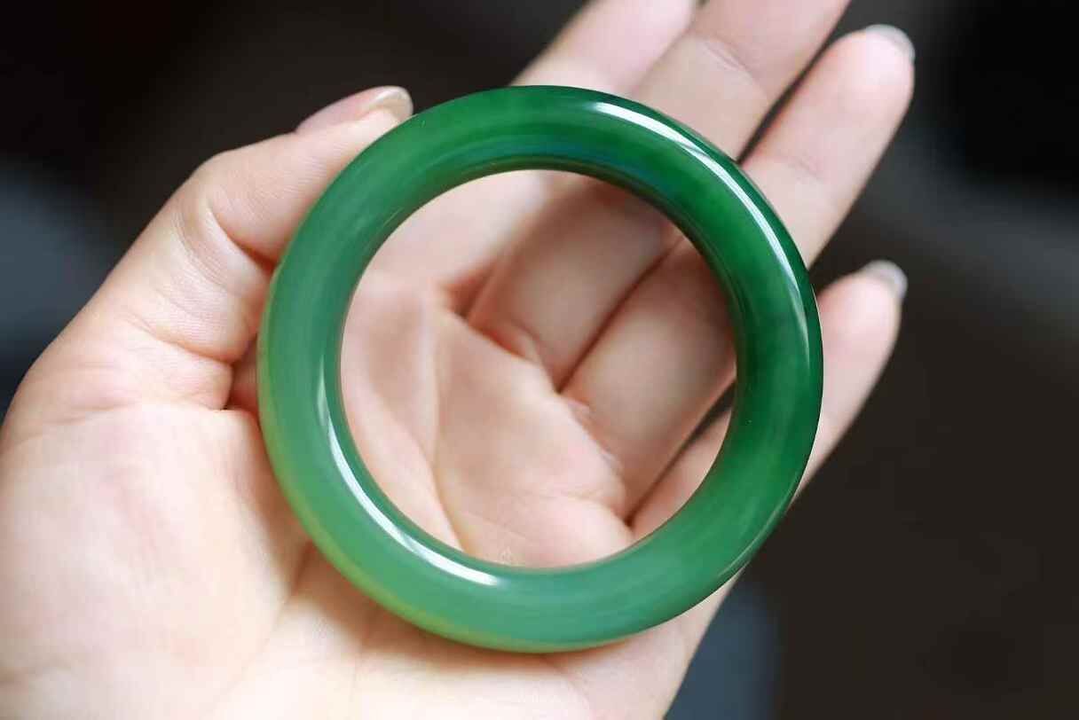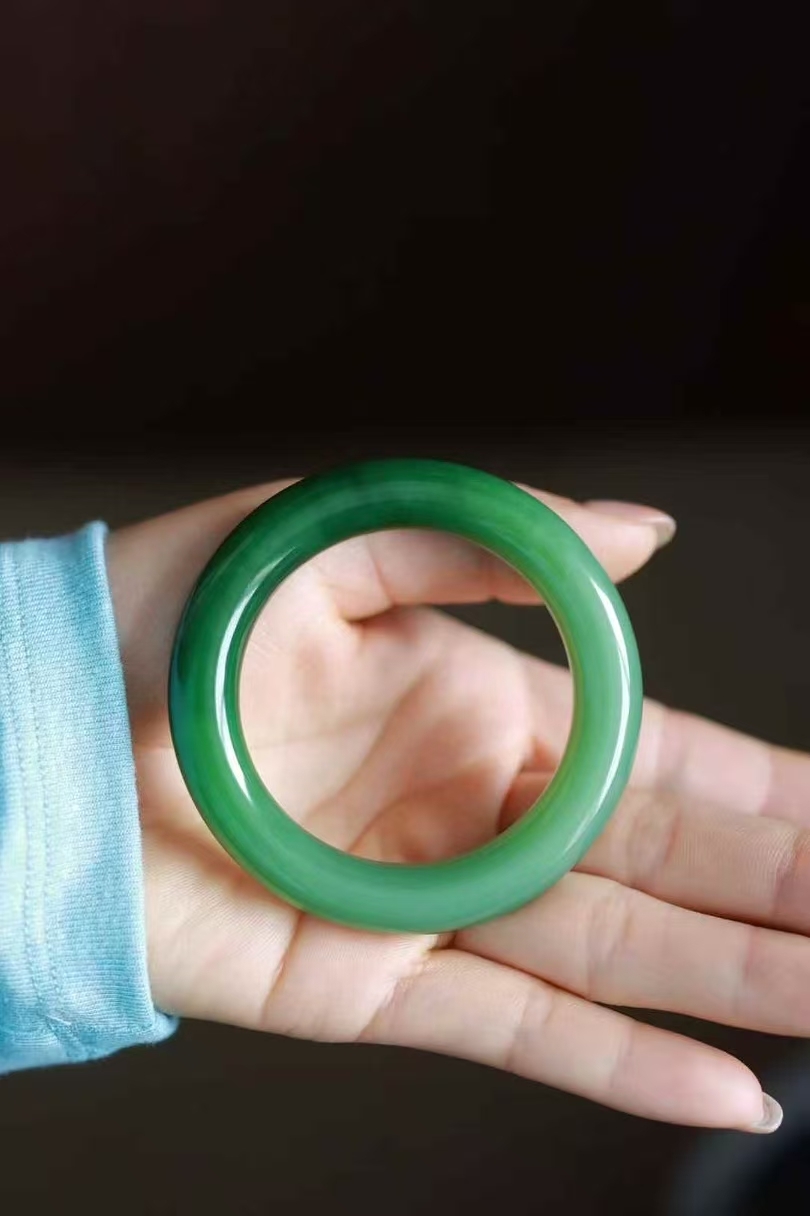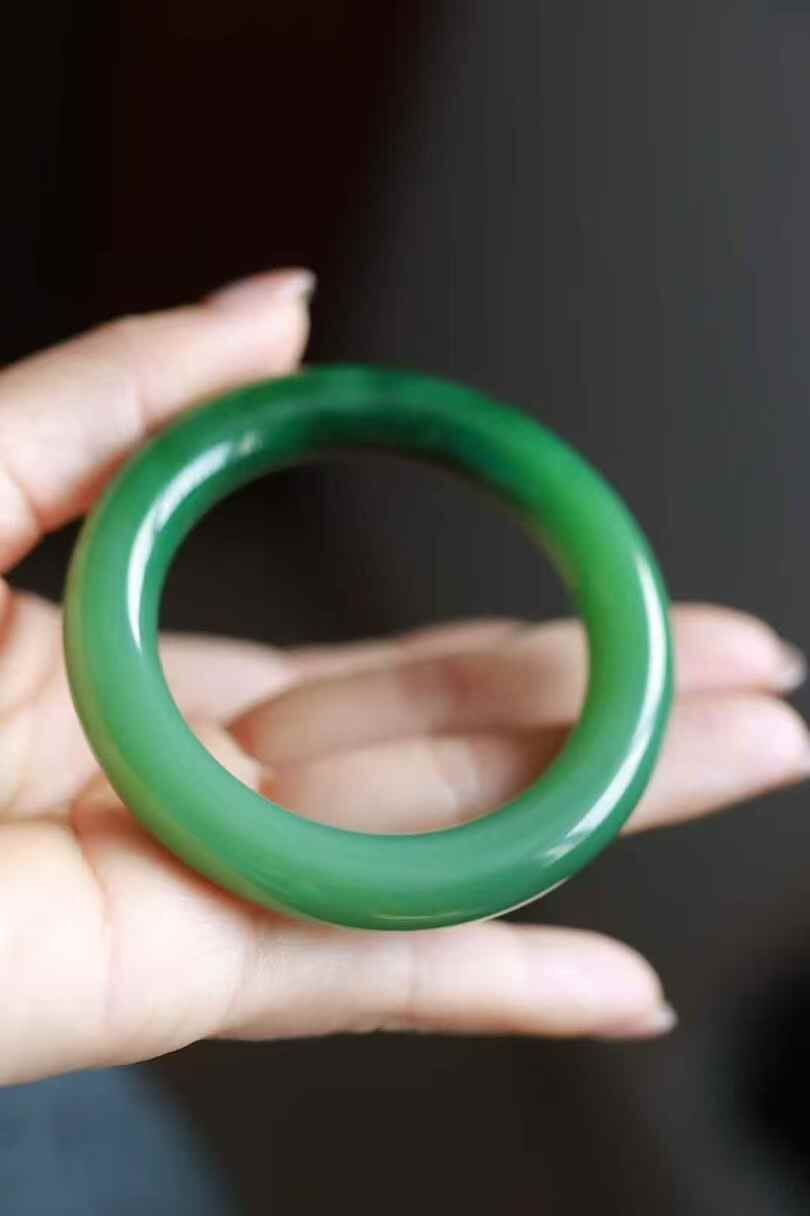 315710 52mm和田玉碧玉白加綠古典胖圓條鐲