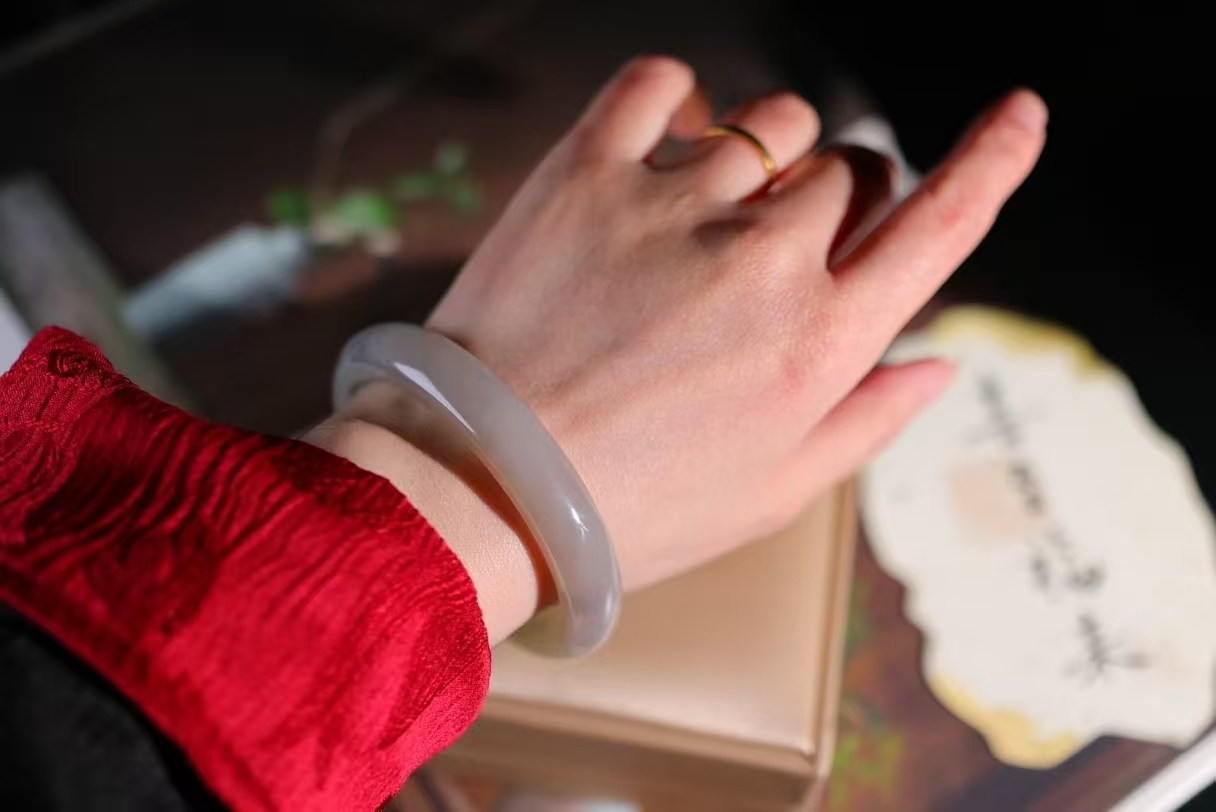 天然和田玉,煙紫翠青雙色泥鰍平安手鐲,細膩油脂,手感潤滑。意韻飄渺,溫雅細膩,工藝精湛,氤氳詩意的美躍然於手腕之間,給人以出塵的風雅,優美脫俗,氣質非凡。