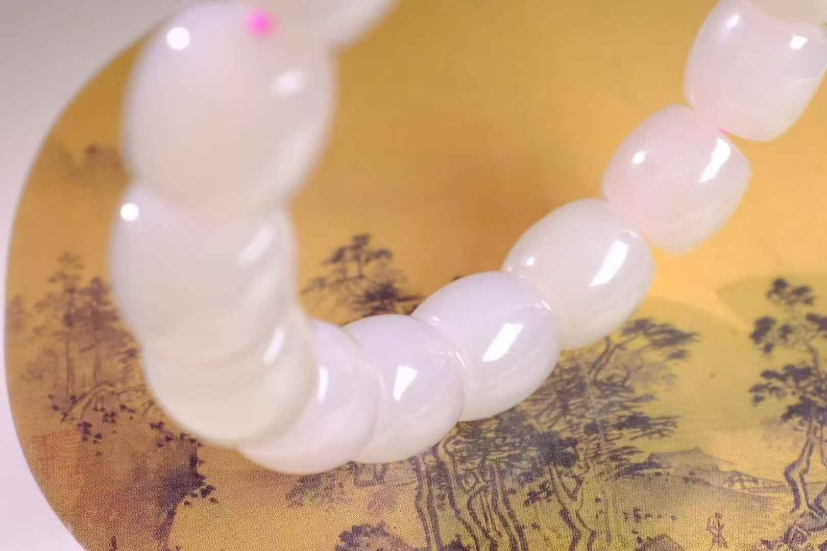 315718 和田玉藕粉直切珠手串 (12mm直徑)