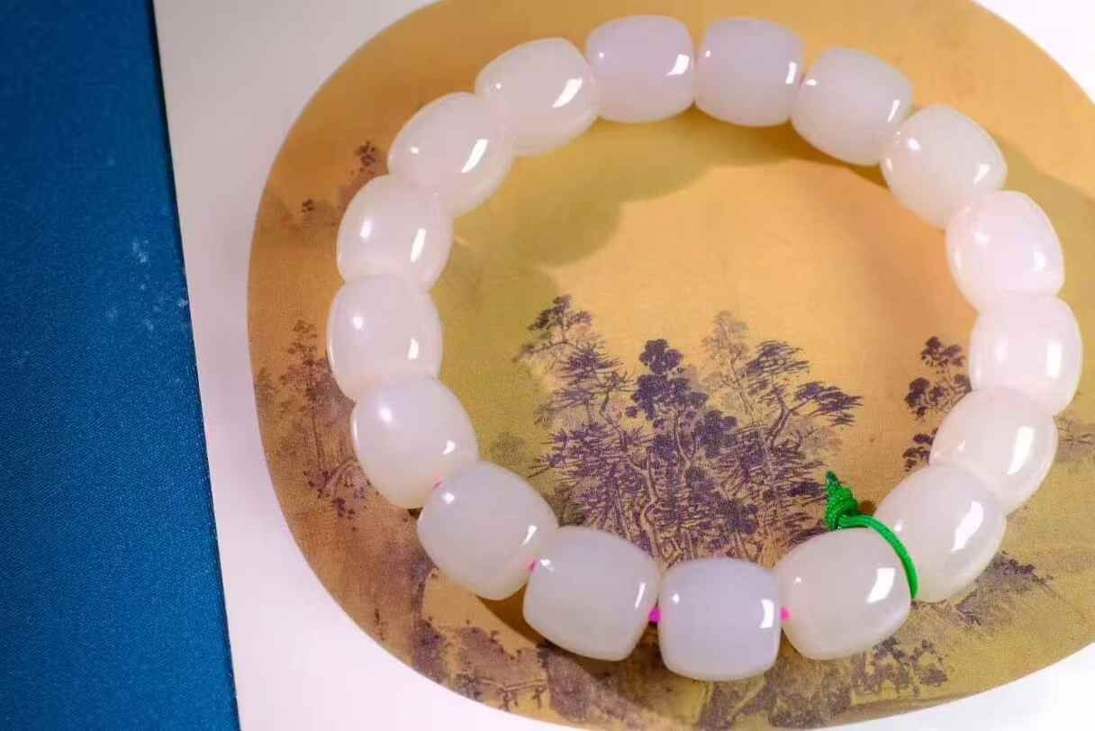 • 和田玉藕粉直切珠手串 (12mm直徑),天然和田玉軟玉