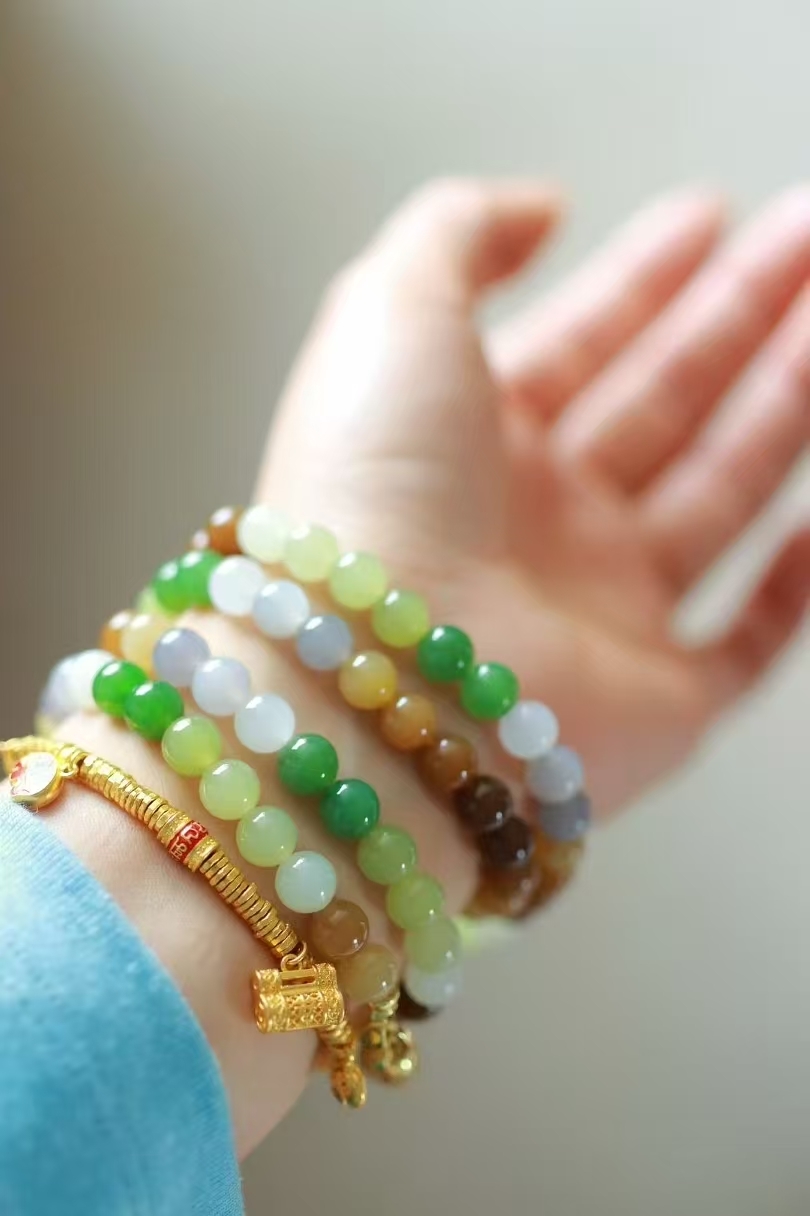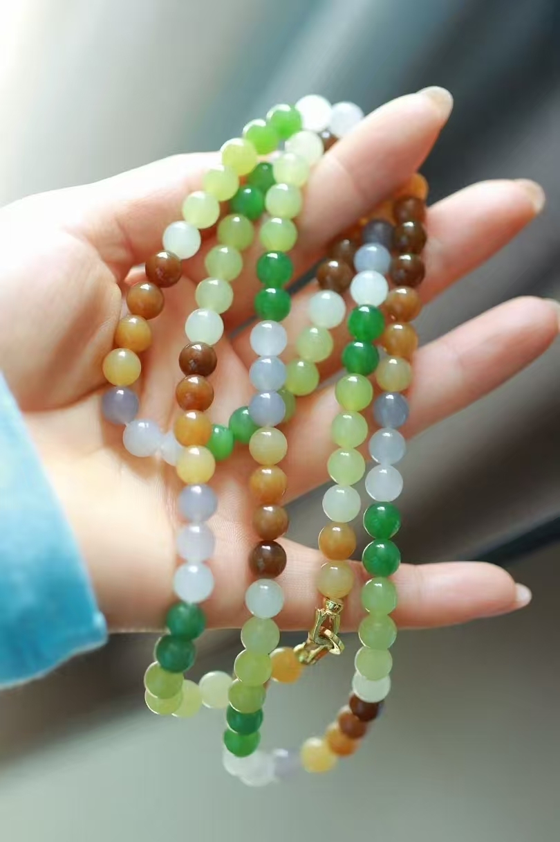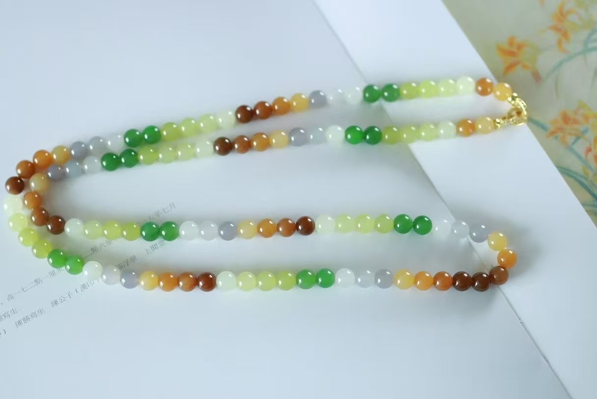 • 和田玉彩虹多寶珠串 (8mm直徑),天然和田玉軟玉