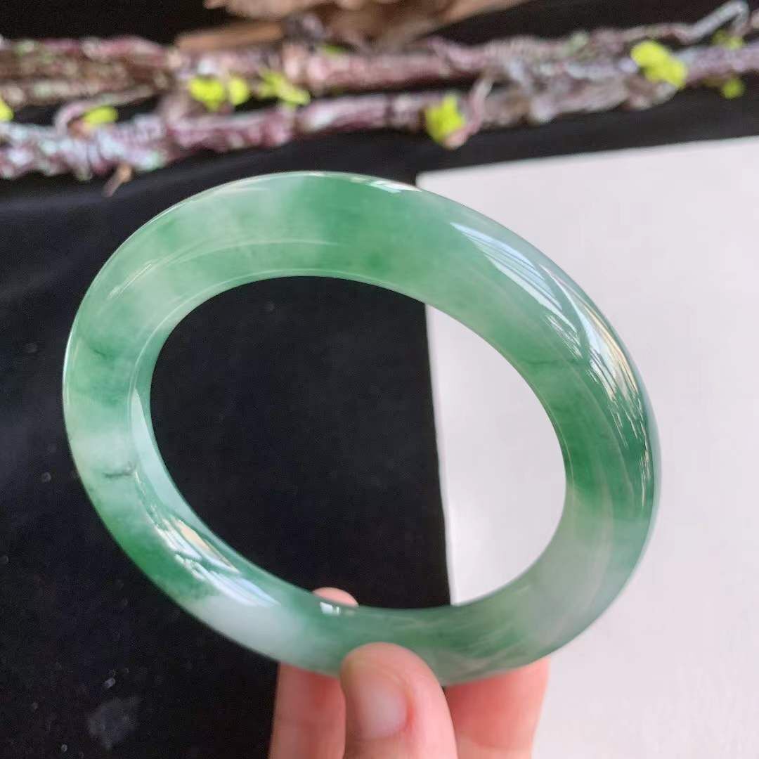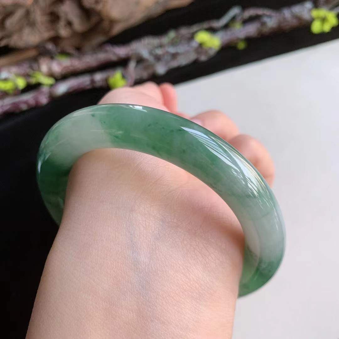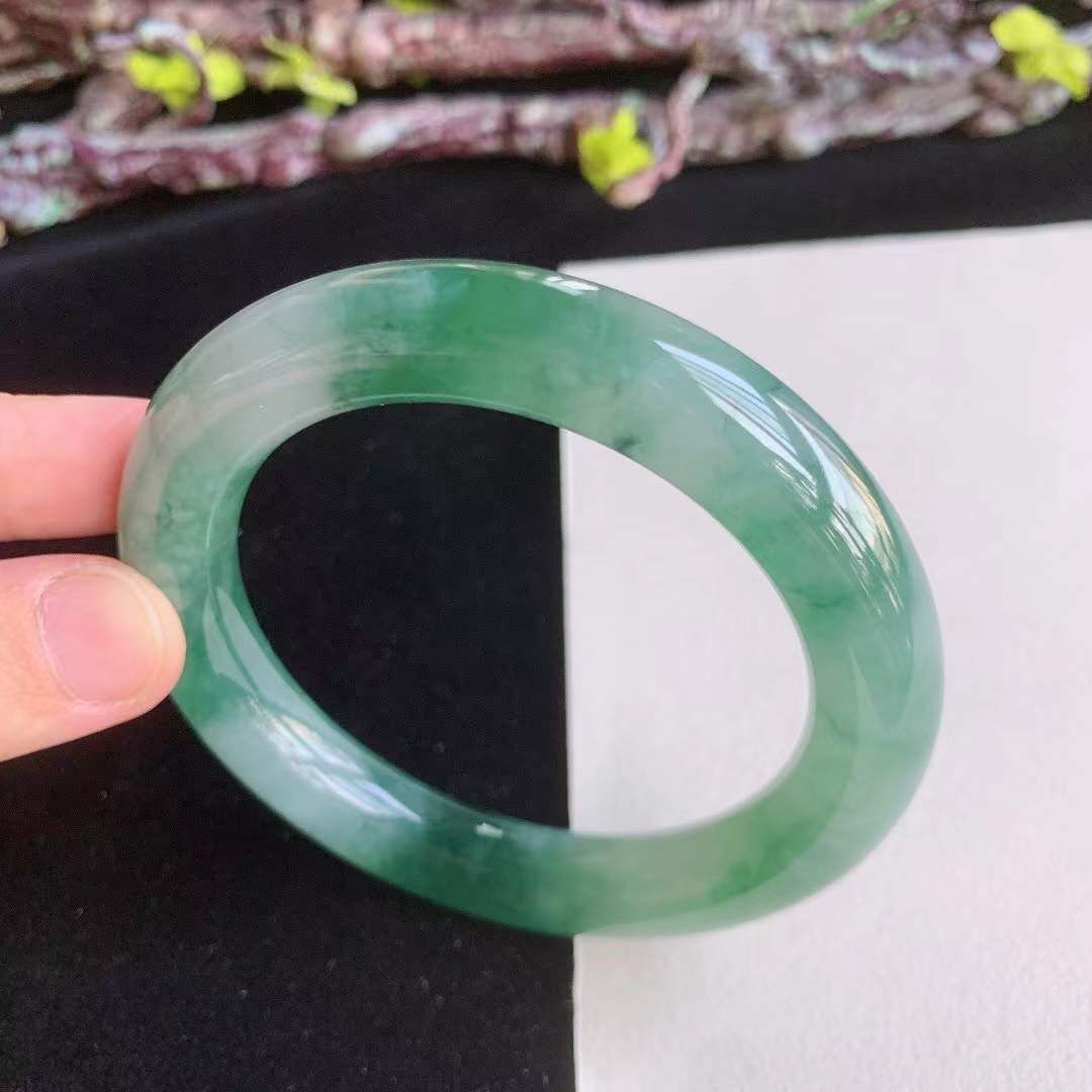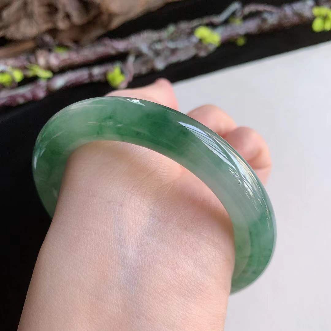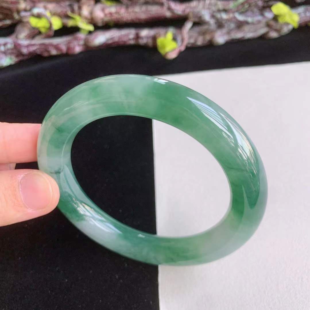 3162642 56.7mm翡翠冰種冰潤冰綠圓條手鐲