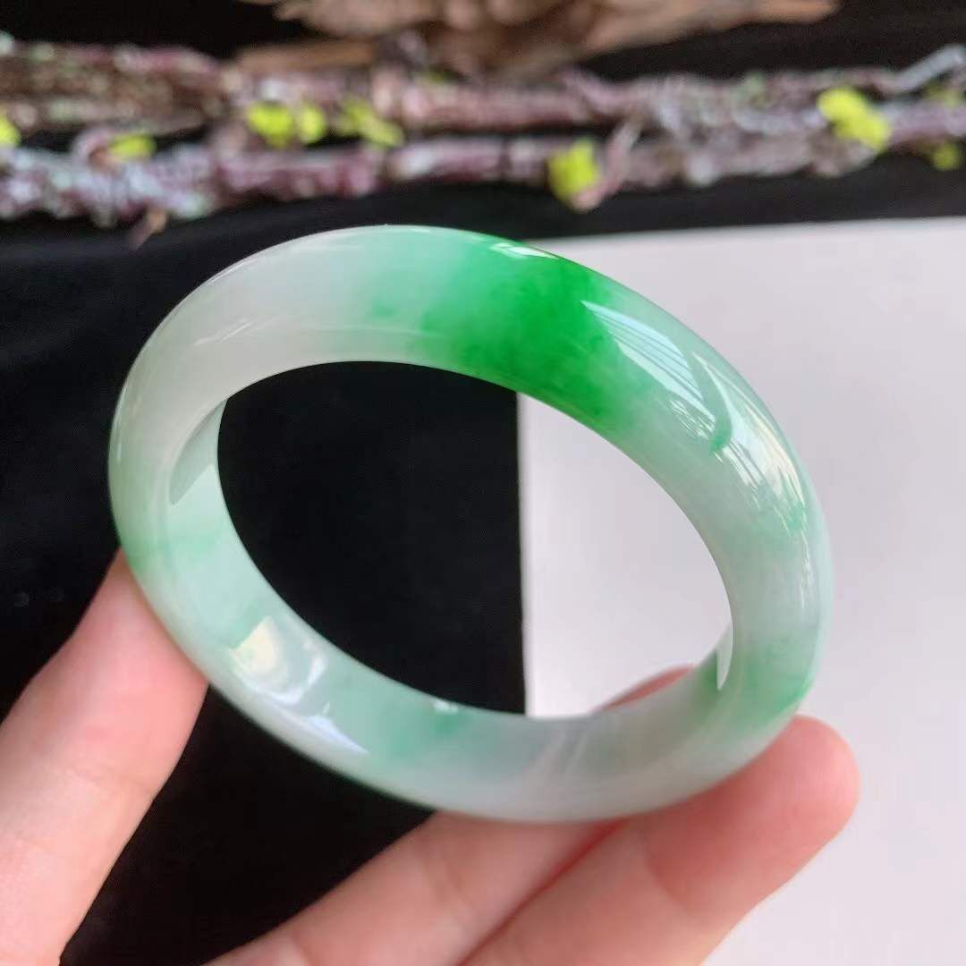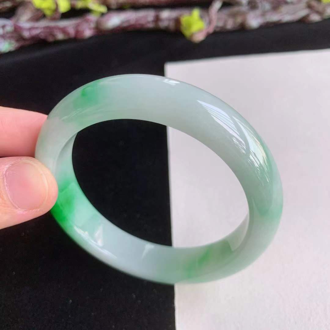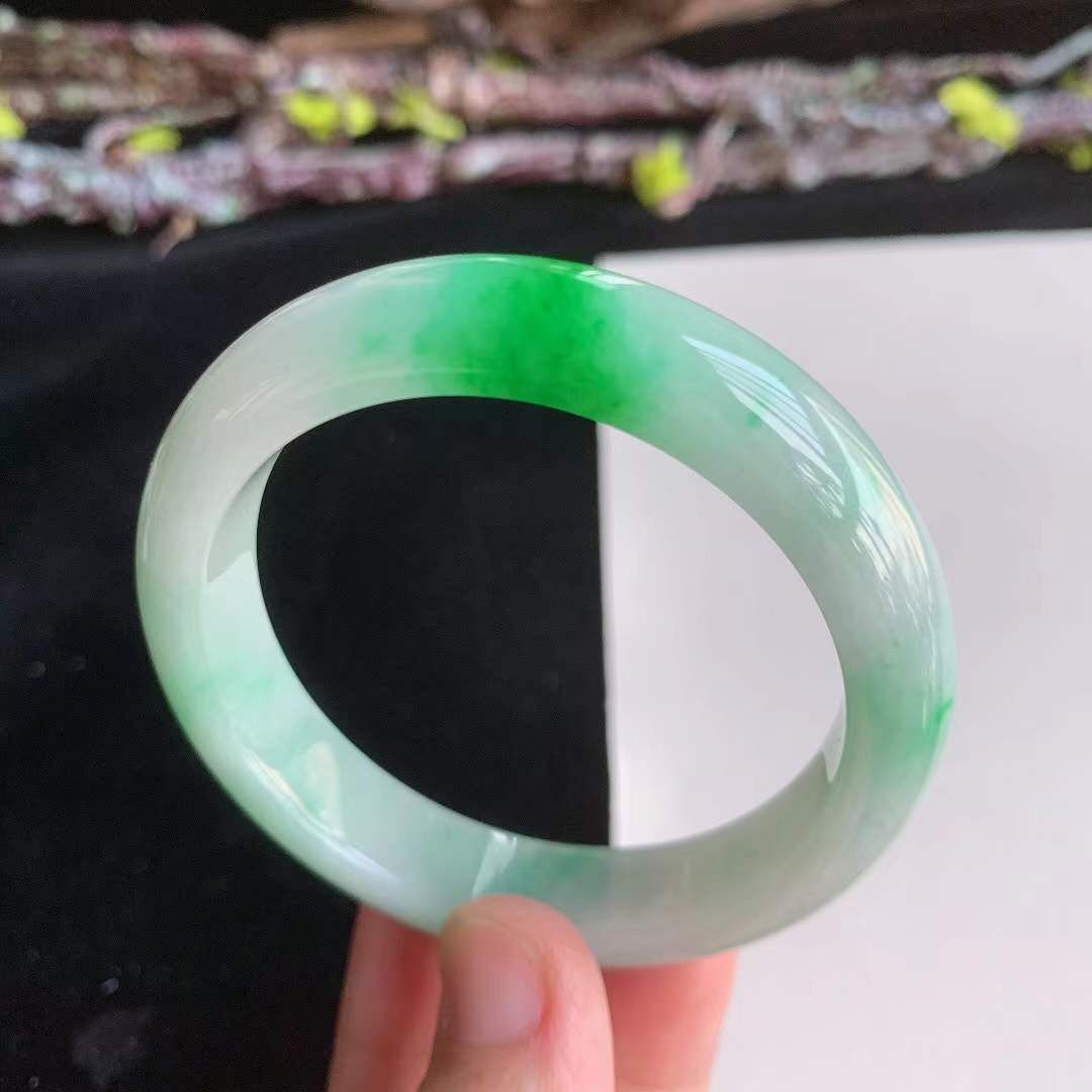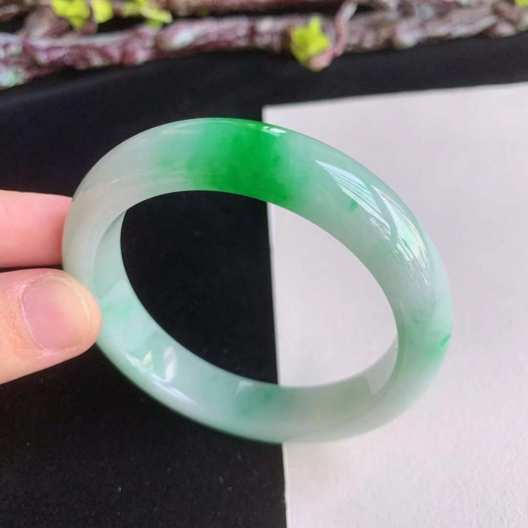 3162643 51.6mm翡翠冰糯種水潤飄陽綠正圈手鐲