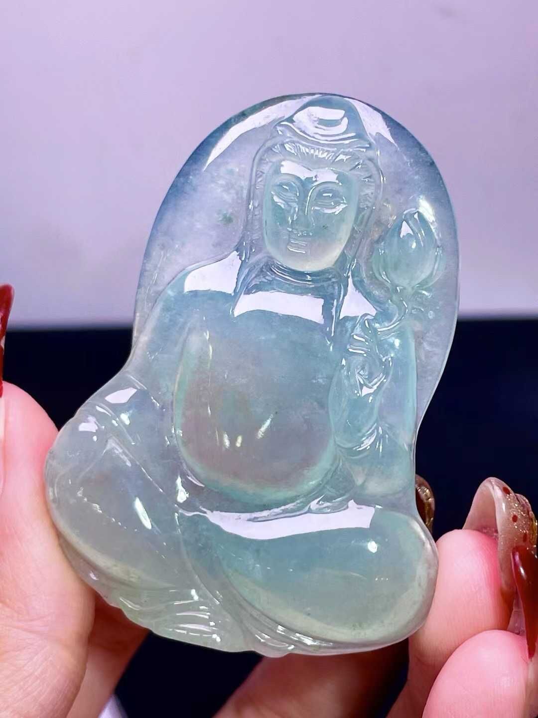 • 翡翠觀音吊墜,天然翡翠A玉, 緬甸玉, Jade, Jadeite