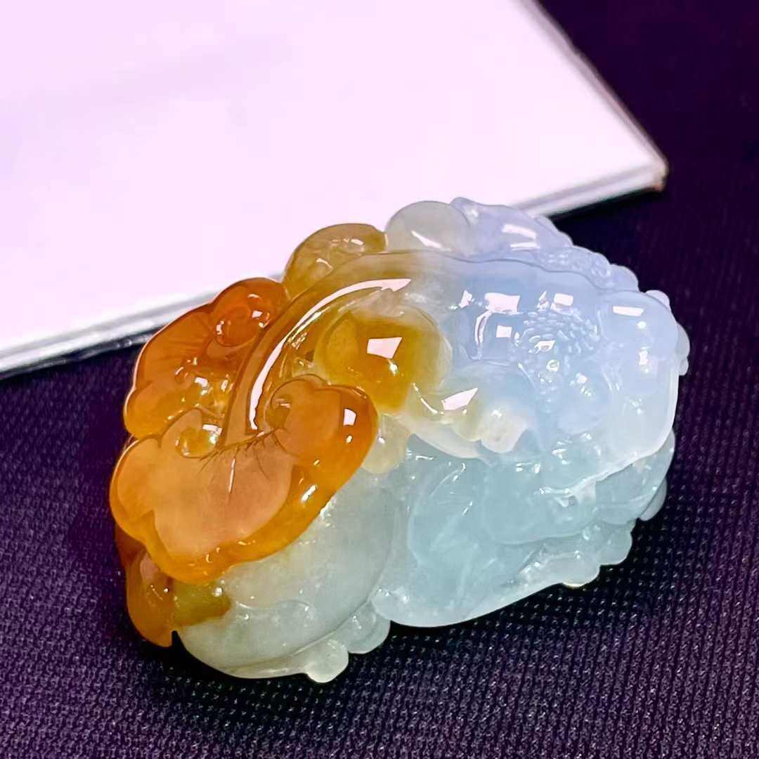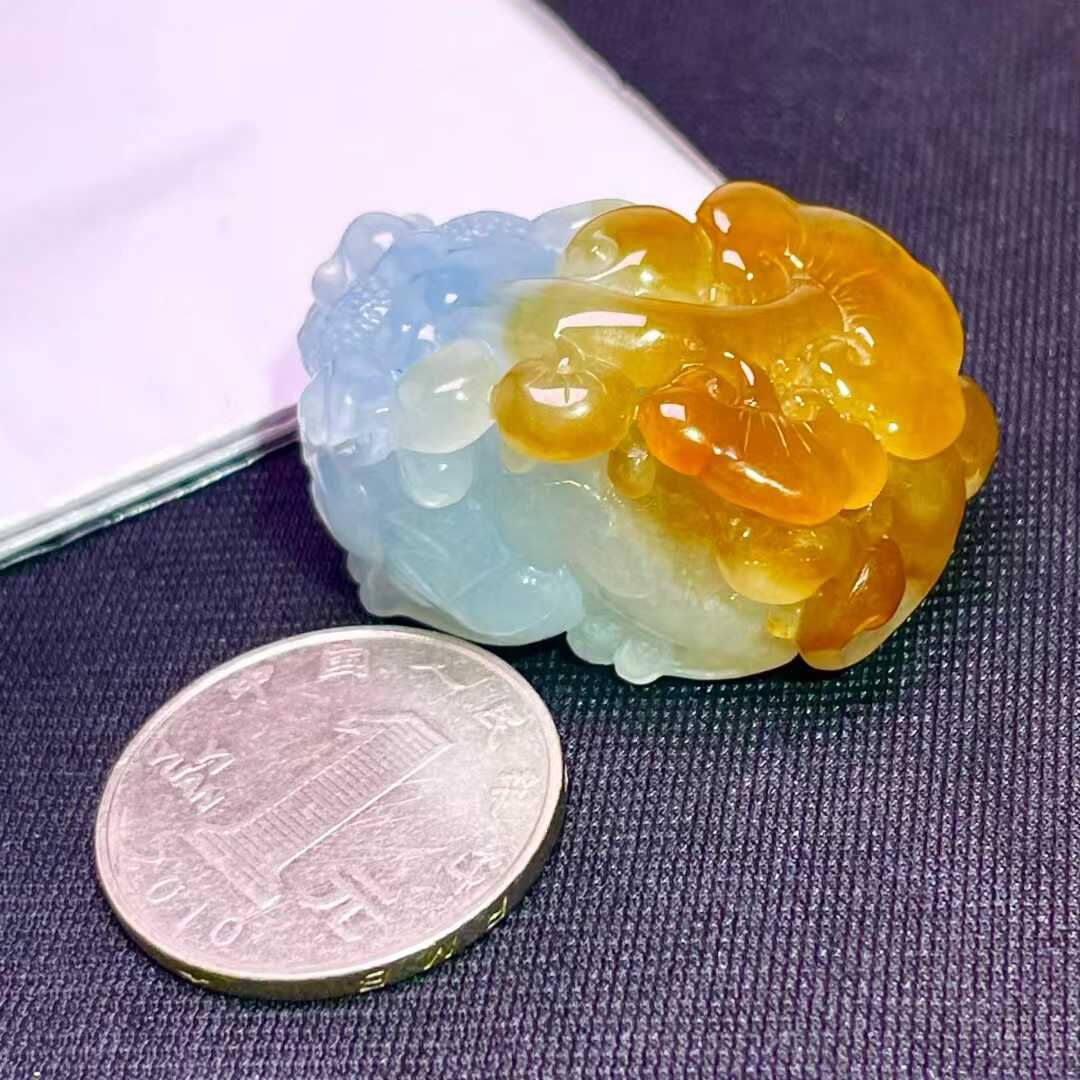 天然翡翠A玉,緬料,老坑冰種,黃翡,口含活動寶珠。