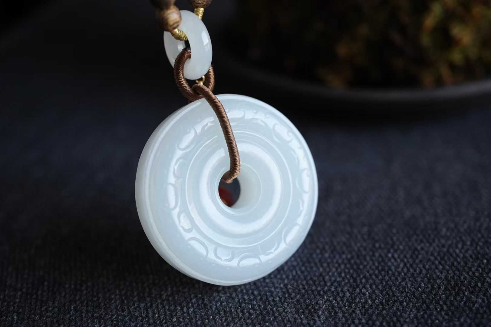 316435 和田玉俄料羊脂玉祥雲平安扣掛件 (33.6mm直徑)