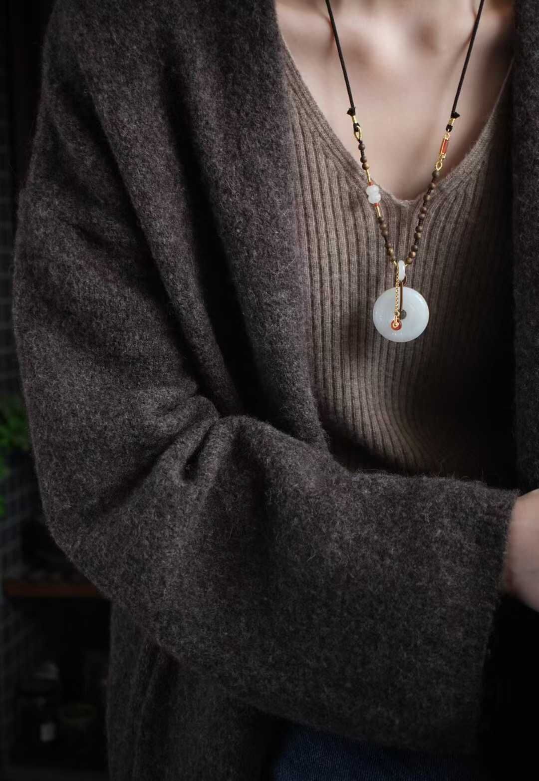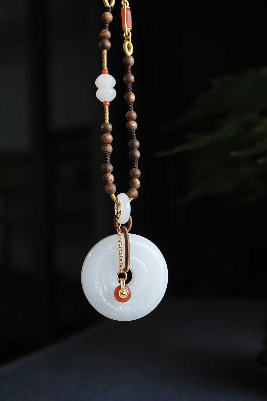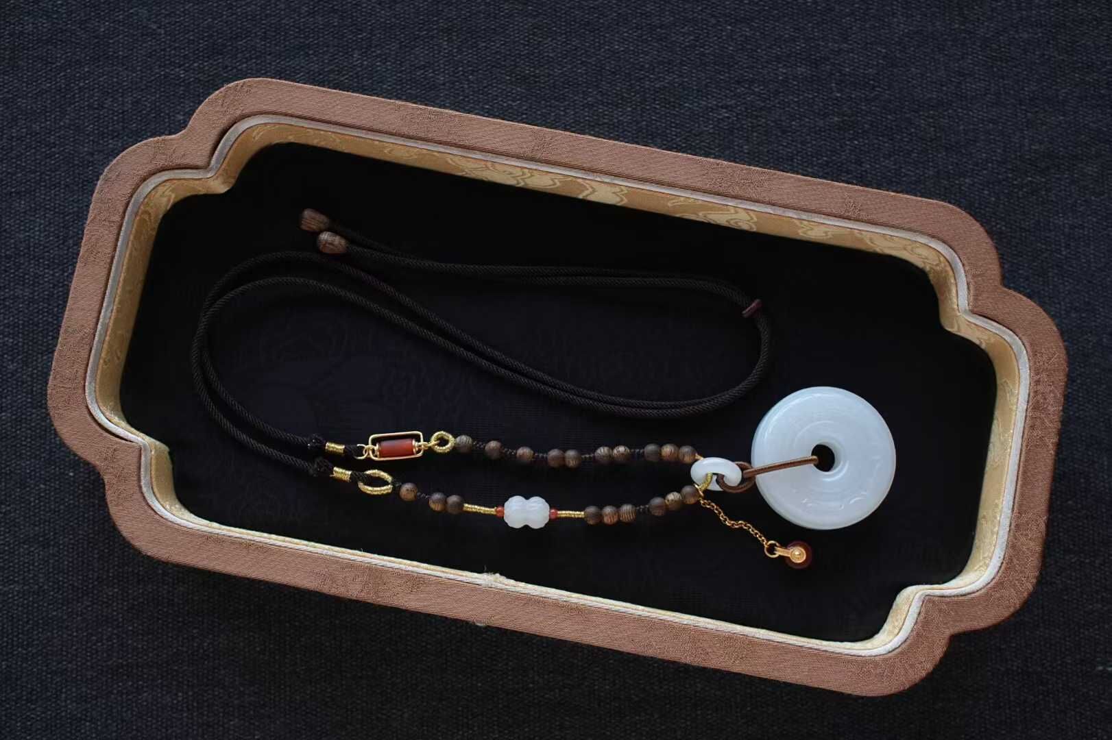 平安扣外圈圓融,內圈圓滿,純手工雕刻連綿祥雲紋,線條婉轉流暢,如雲霧舒卷。純手工製作進口調節繩,點綴天然沉香、白玉並蒂蓮、白玉甜甜圈、純銀鍍金配飾,寓意「吉祥如意、福運綿延」,淡淡雅香,自戴或送禮皆是心意之選。金屬部分均為925純銀鍍金。