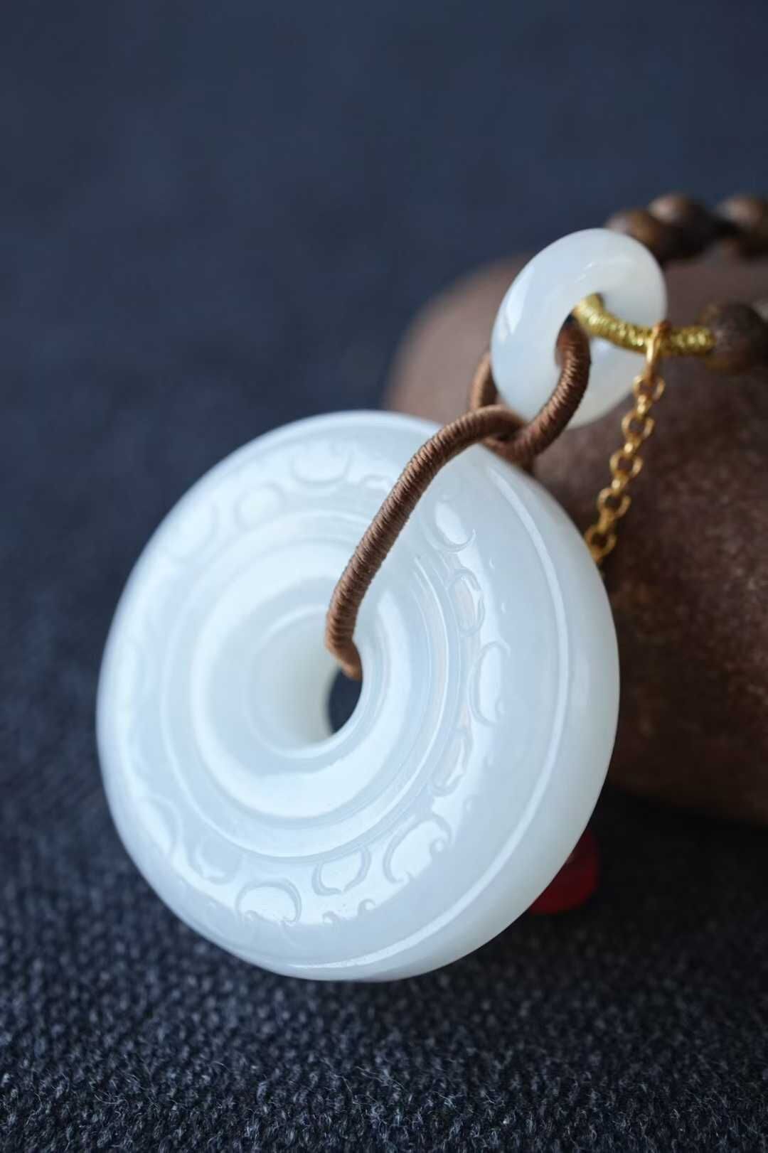 • 和田玉俄料羊脂玉祥雲平安扣掛件 (33.6mm直徑),天然和田玉軟玉