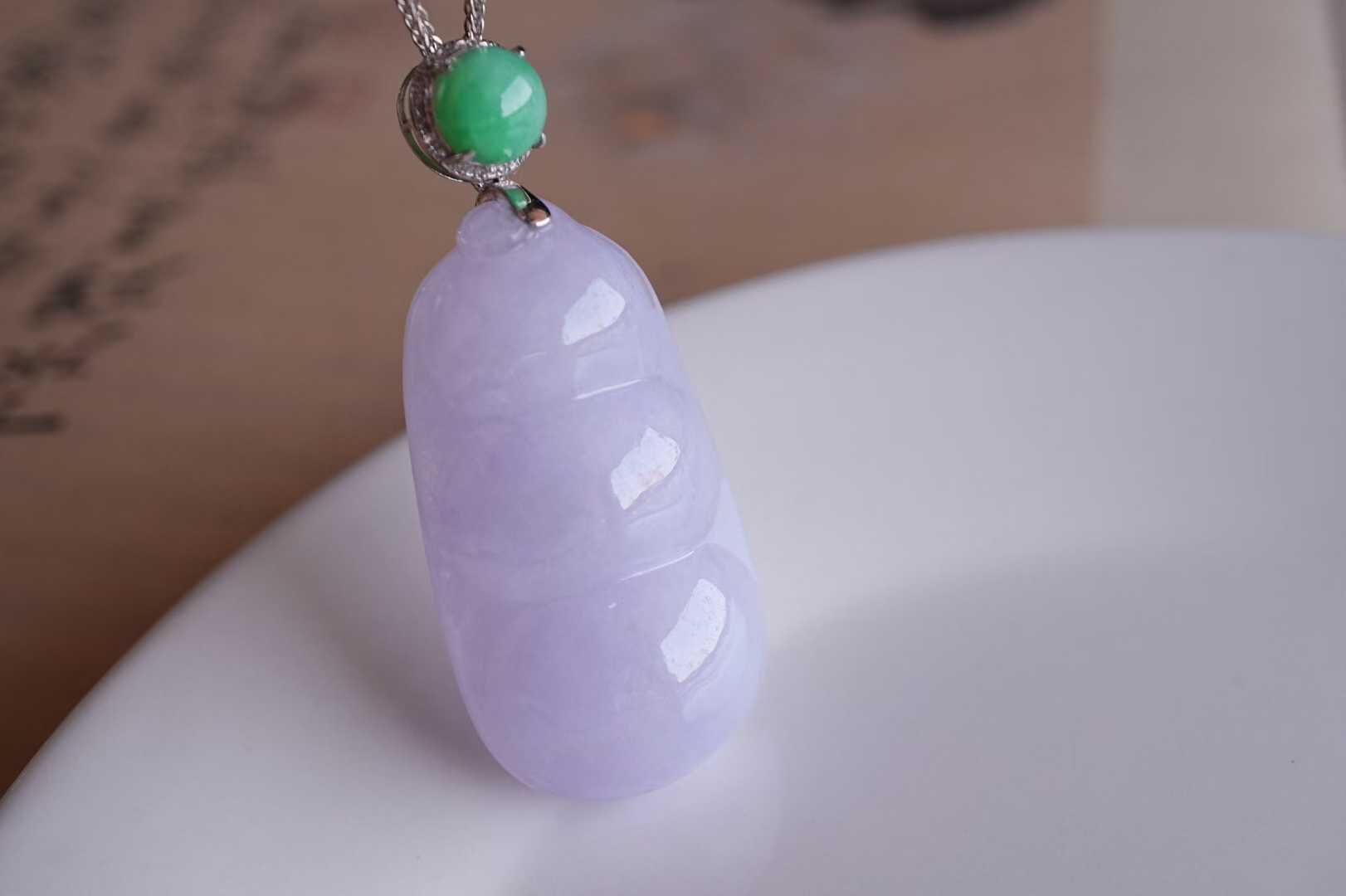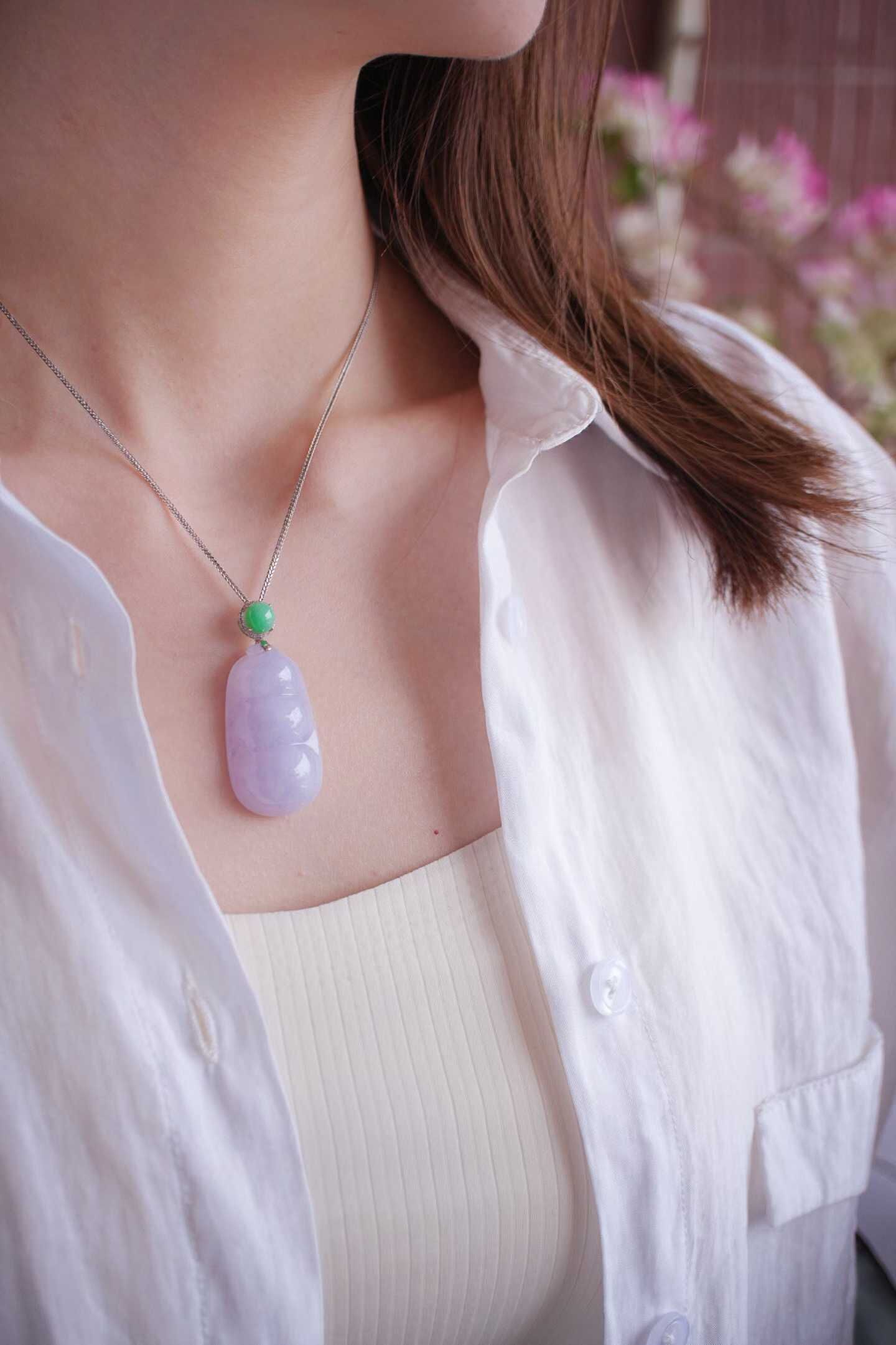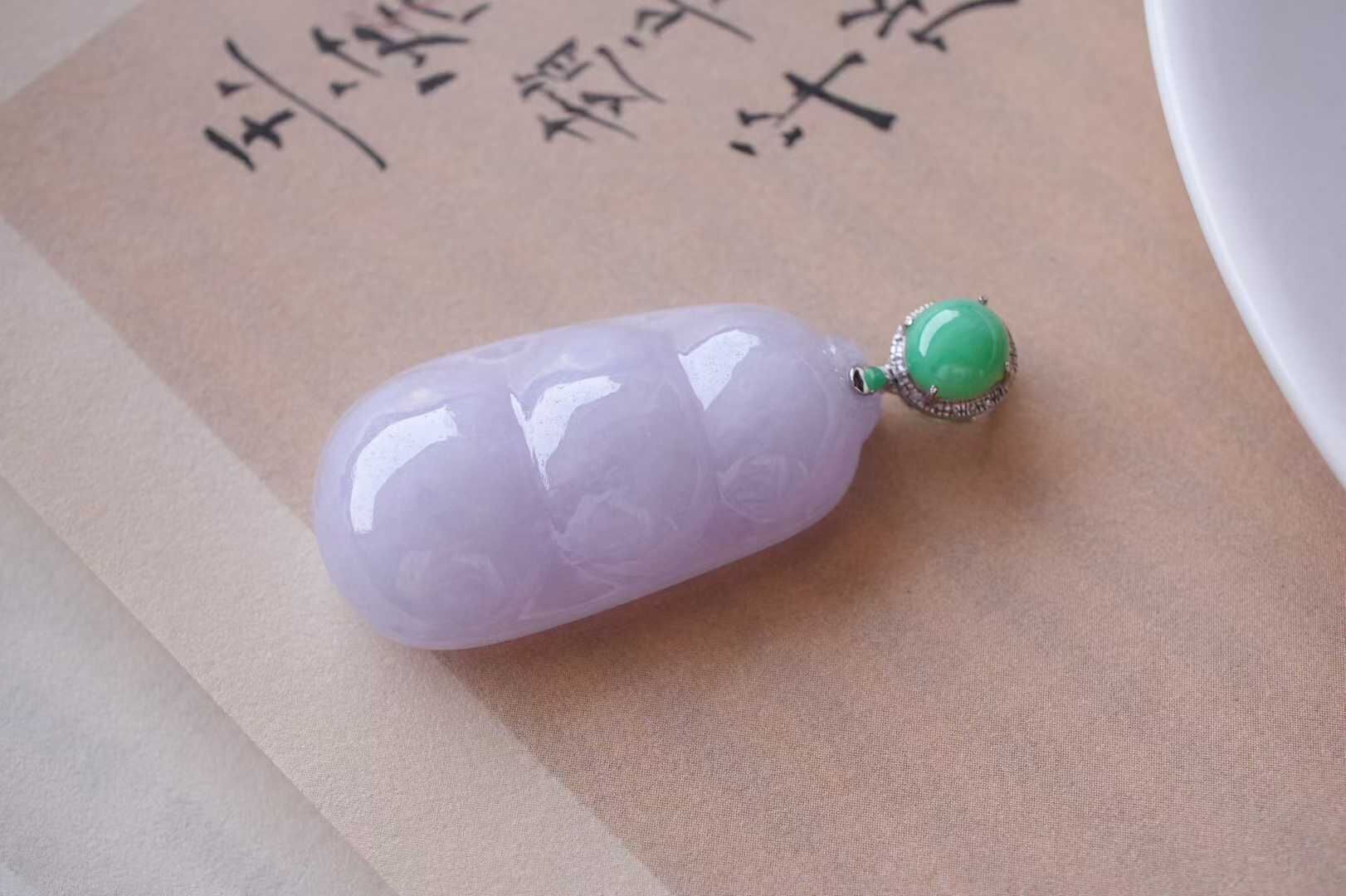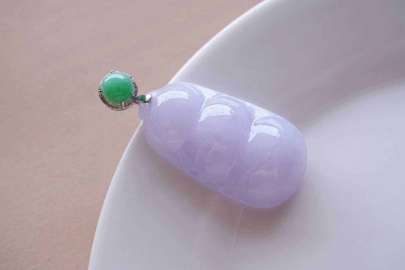 • 翡翠冰糯種紫羅蘭福豆吊墜,天然翡翠A玉, 緬甸玉, Jade, Jadeite