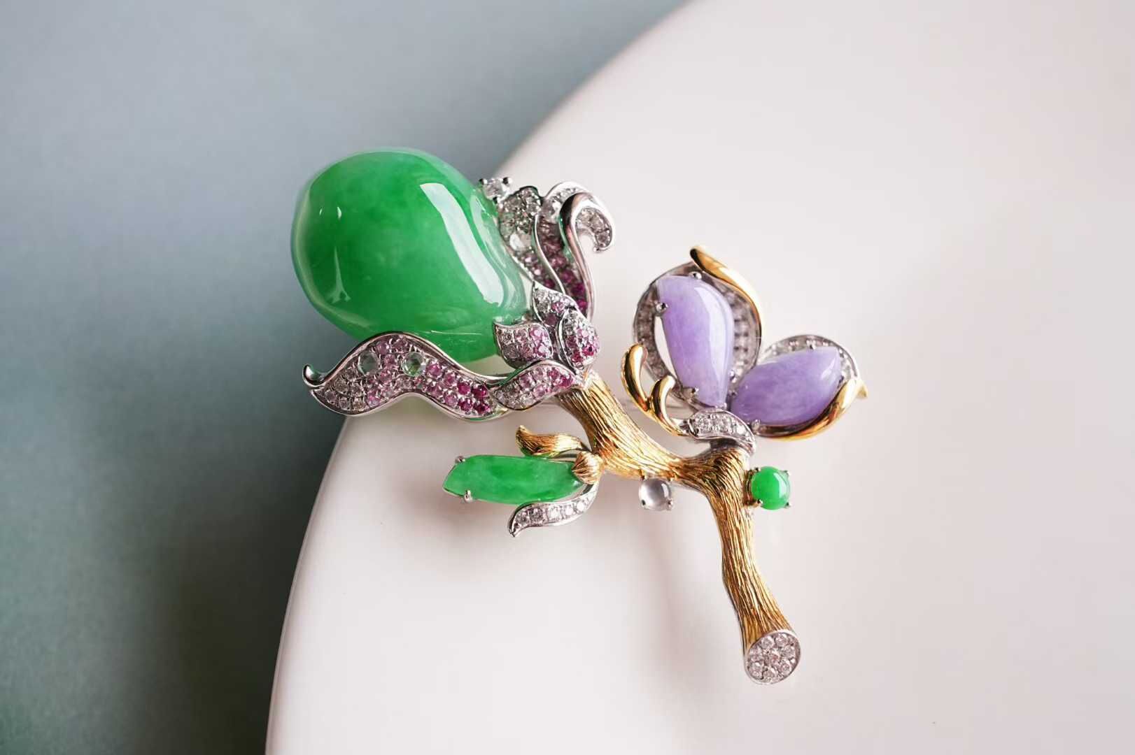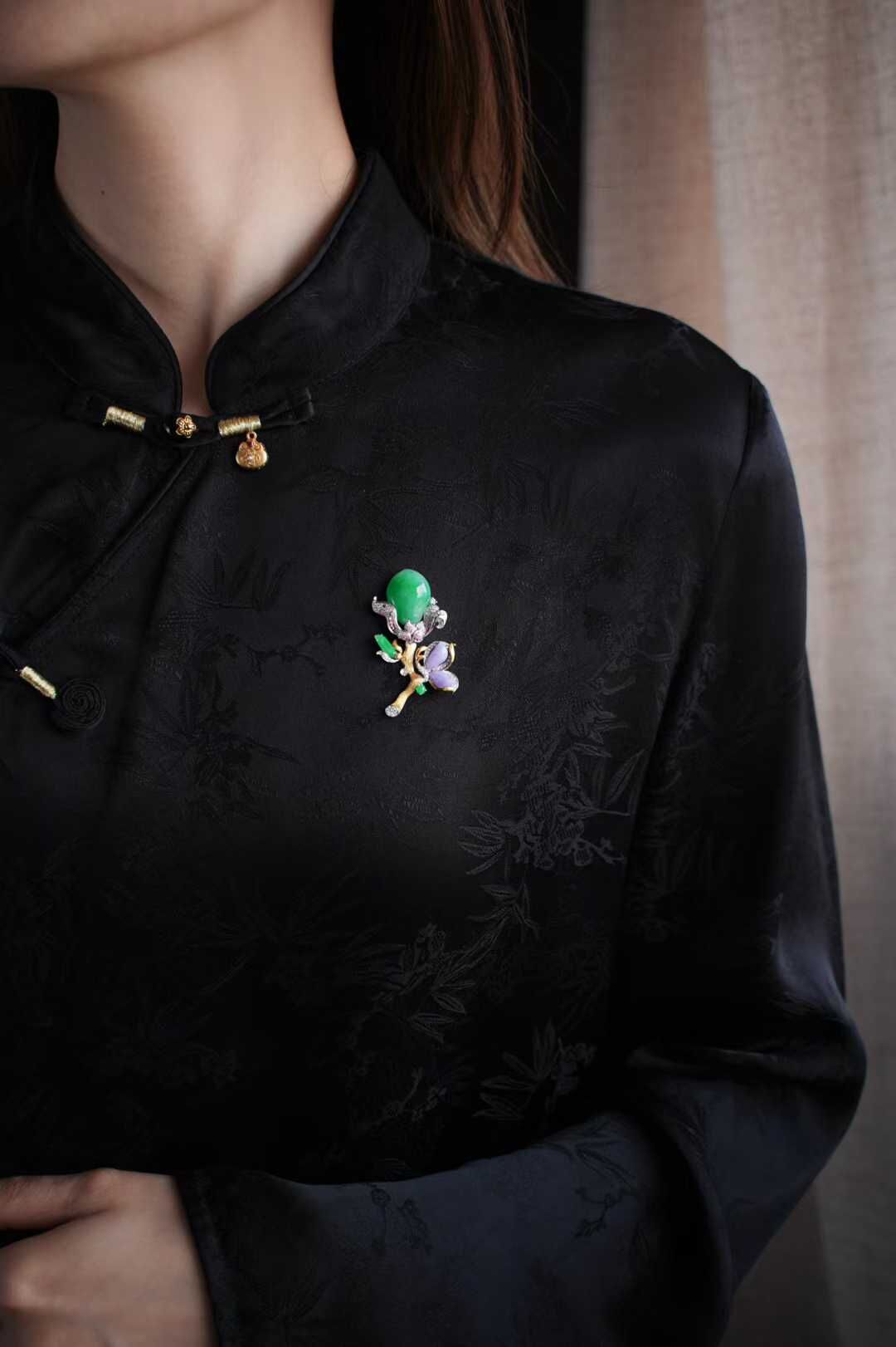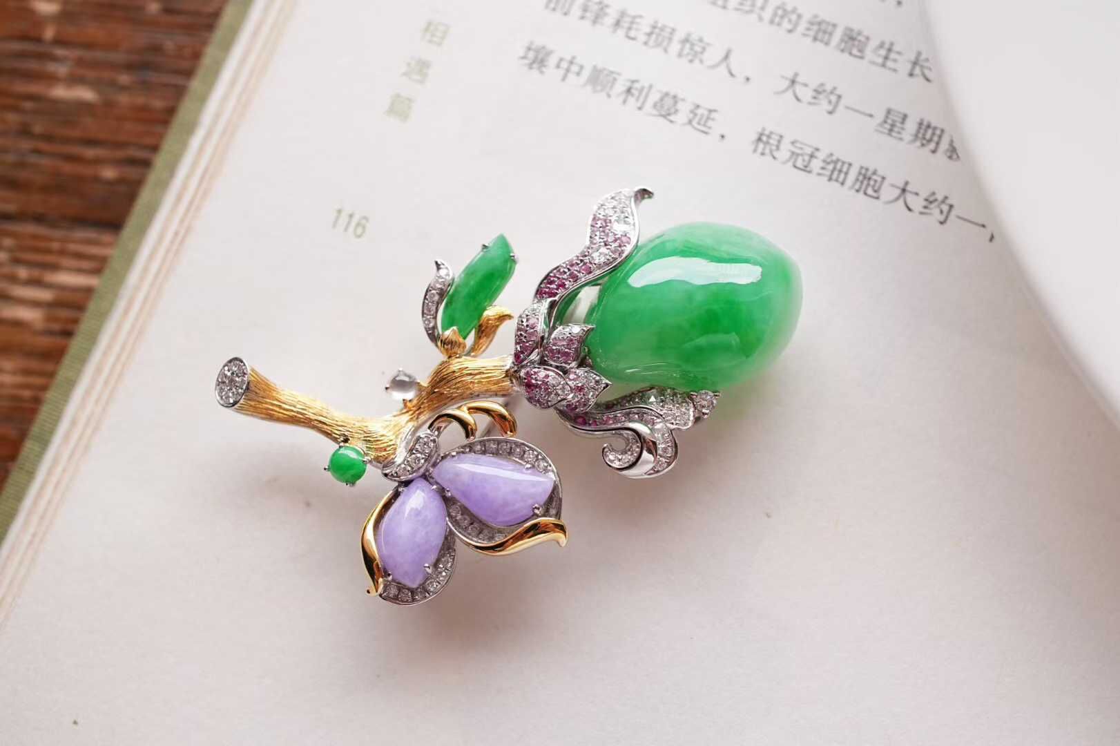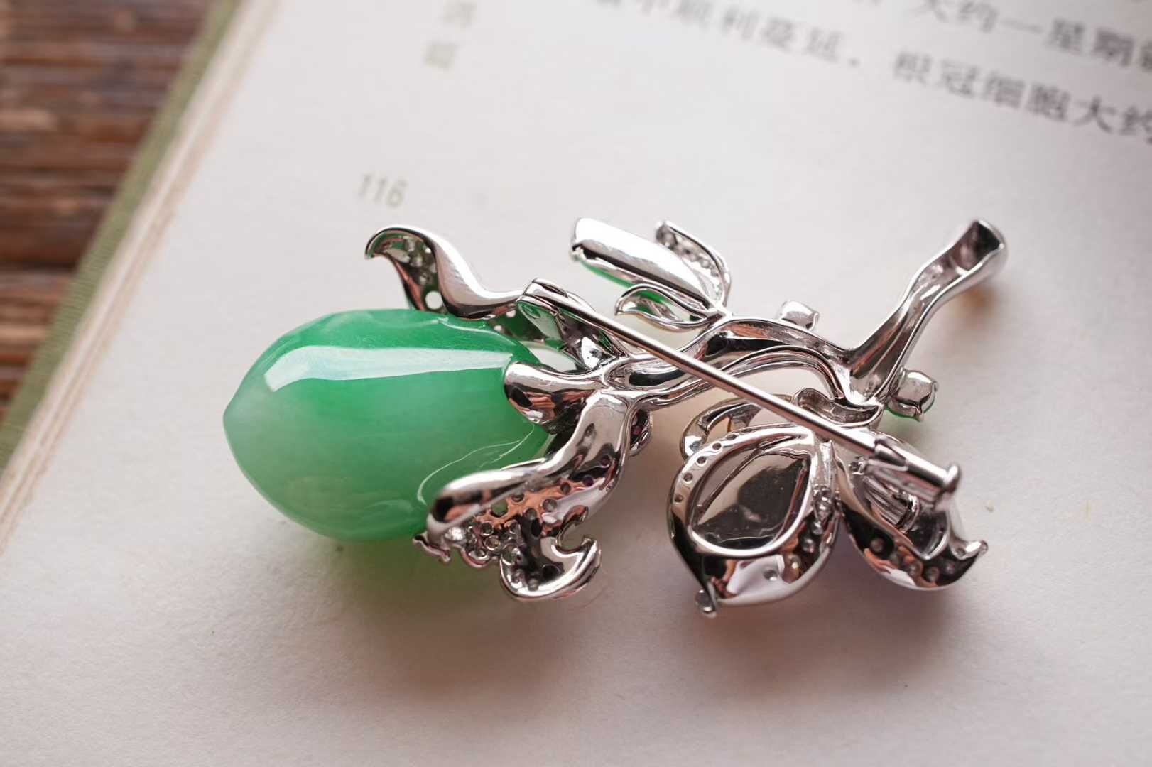 天然翡翠A玉,緬料,老坑種,收藏級精品,新中式頂配,這枚胸針的高級感藏不住。