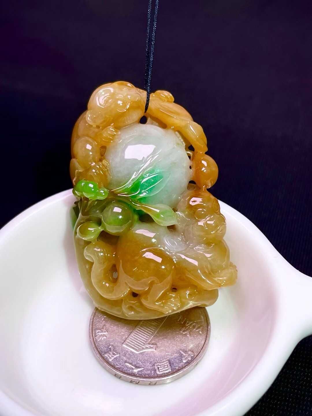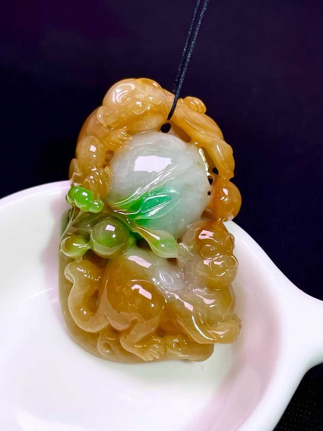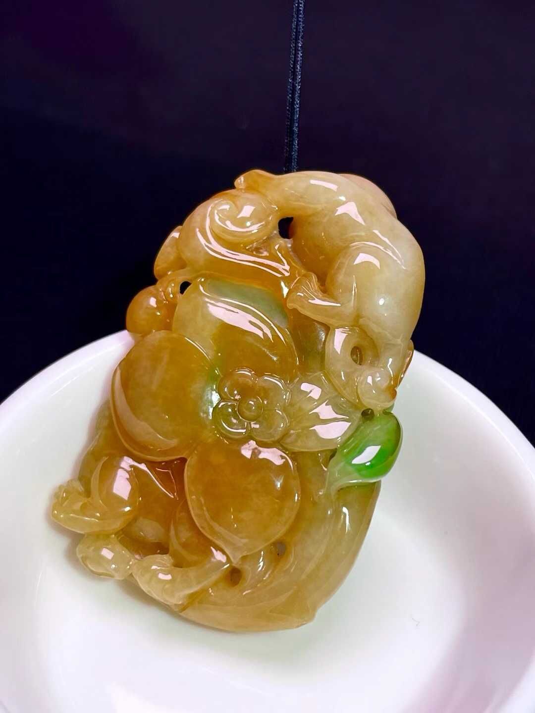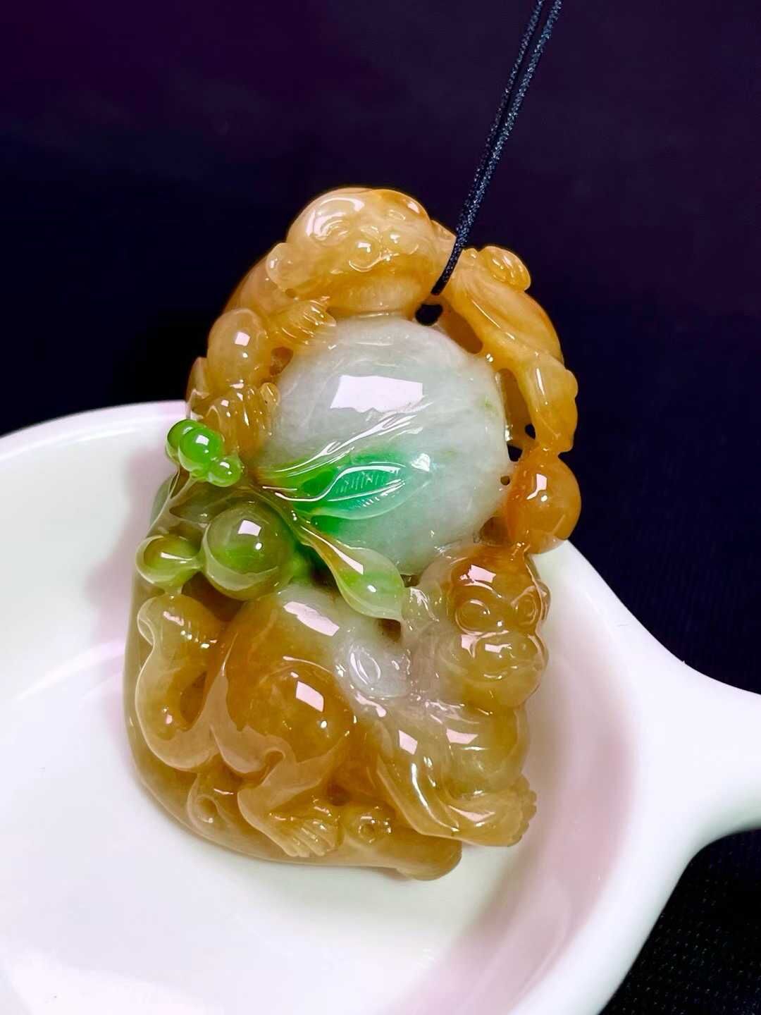 • 翡翠靈猴獻壽吊墜,天然翡翠A玉, 緬甸玉, Jade, Jadeite