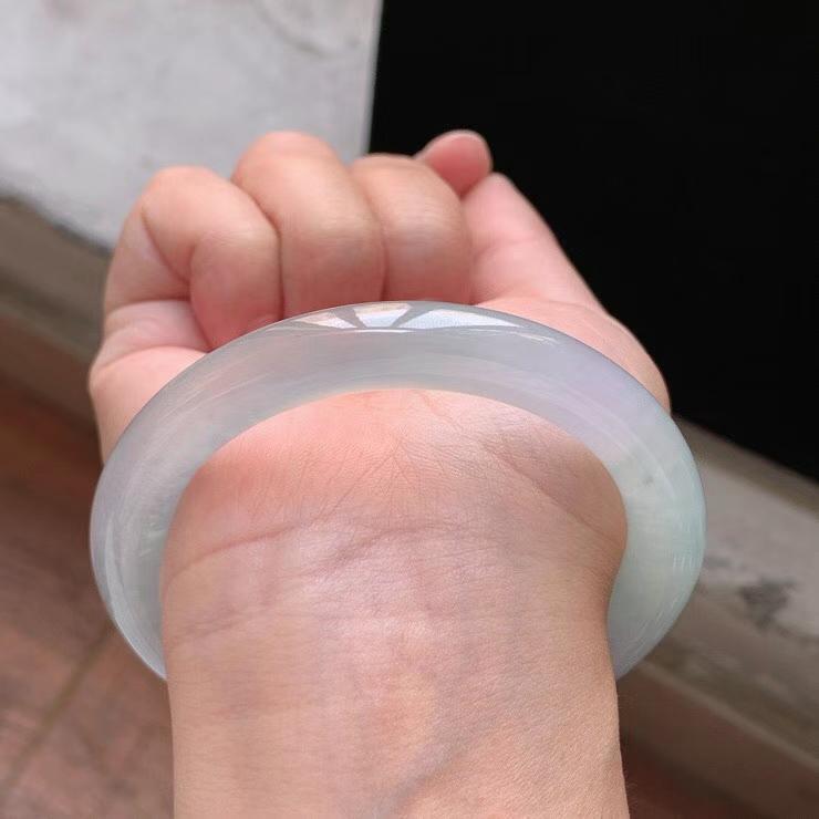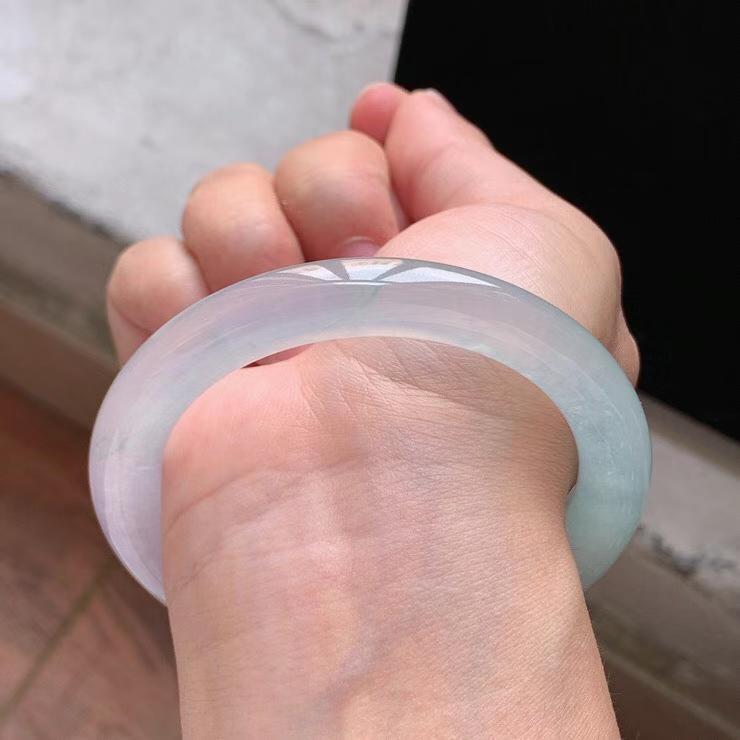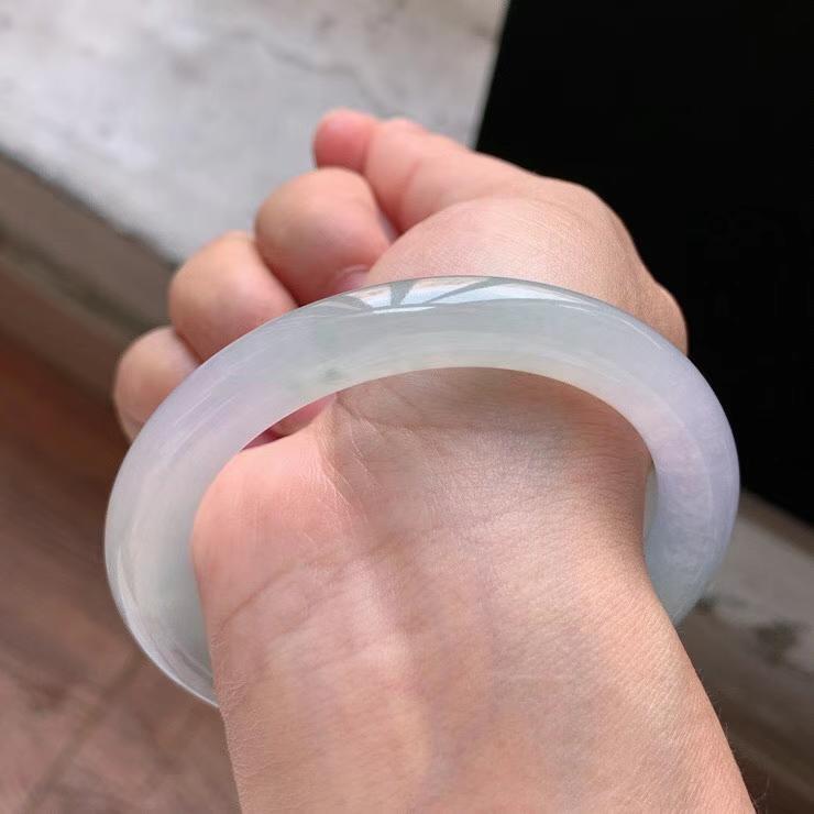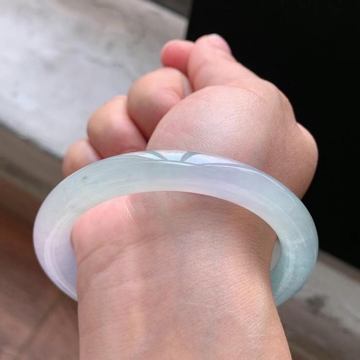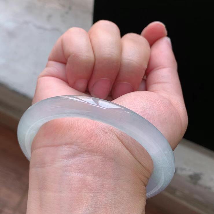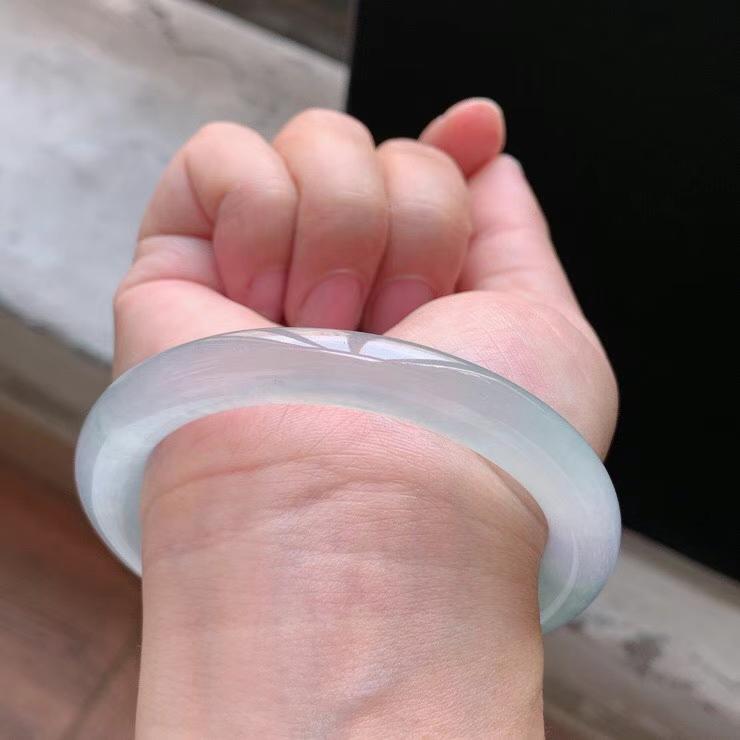 • 老坑冰種淺綠圓條手鐲 52mm, 天然翡翠A玉, 緬甸玉, Jade, Jadeite