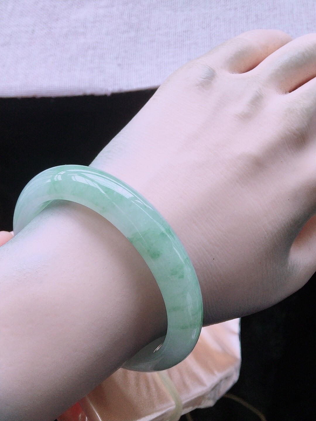 • 飄花翡翠貴妃手鐲,天然翡翠A玉, 緬甸玉, Jade, Jadeite