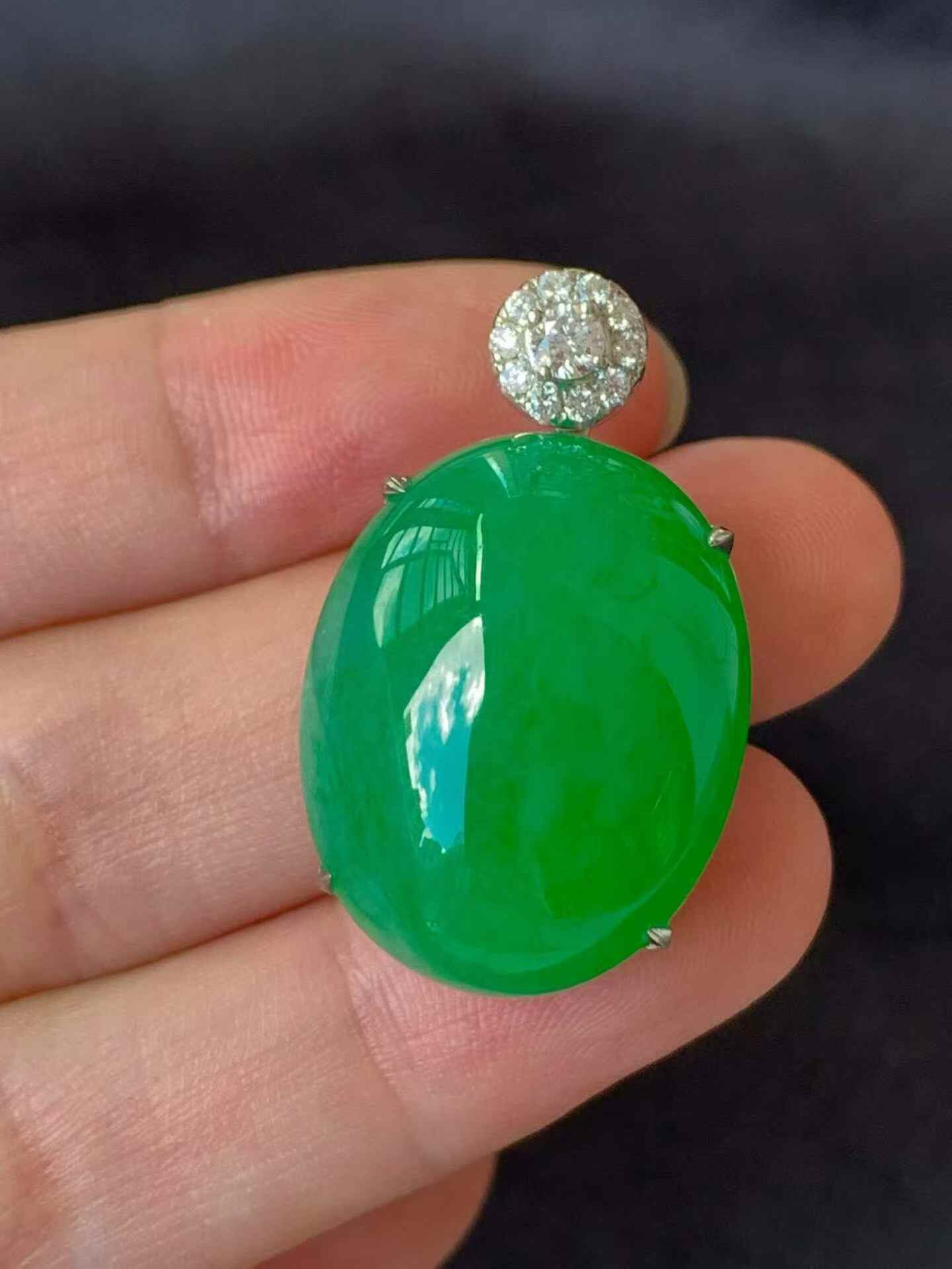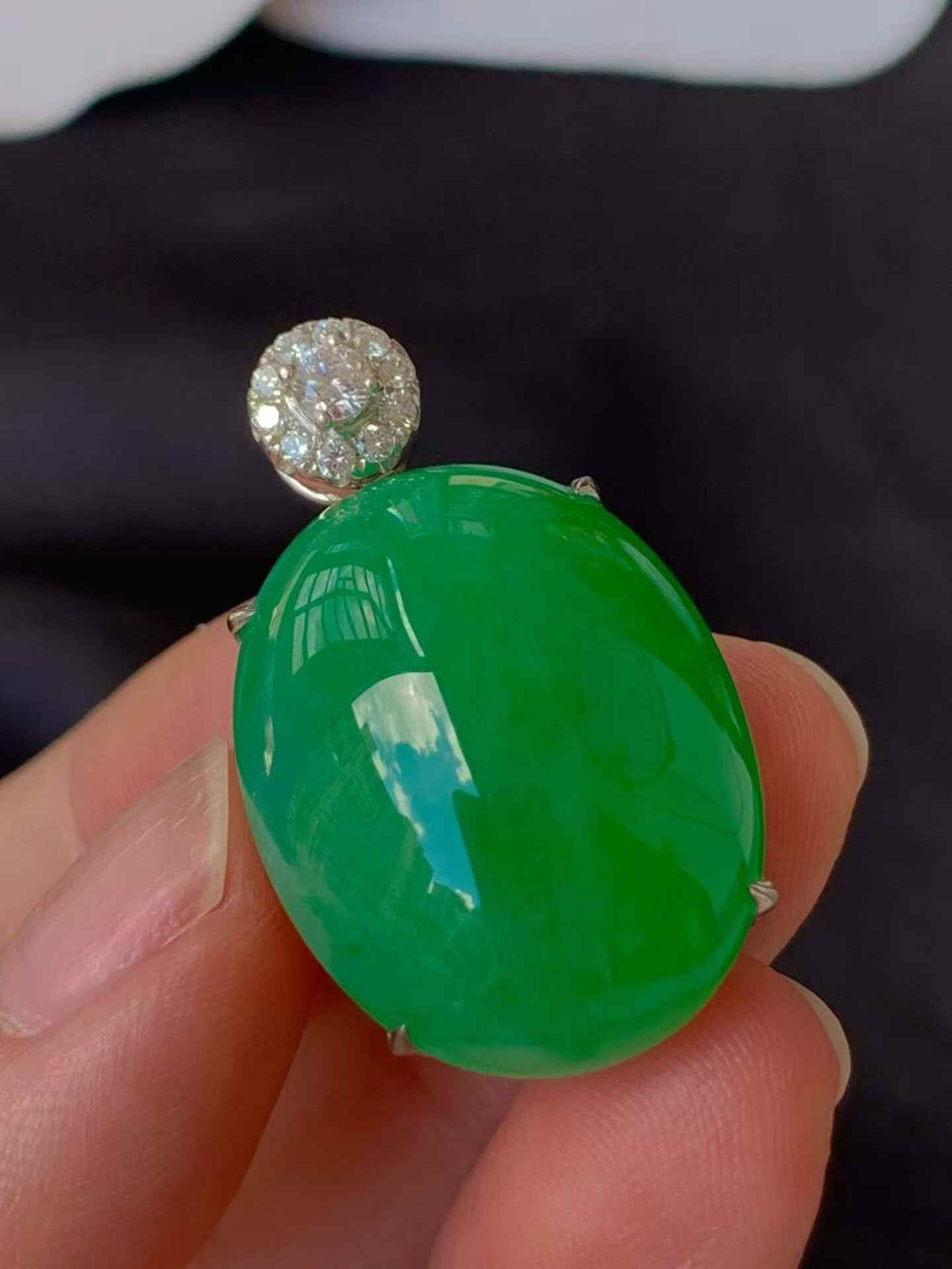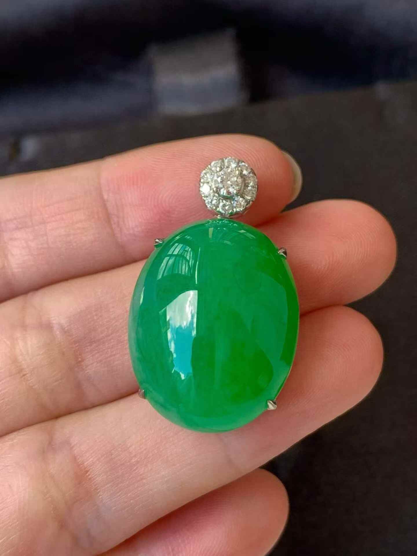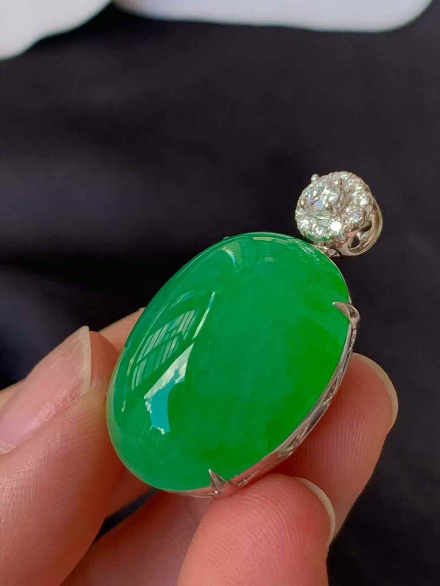• 翡翠蛋面吊墜,天然翡翠A玉, 緬甸玉, Jade, Jadeite
