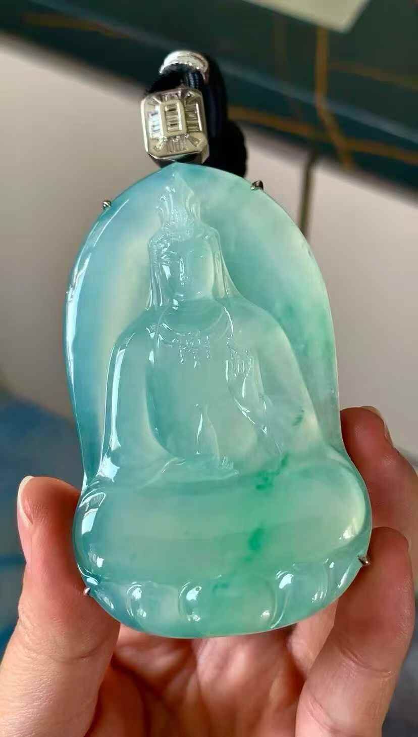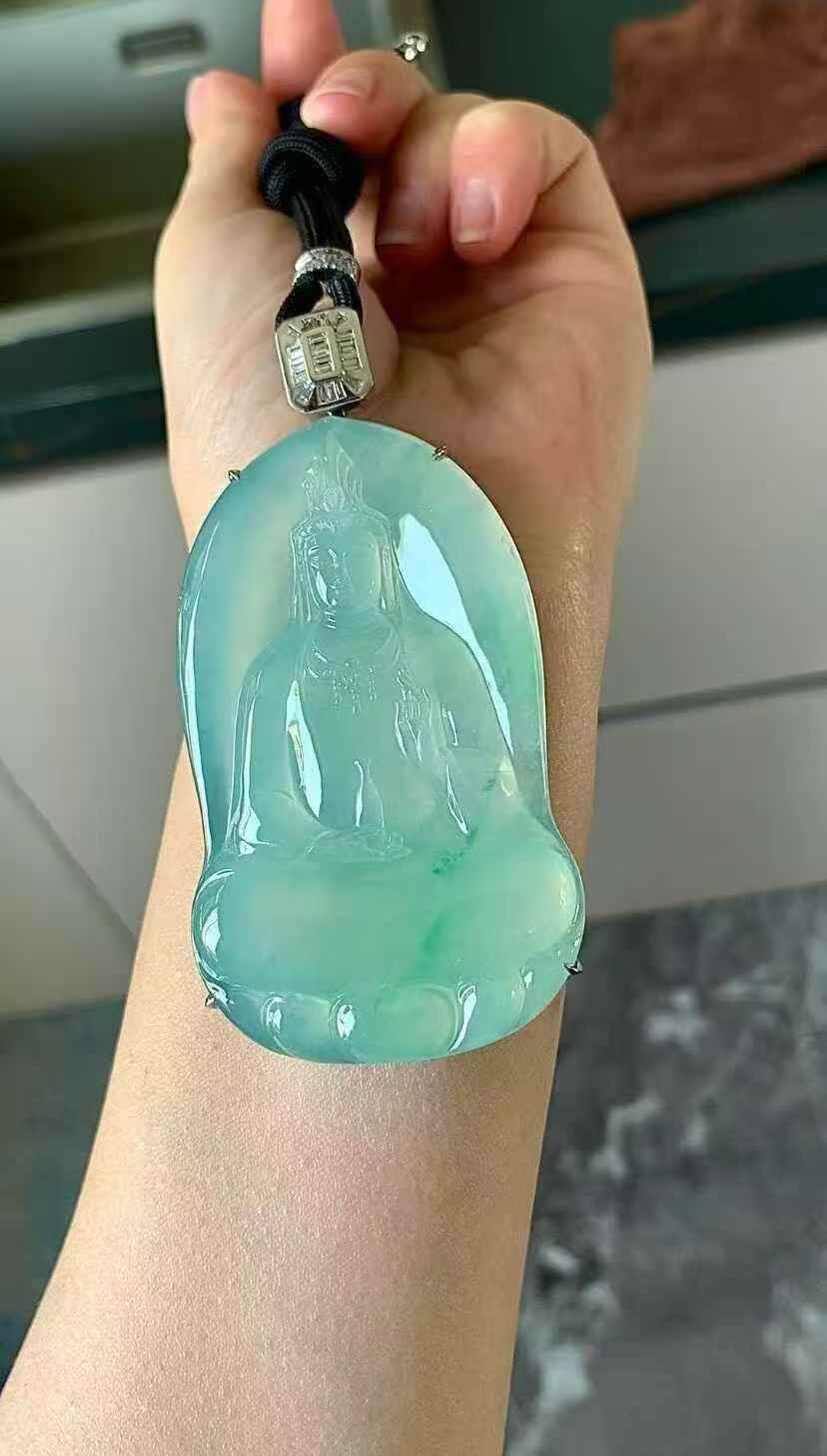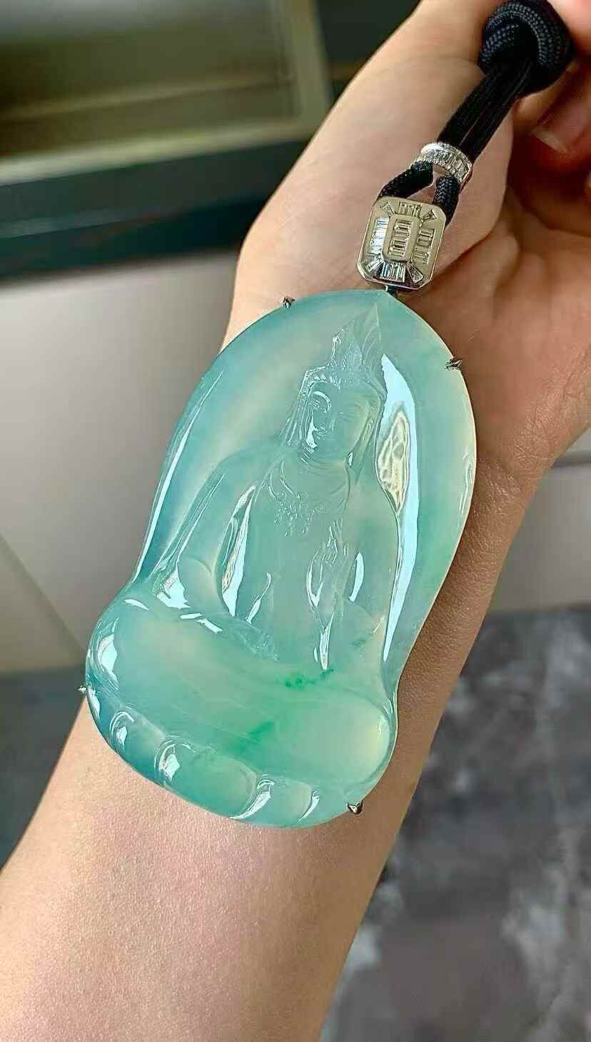 • 翡翠觀音牌吊墜,天然翡翠A玉, 緬甸玉, Jade, Jadeite