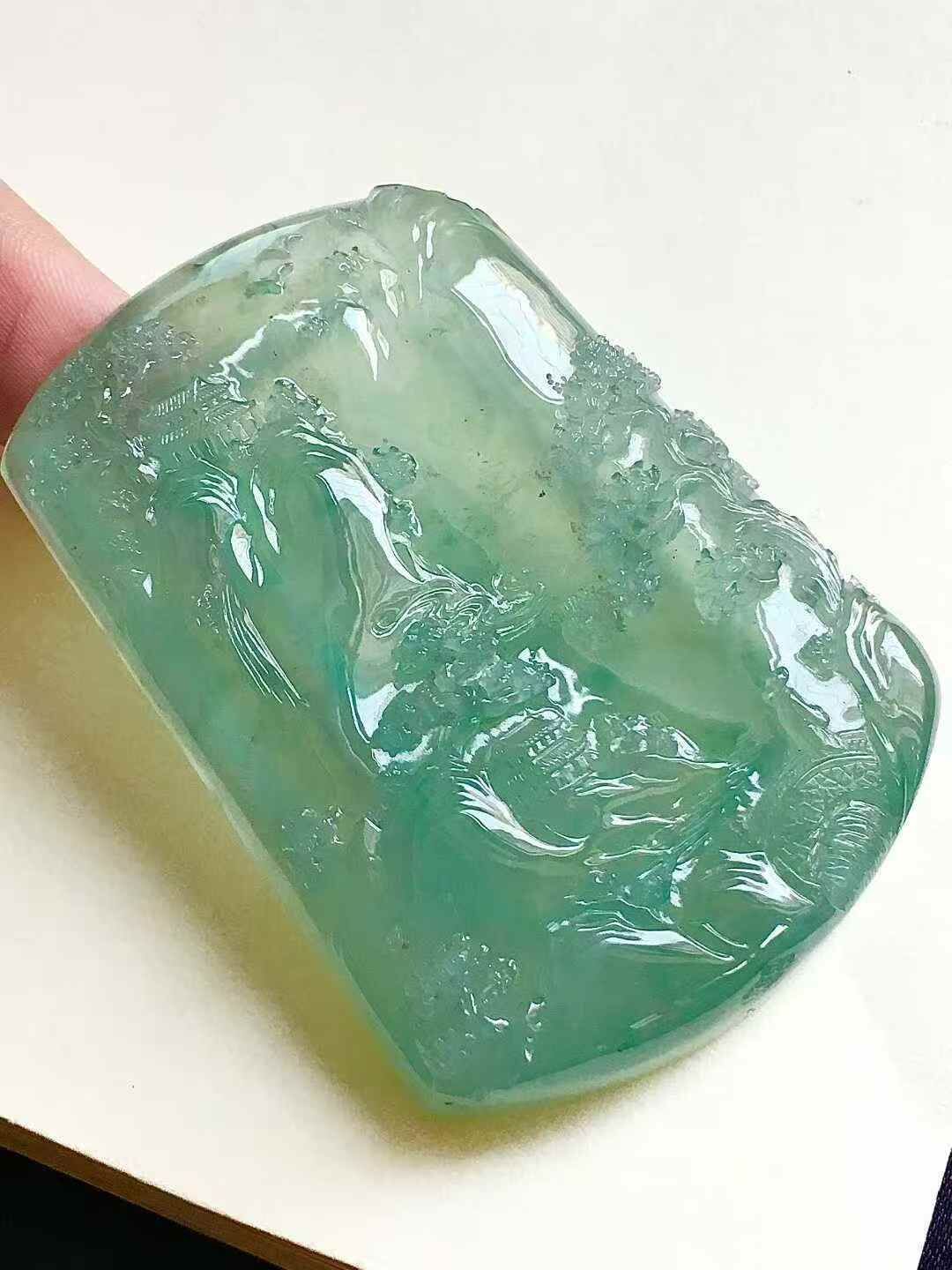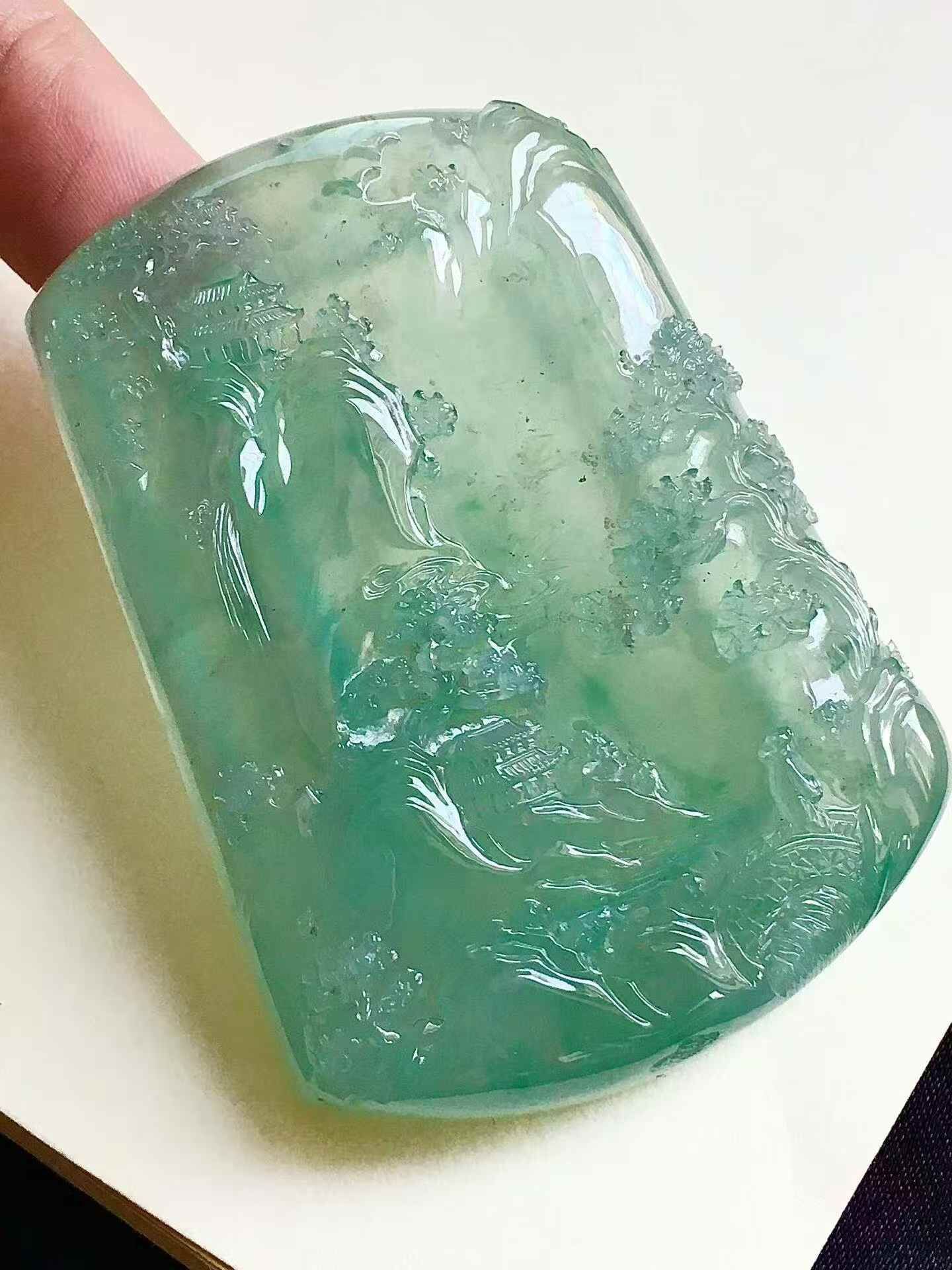 • 翡翠山水牌,天然翡翠A玉, 緬甸玉, Jade, Jadeite