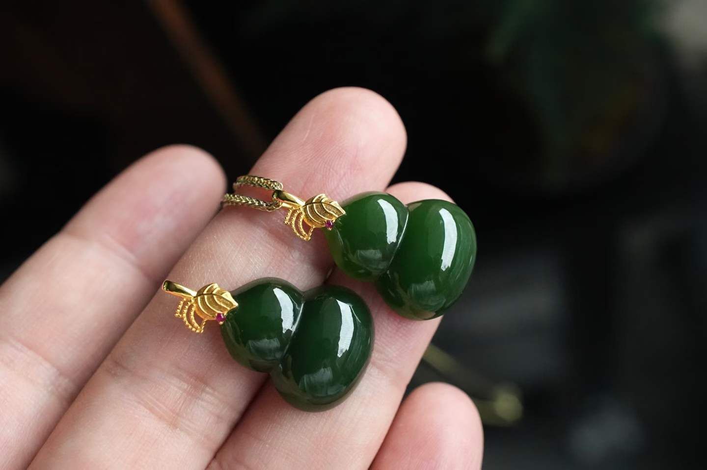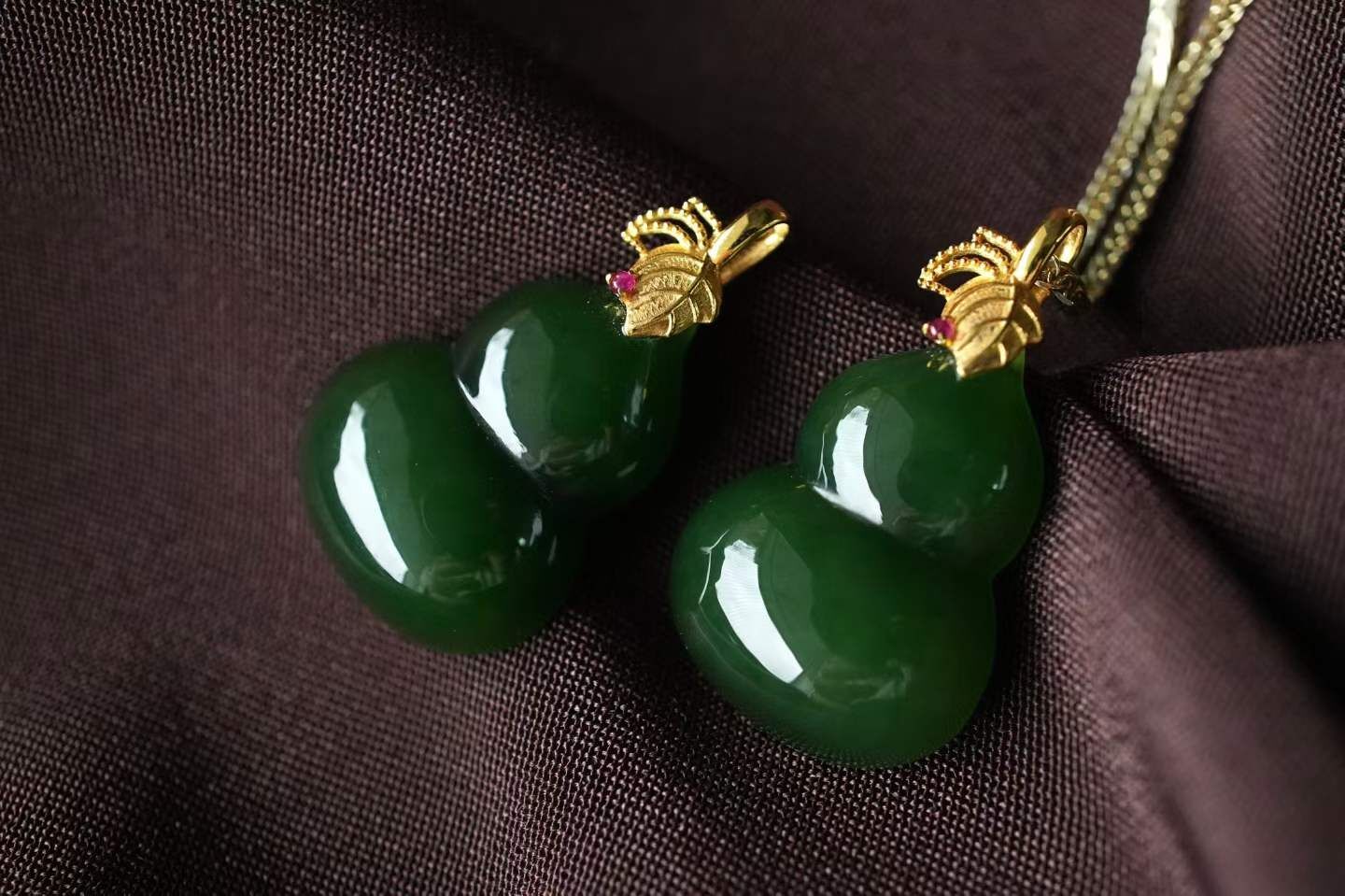 18K厚金樹葉扣頭,紅寶石點睛,金養玉、玉養人,葫蘆聚財氣,戴出「金玉良緣+福祿雙全」的圓滿感。