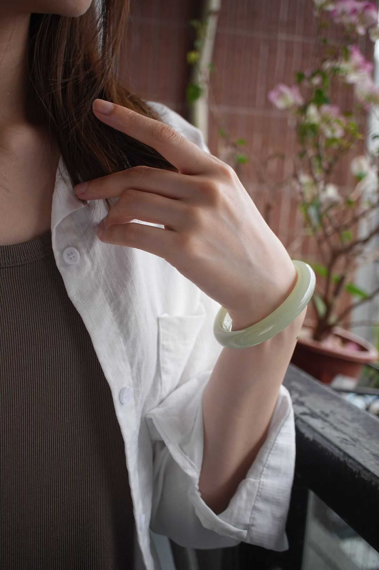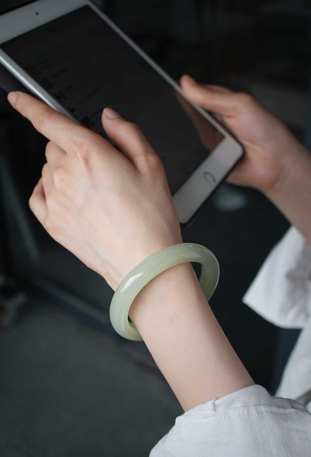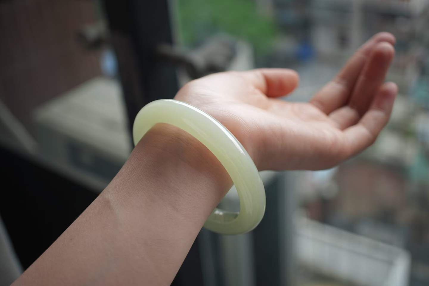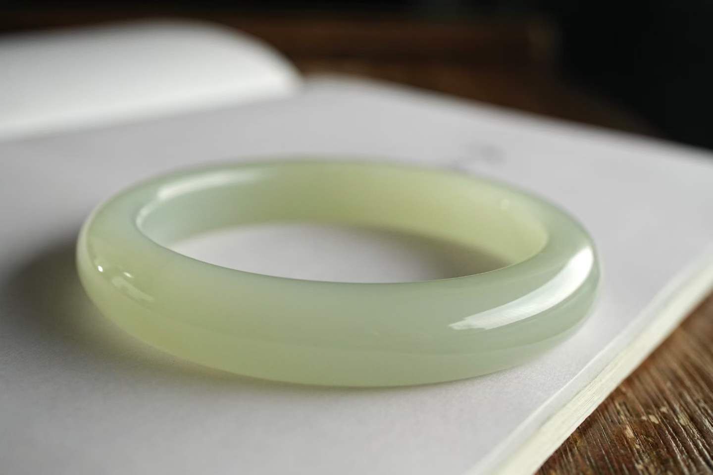 • 和田玉冰底晴水平安鐲,天然和田玉軟玉