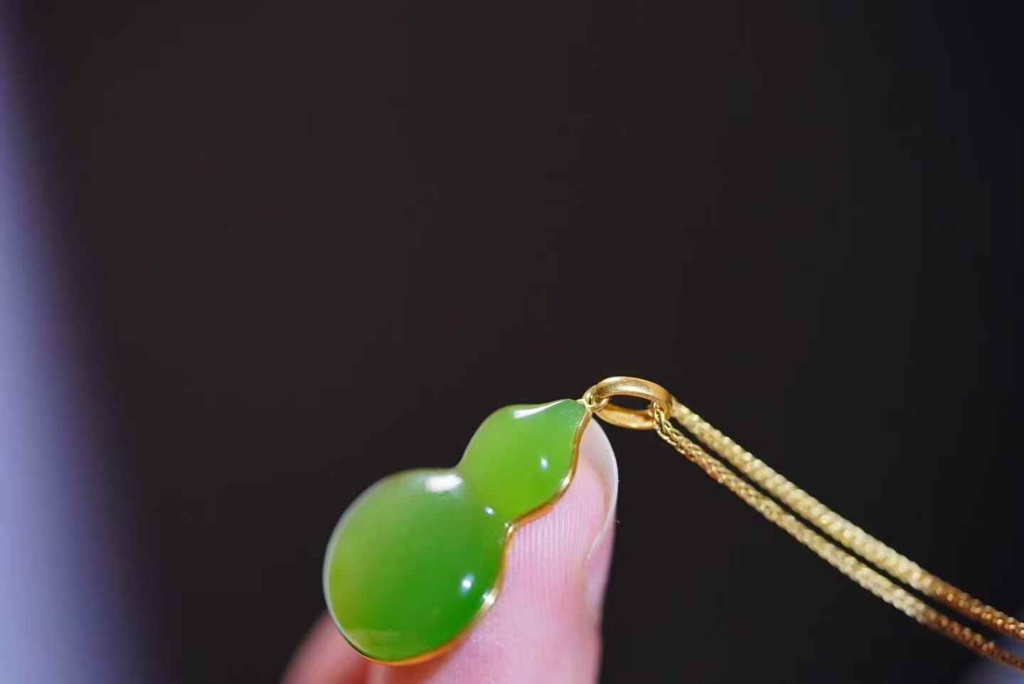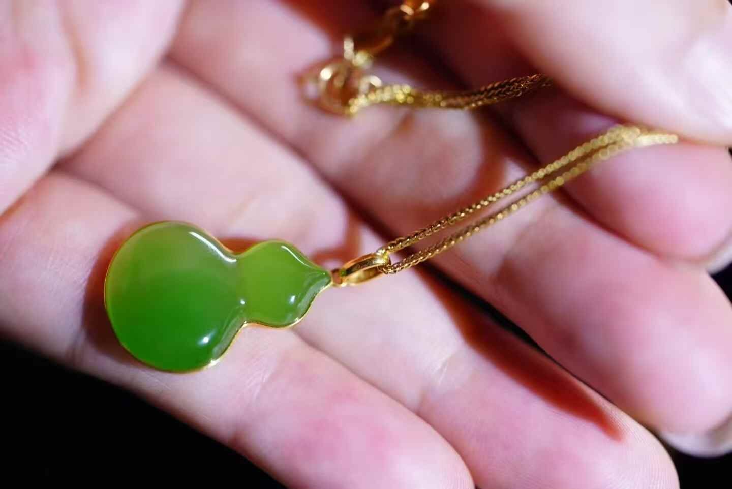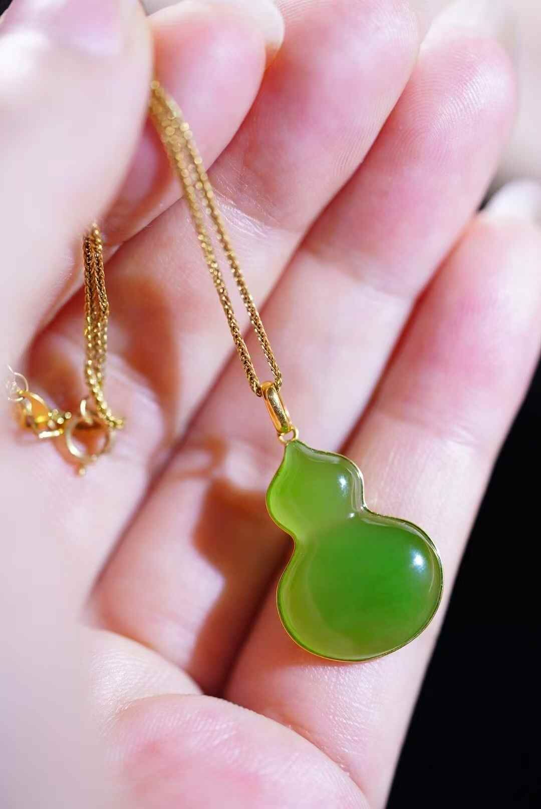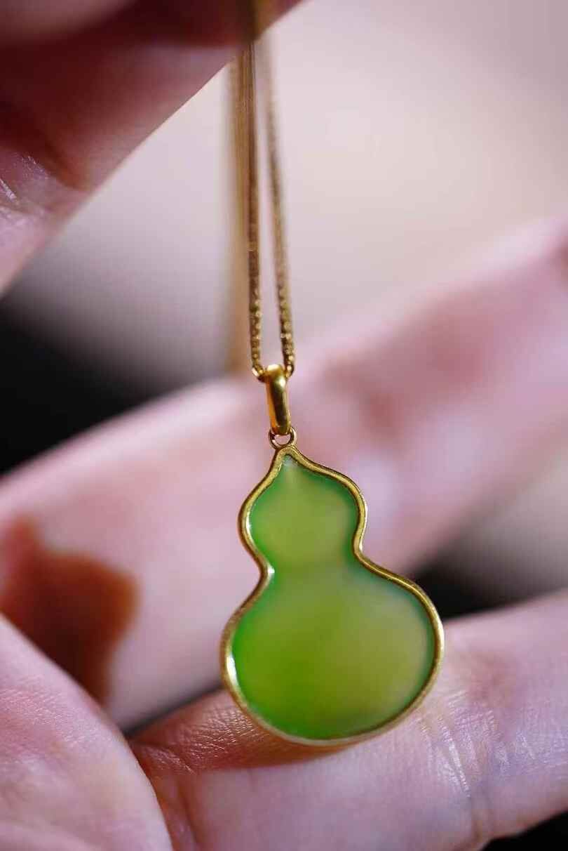 18K金鑲嵌,托起和田碧玉的溫潤凝脂,玉色如春水初生,綠中透出勃勃生機,象征福祿滿盈。
