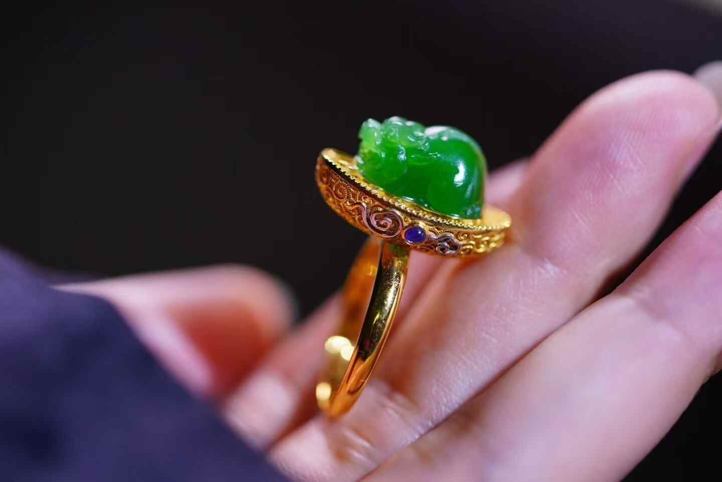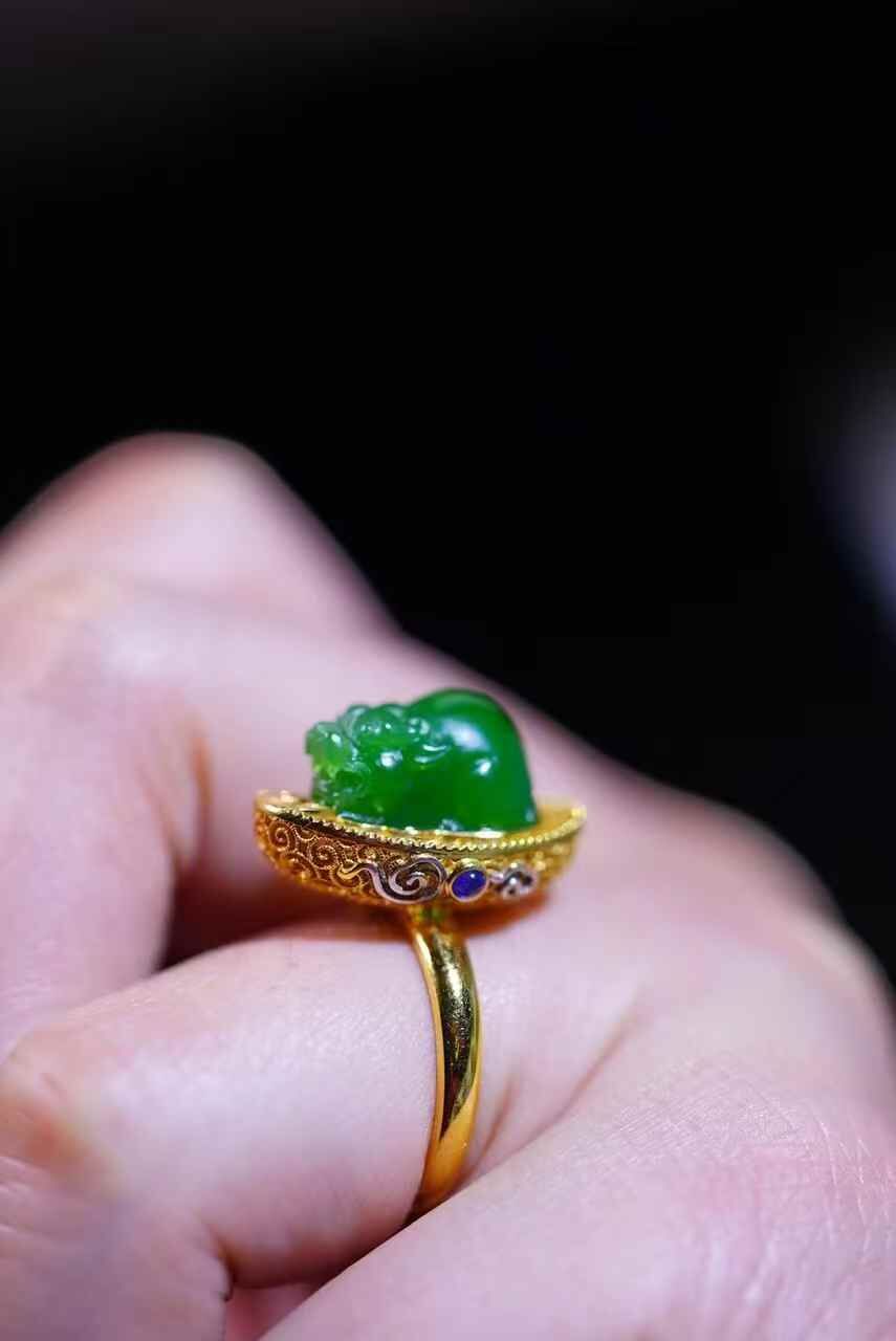• 翡翠陽綠貔貅戒指,天然翡翠A玉, 緬甸玉, Jade, Jadeite