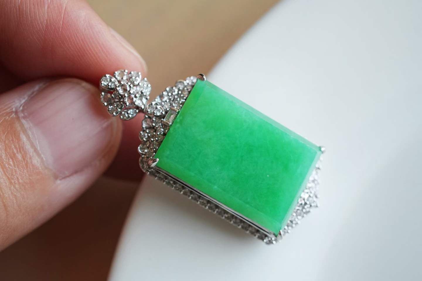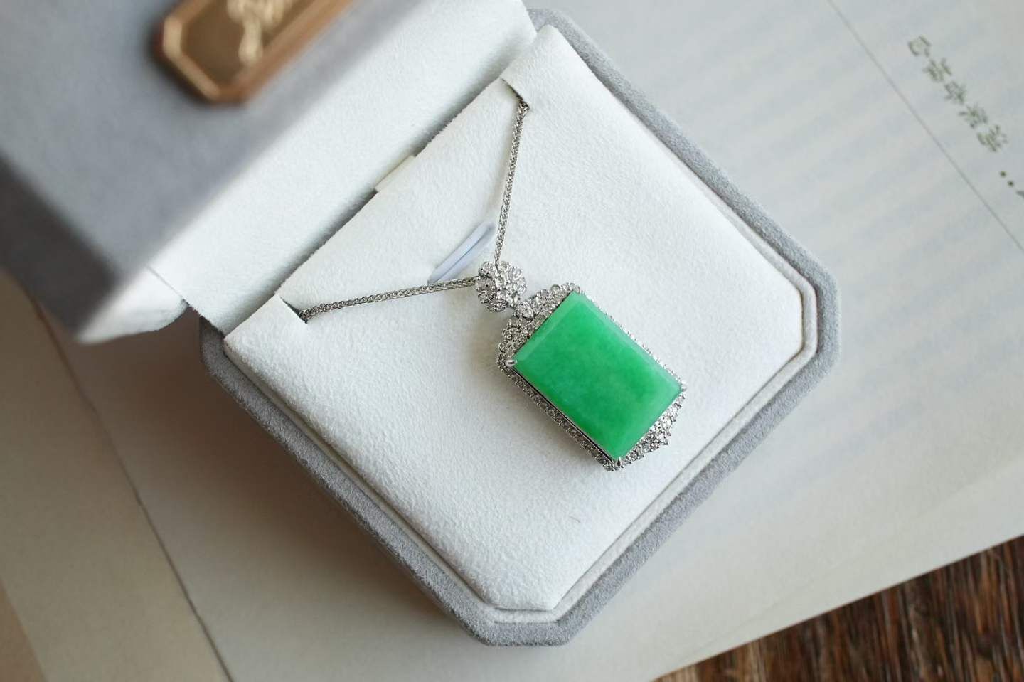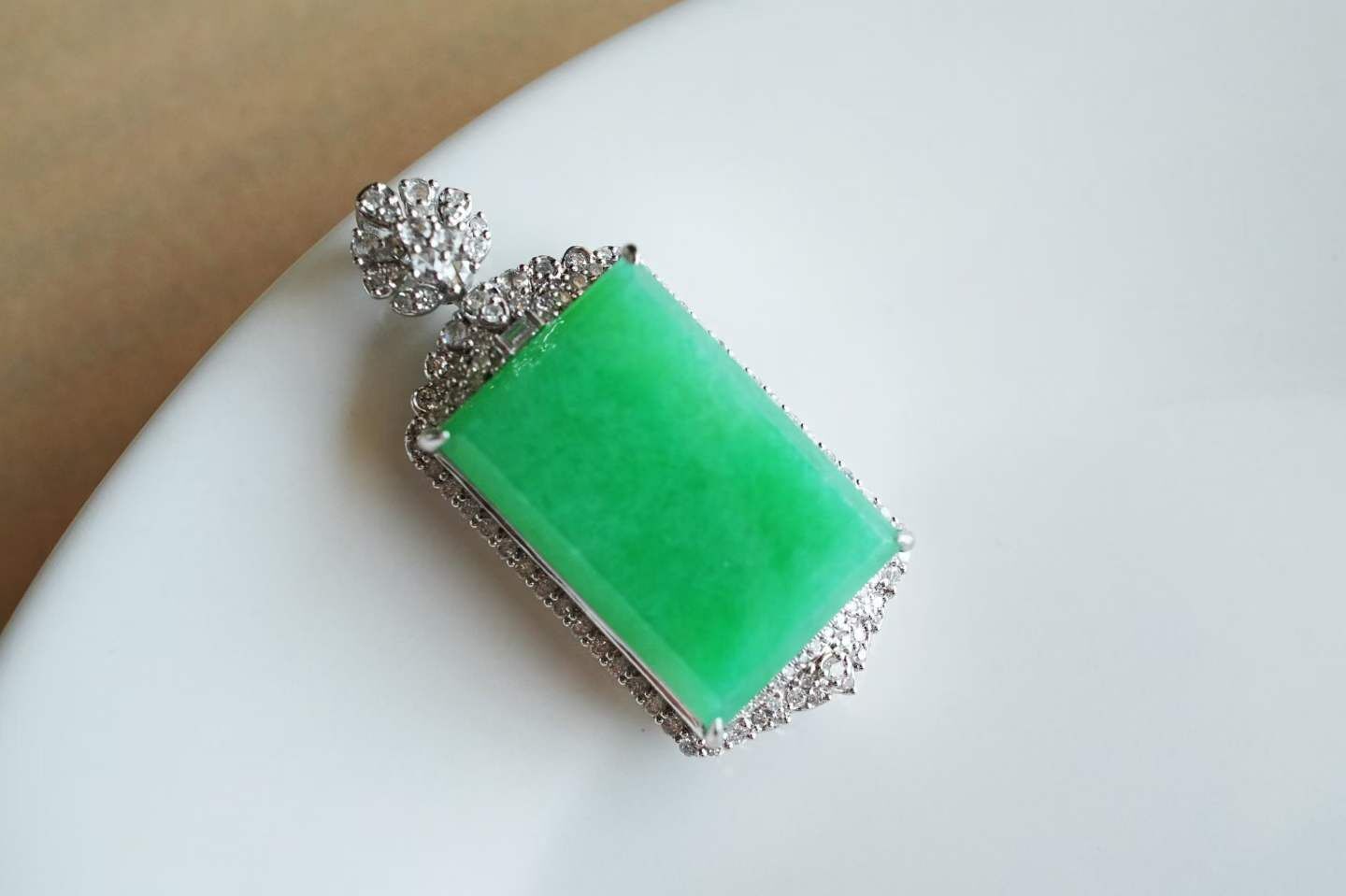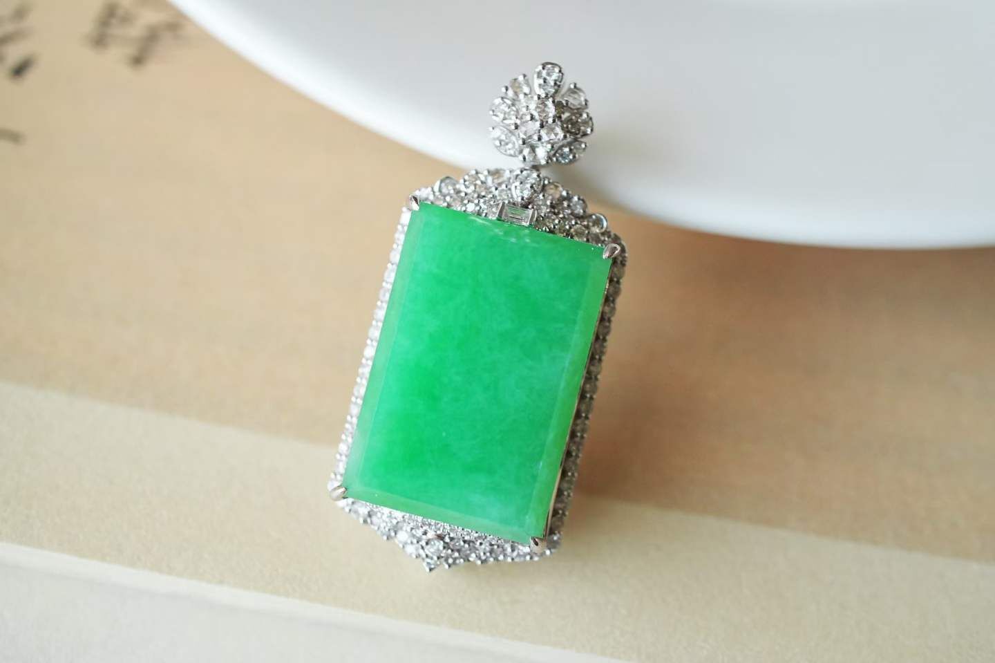 • 翡翠緬料滿色無事牌吊墜,天然翡翠A玉, 緬甸玉, Jade, Jadeite