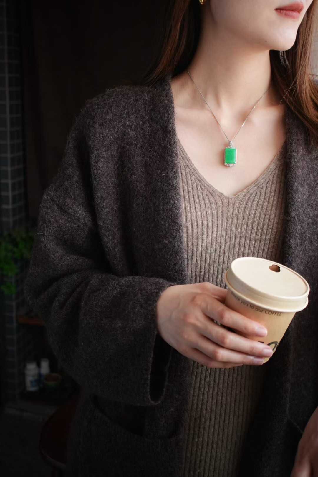 天然翡翠A玉,緬料老坑種,滿色無事牌。性價比太高了,等無事牌的小姐姐們可以衝這塊!以“無飾”詮釋極致純粹,滿色,色澤正陽綠,水潤細膩。品相非常不錯。