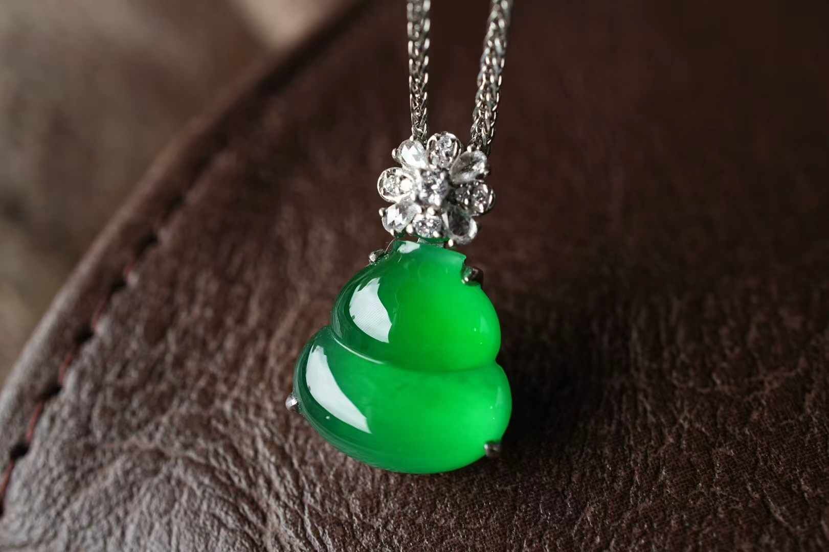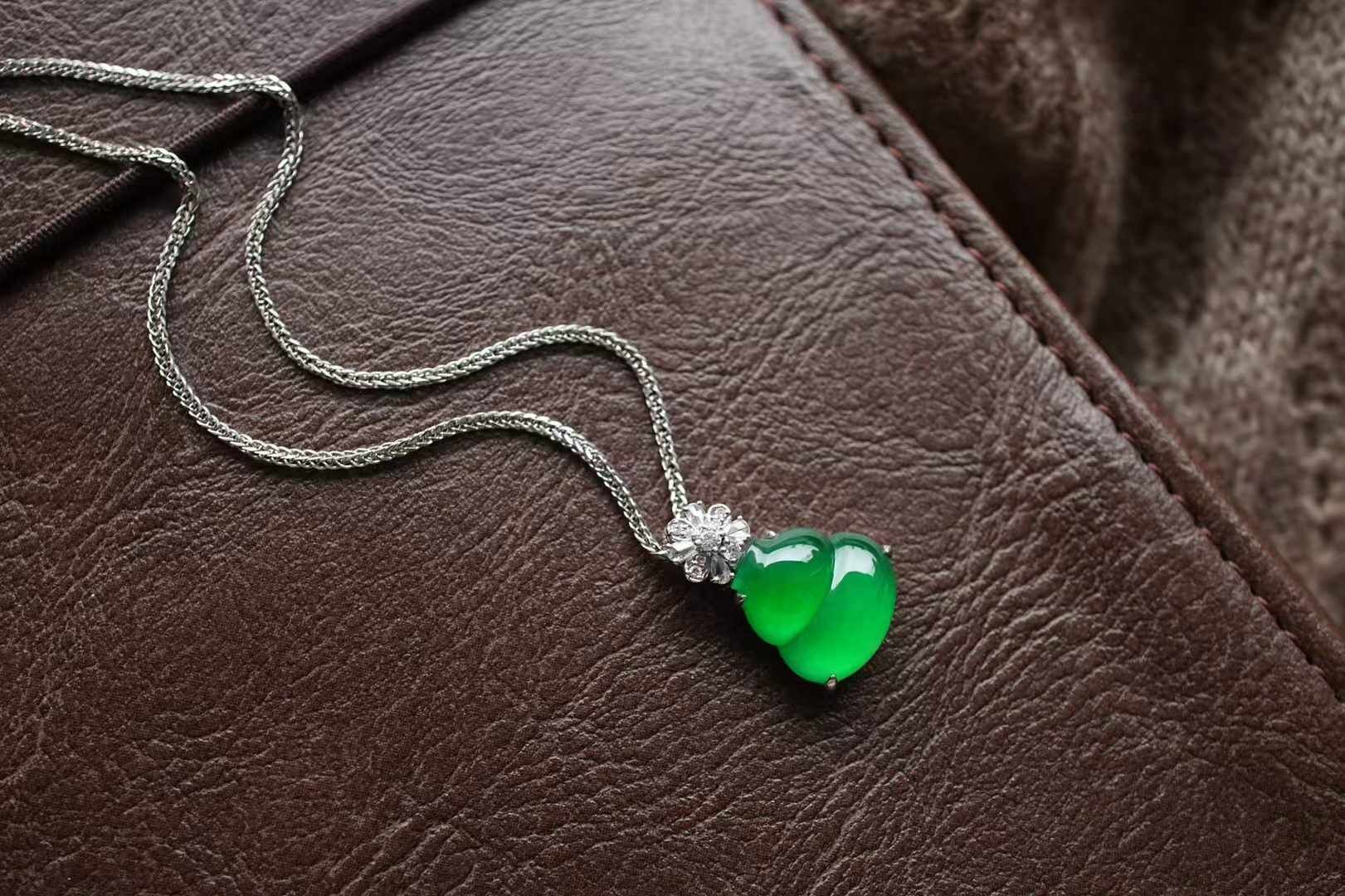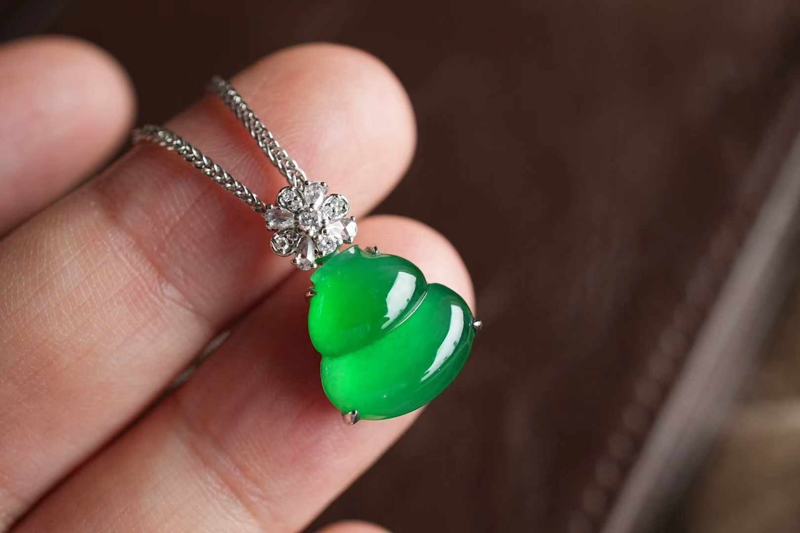 • 翡翠高冰濃陽綠葫蘆吊墜,天然翡翠A玉, 緬甸玉, Jade, Jadeite