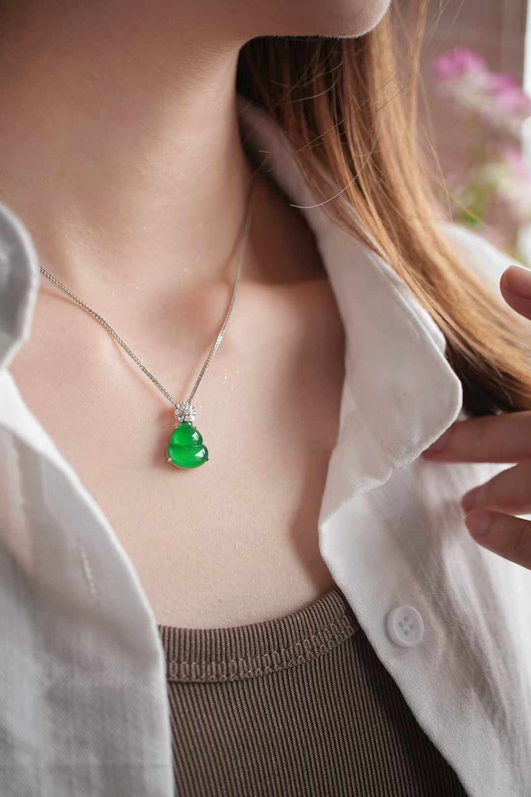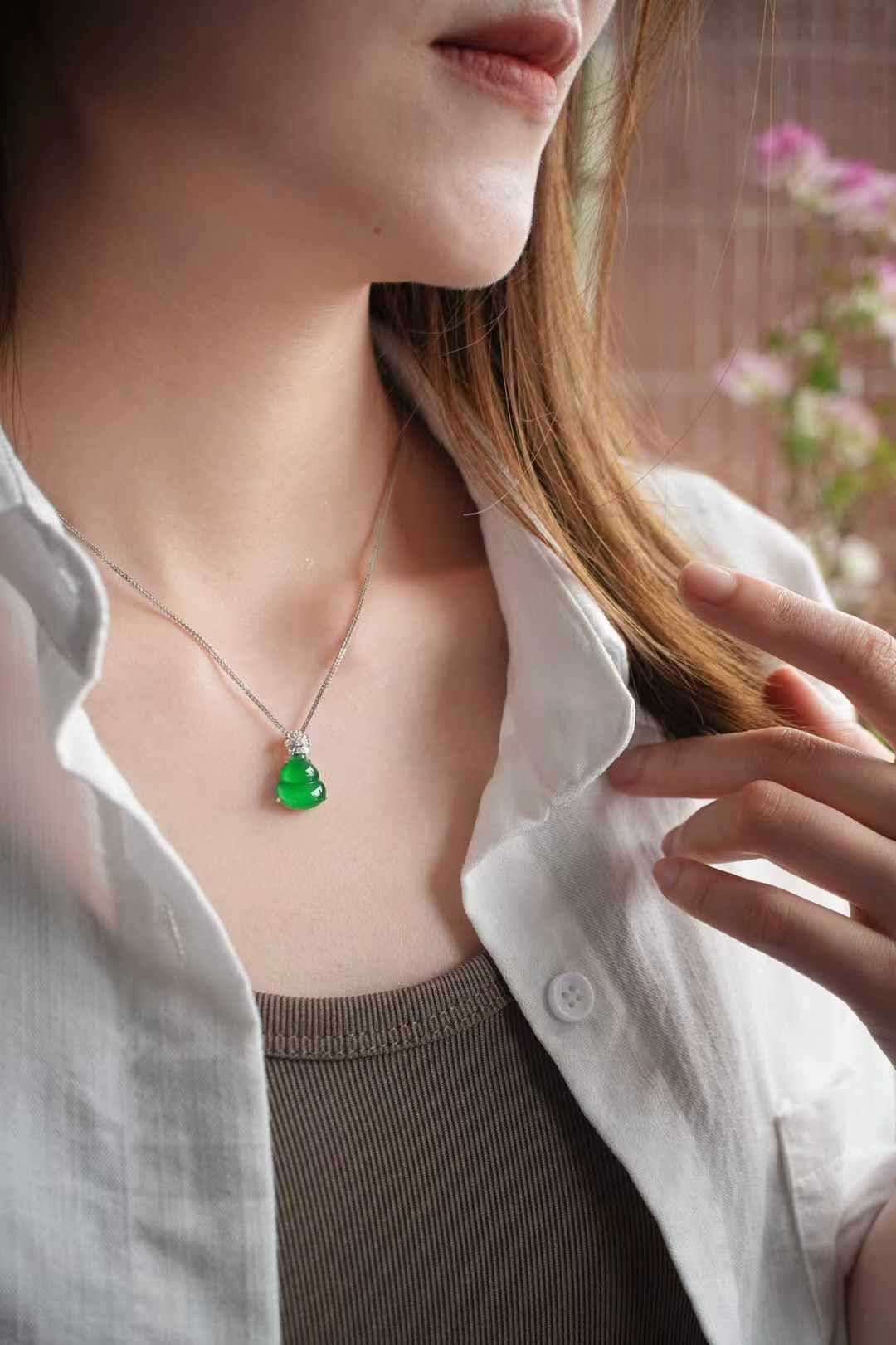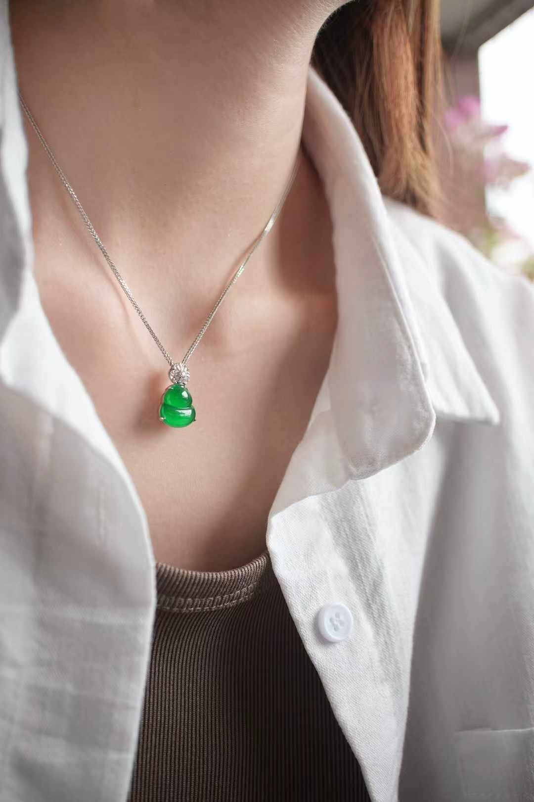 • 翡翠高冰濃陽綠葫蘆吊墜,天然翡翠A玉, 緬甸玉, Jade, Jadeite