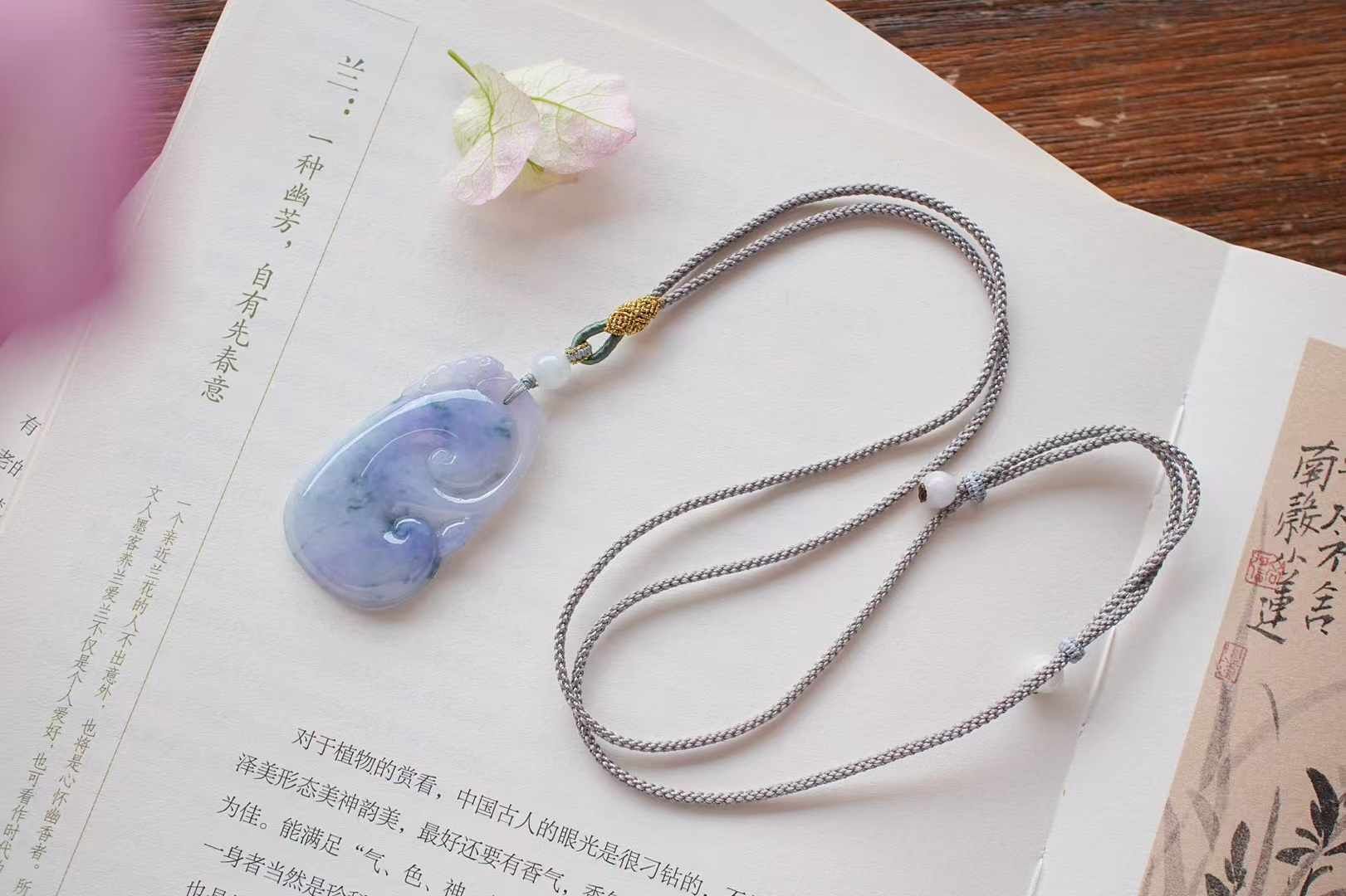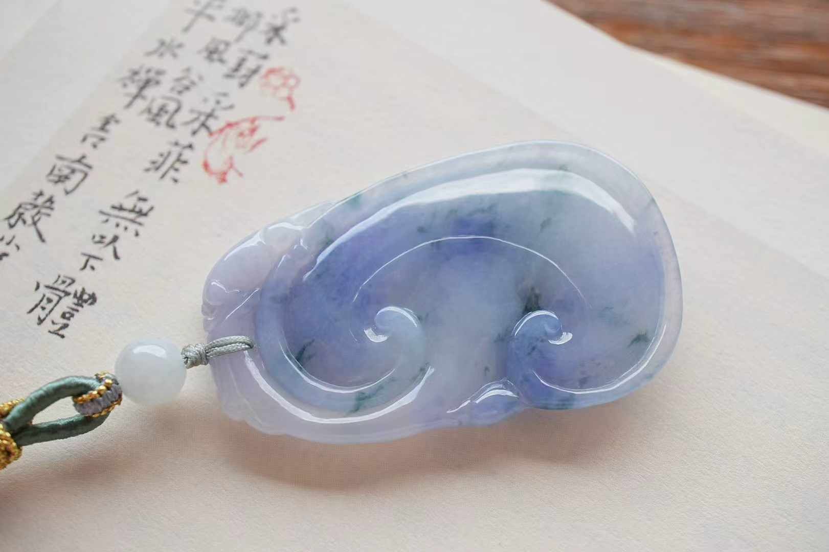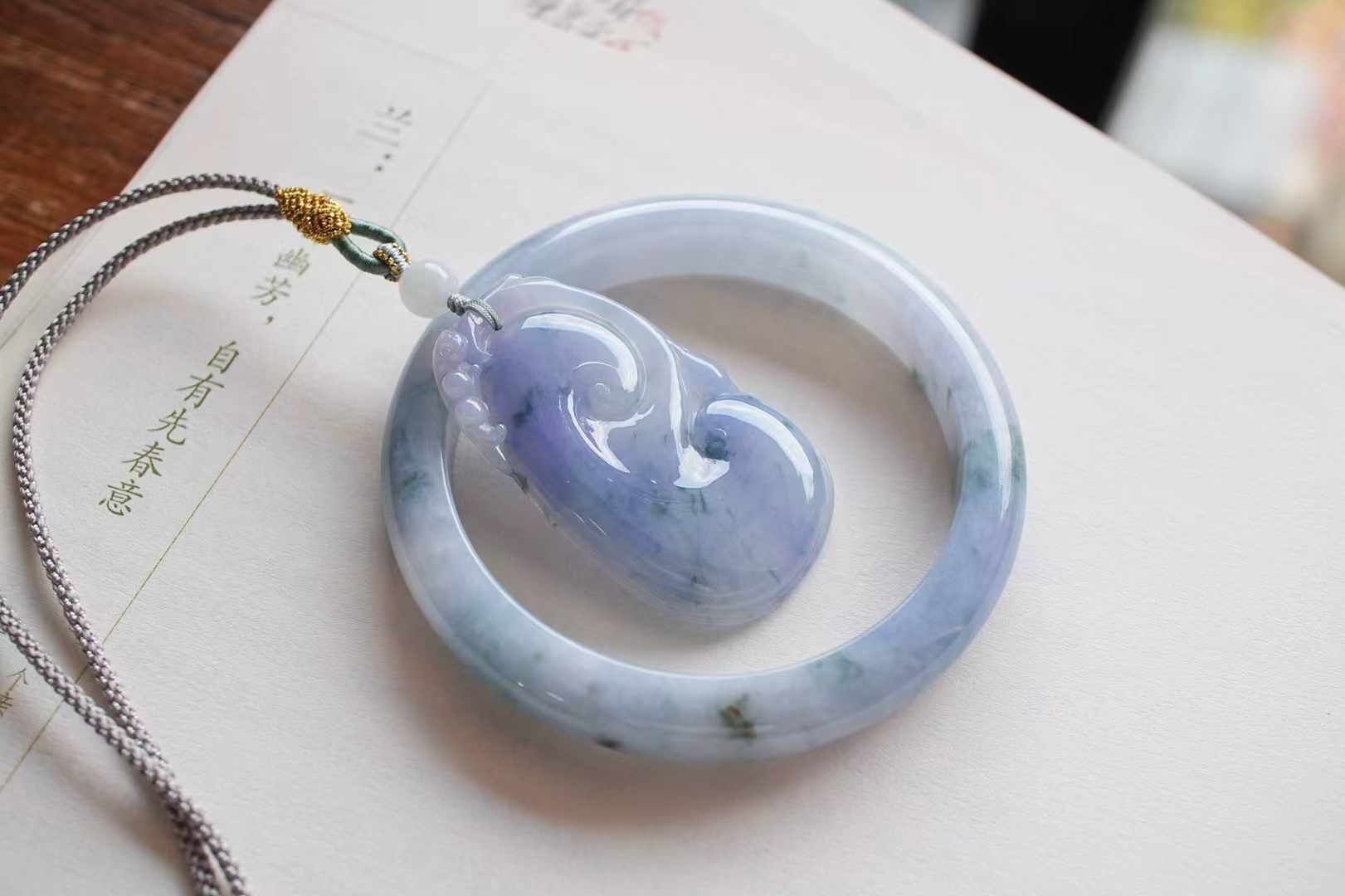 自然造物就是這麼神奇,超有特色的翡翠如意吊墜!以淡紫為底,飄花如新綠暈染,所有色彩都蒙上一層柔焦濾鏡,朦朧又高級。