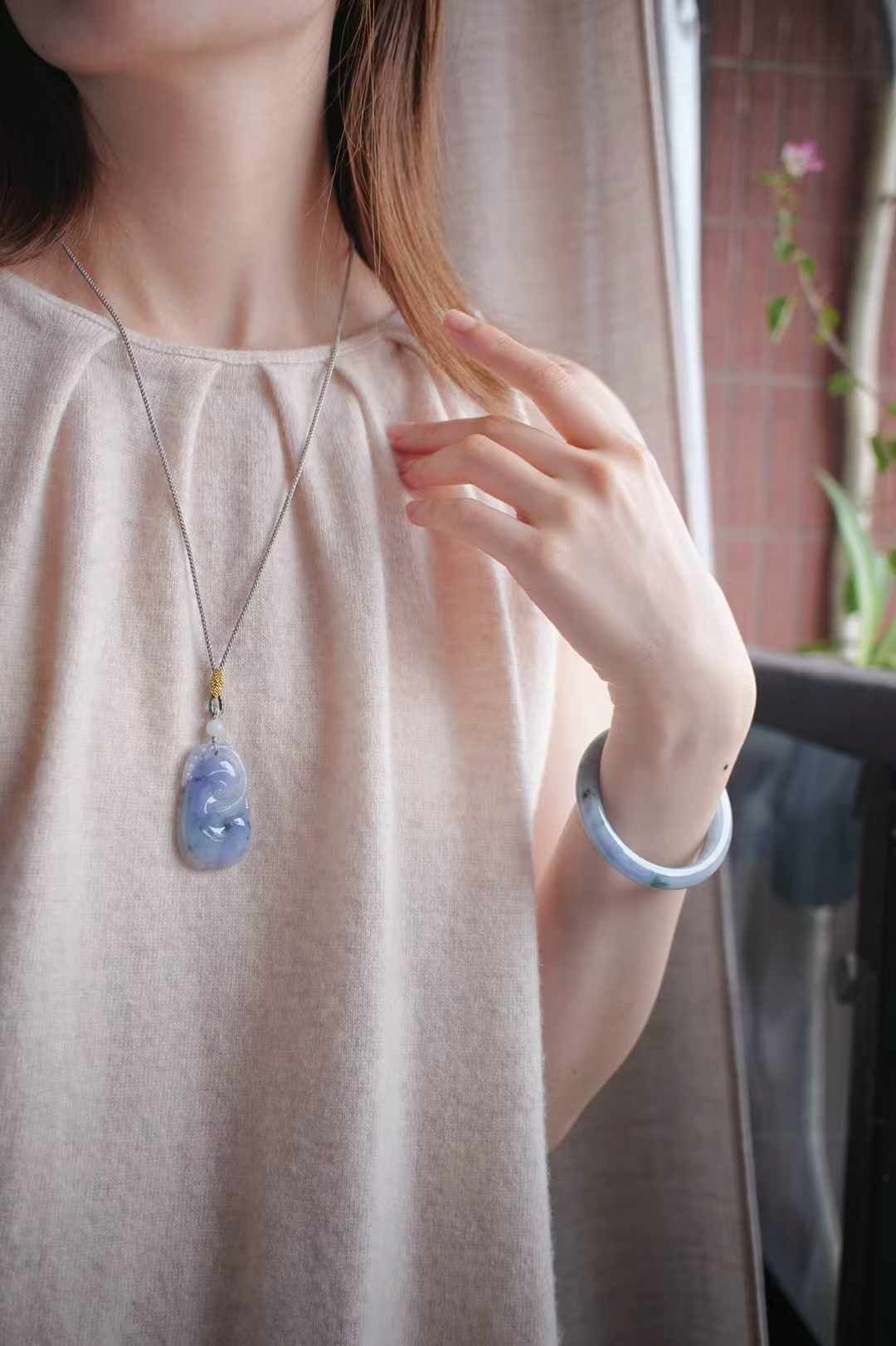 大件上身存在感妥妥的,純手工編繩設計,優雅浪漫,事事如意,這塊料子還做了一條手鐲,配套優先。