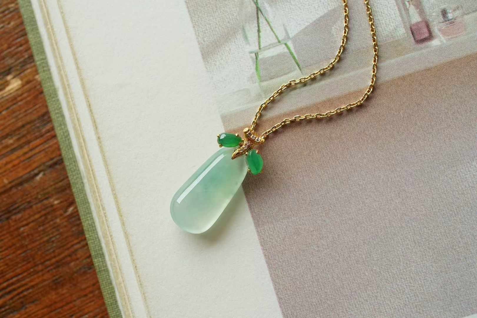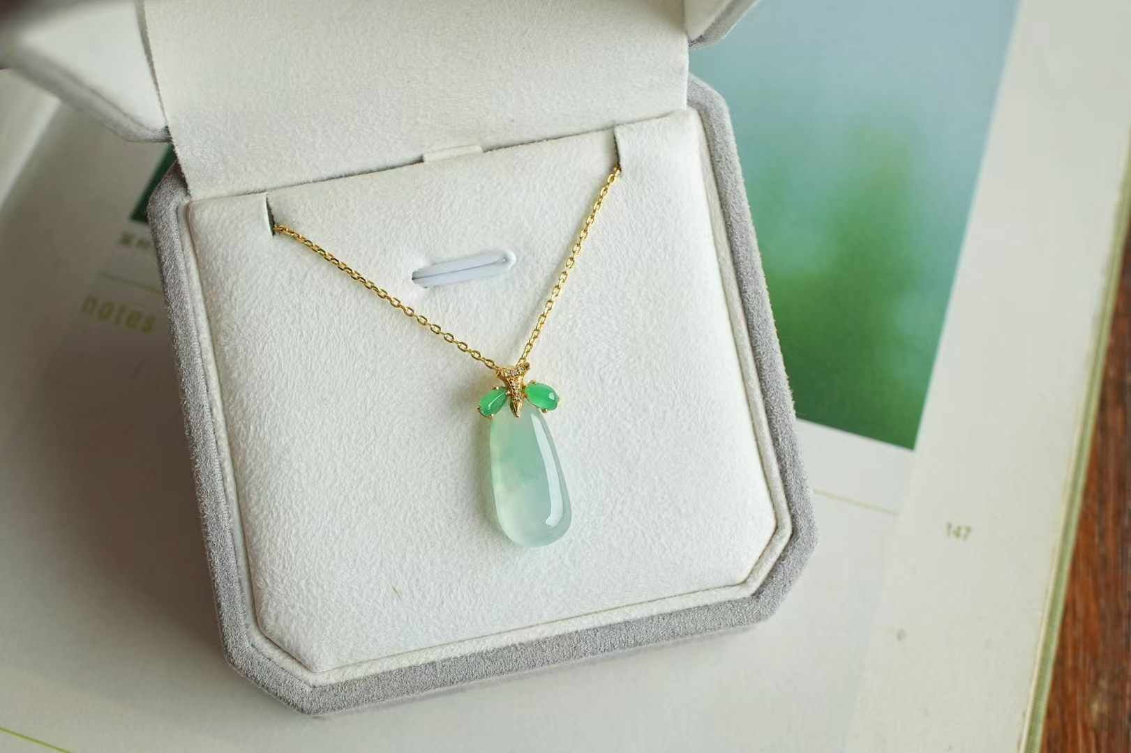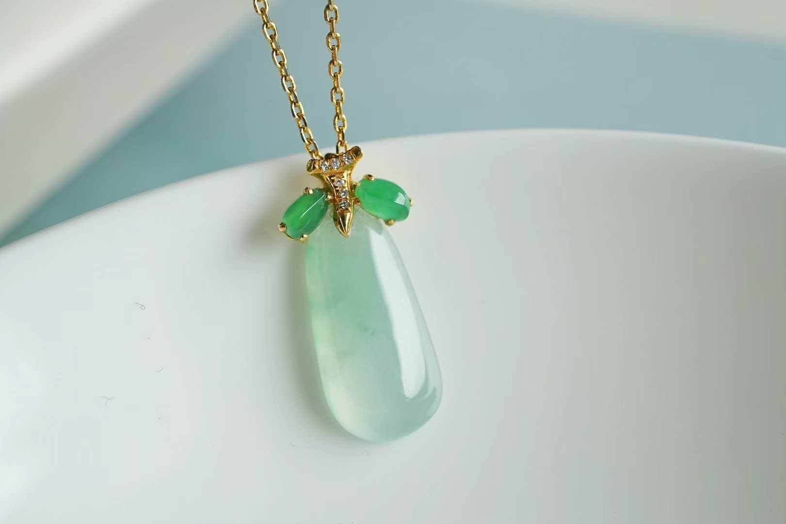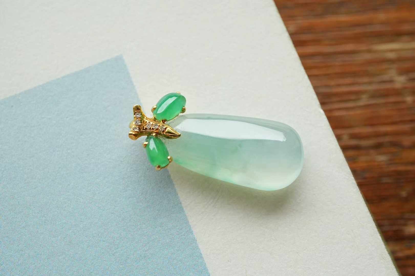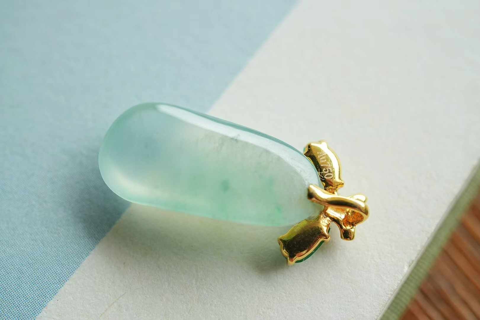 • 翡翠高冰種飄綠福瓜吊墜,天然翡翠A玉, 緬甸玉, Jade, Jadeite