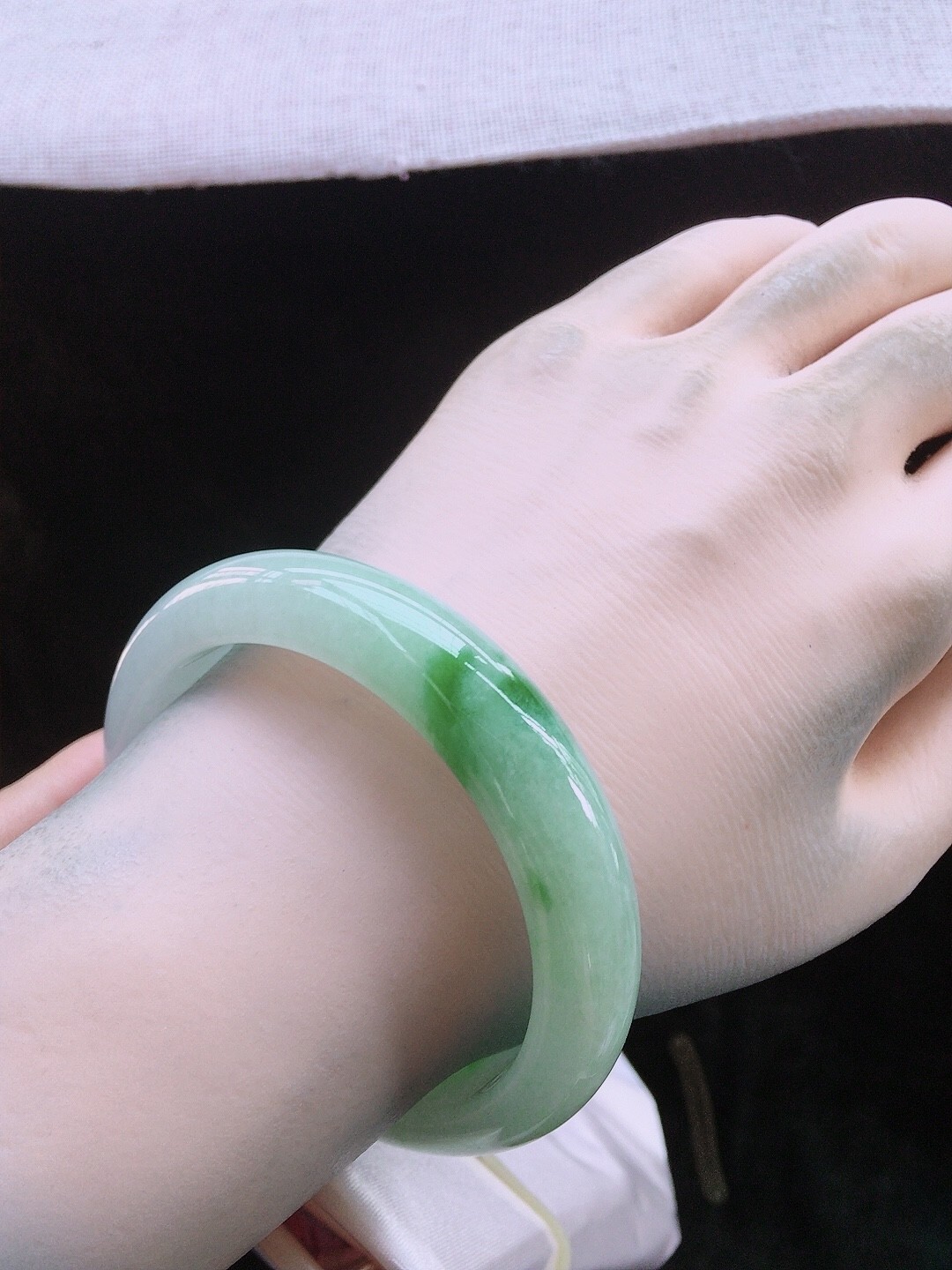 • 冰飄綠翡翠手鐲,天然翡翠A玉, 緬甸玉, Jade, Jadeite