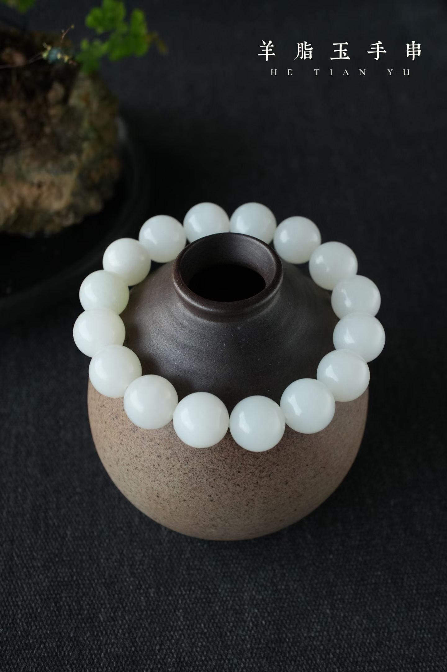 • 和田玉羊脂玉手串 (13mm直徑),天然和田玉軟玉