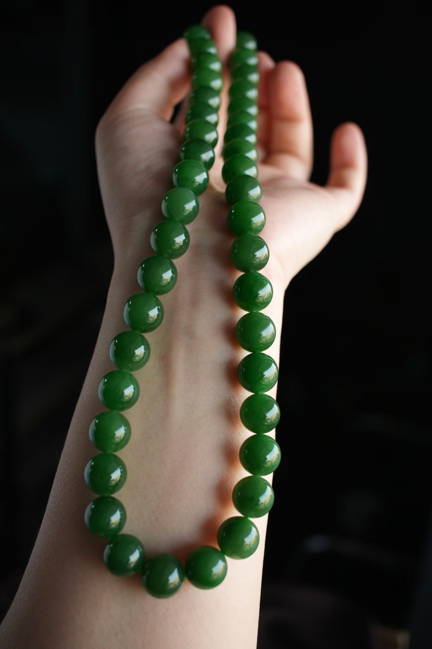 325445 和田玉濃郁菠菜綠項鏈 (12mm直徑)