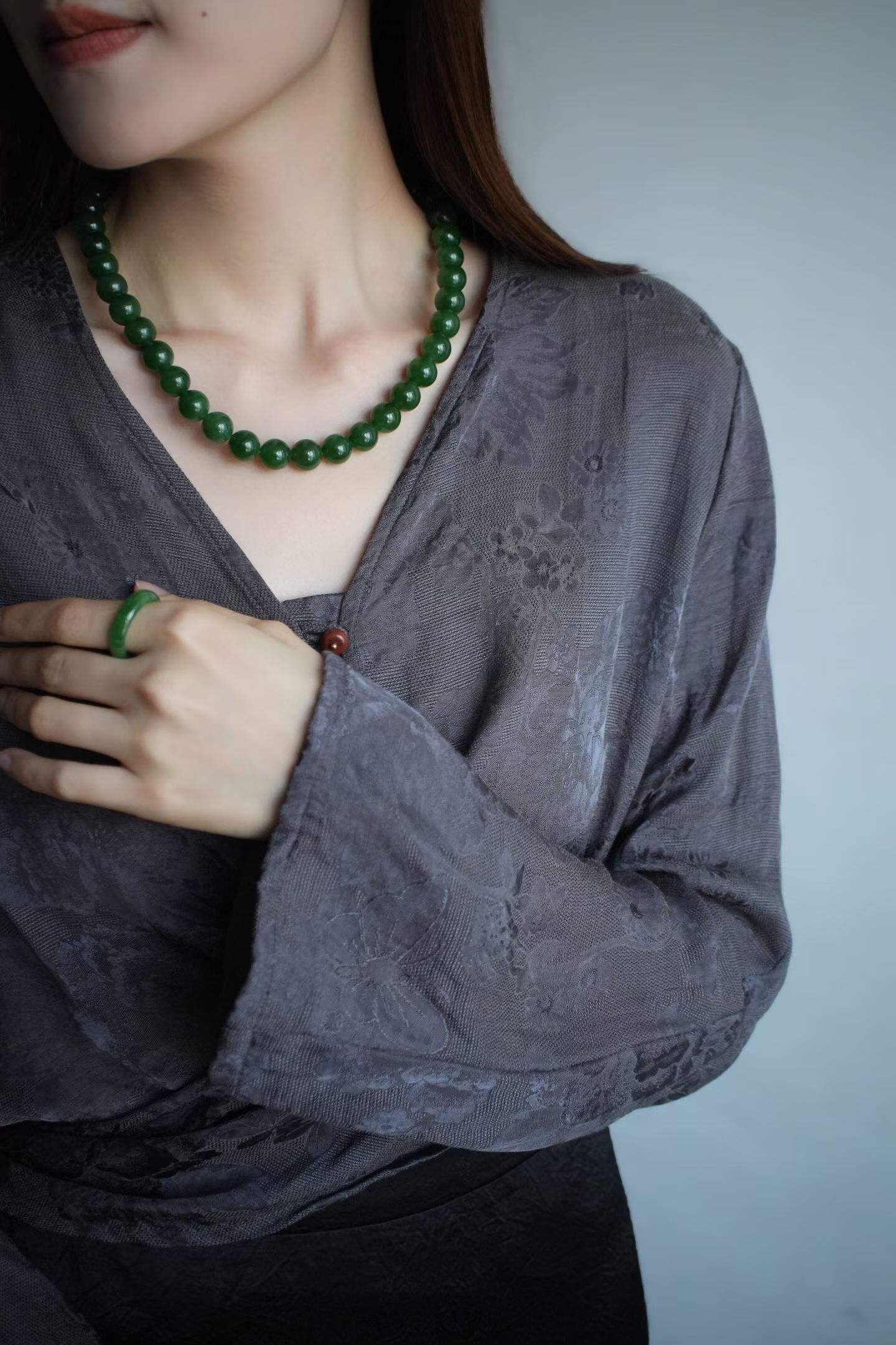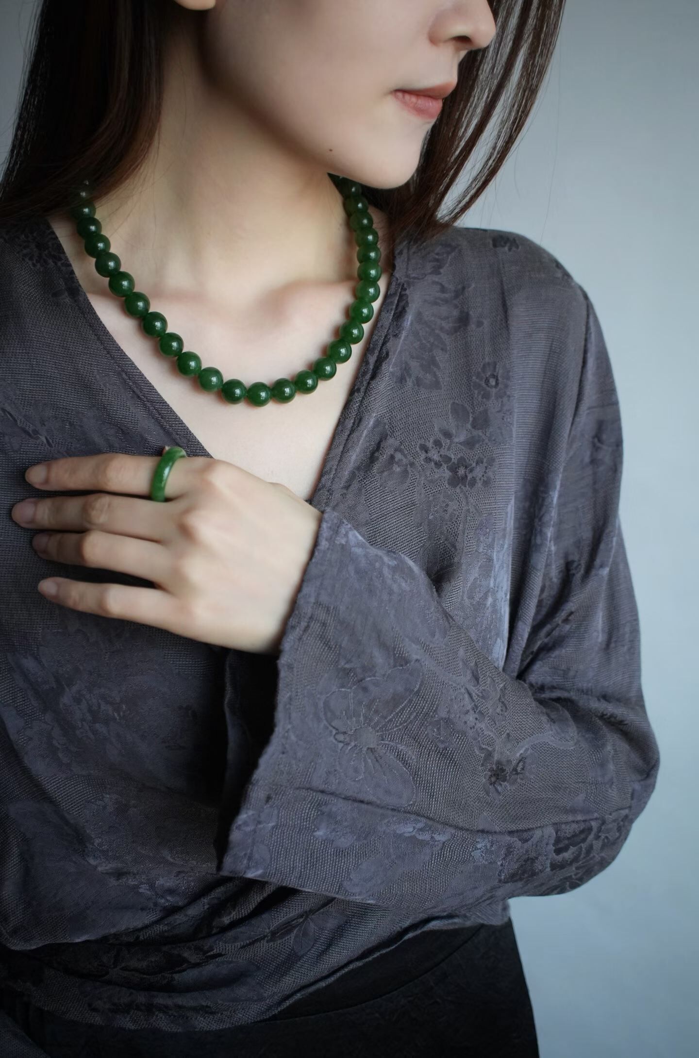 碧玉素有“無鐵不綠”之說,老礦料帶微微鐵是正常現象,上身社交距離完美,超高性價比。冬天搭配大衣毛衣,人群中一眼顯貴,憑實力硬美。