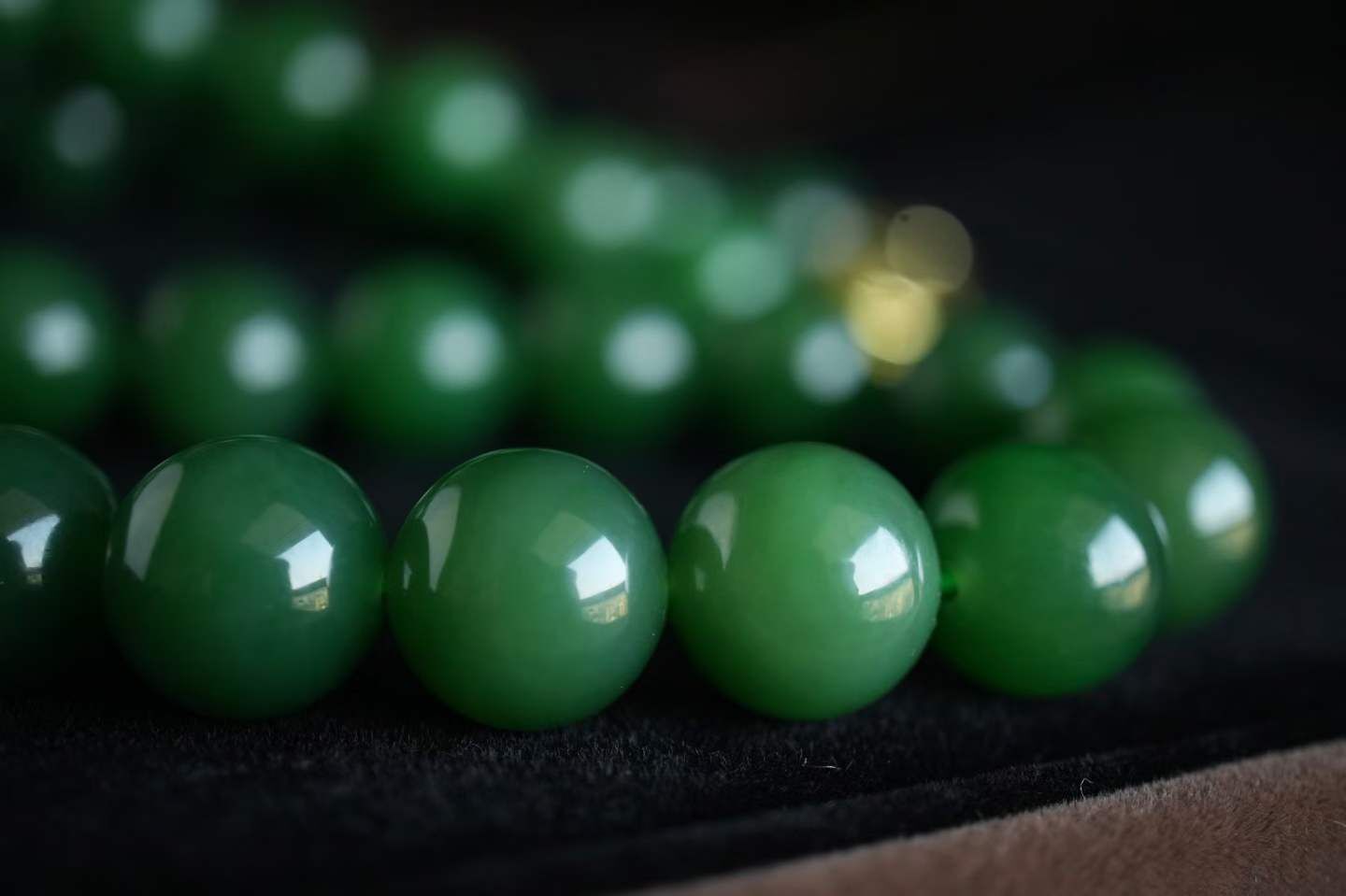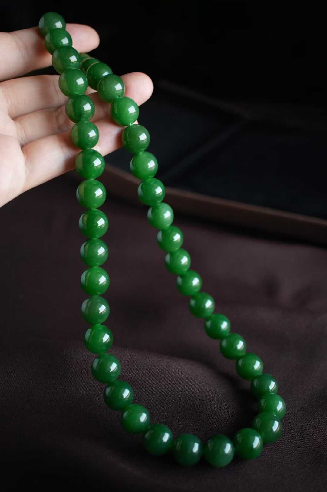 • 和田玉濃郁菠菜綠項鏈 (12mm直徑),天然和田玉軟玉