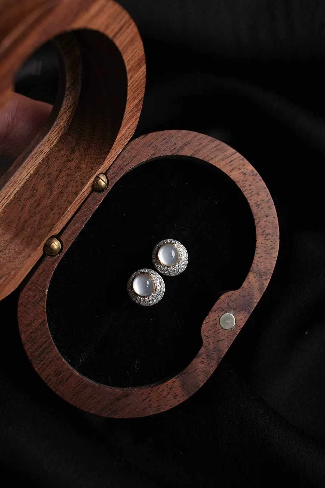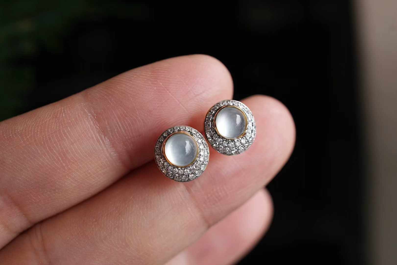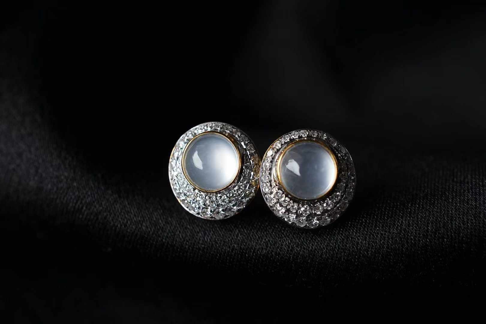 天然翡翠A玉,18K金鑲高冰種蛋面翡翠耳釘,緬料高冰種翡翠蛋面,通透乾淨,光感強烈,像一汪清泉,靈氣滿滿。18K金精工鑲嵌,雙排鑽設計熠熠生輝,輕奢時尚,很精致。