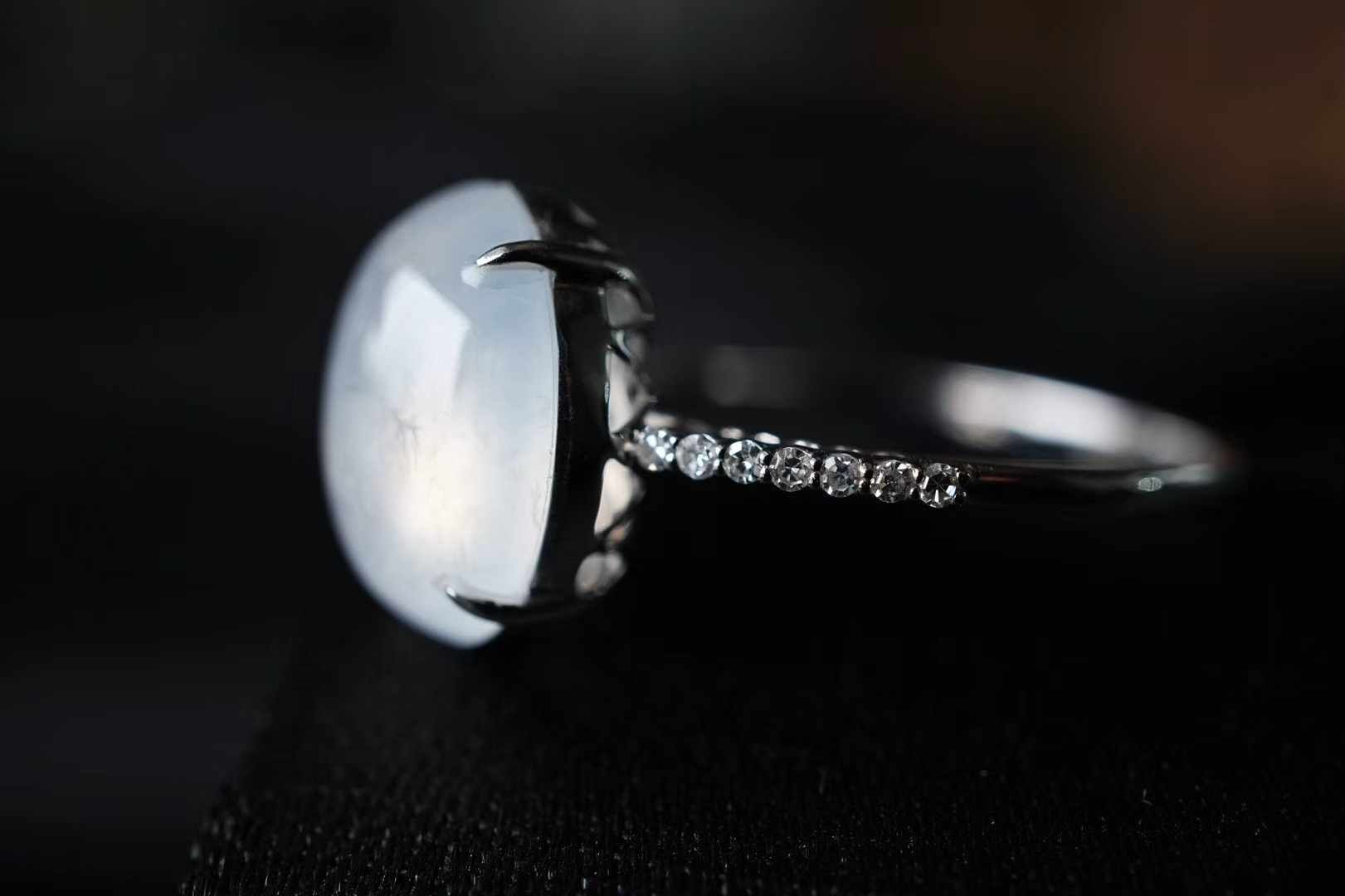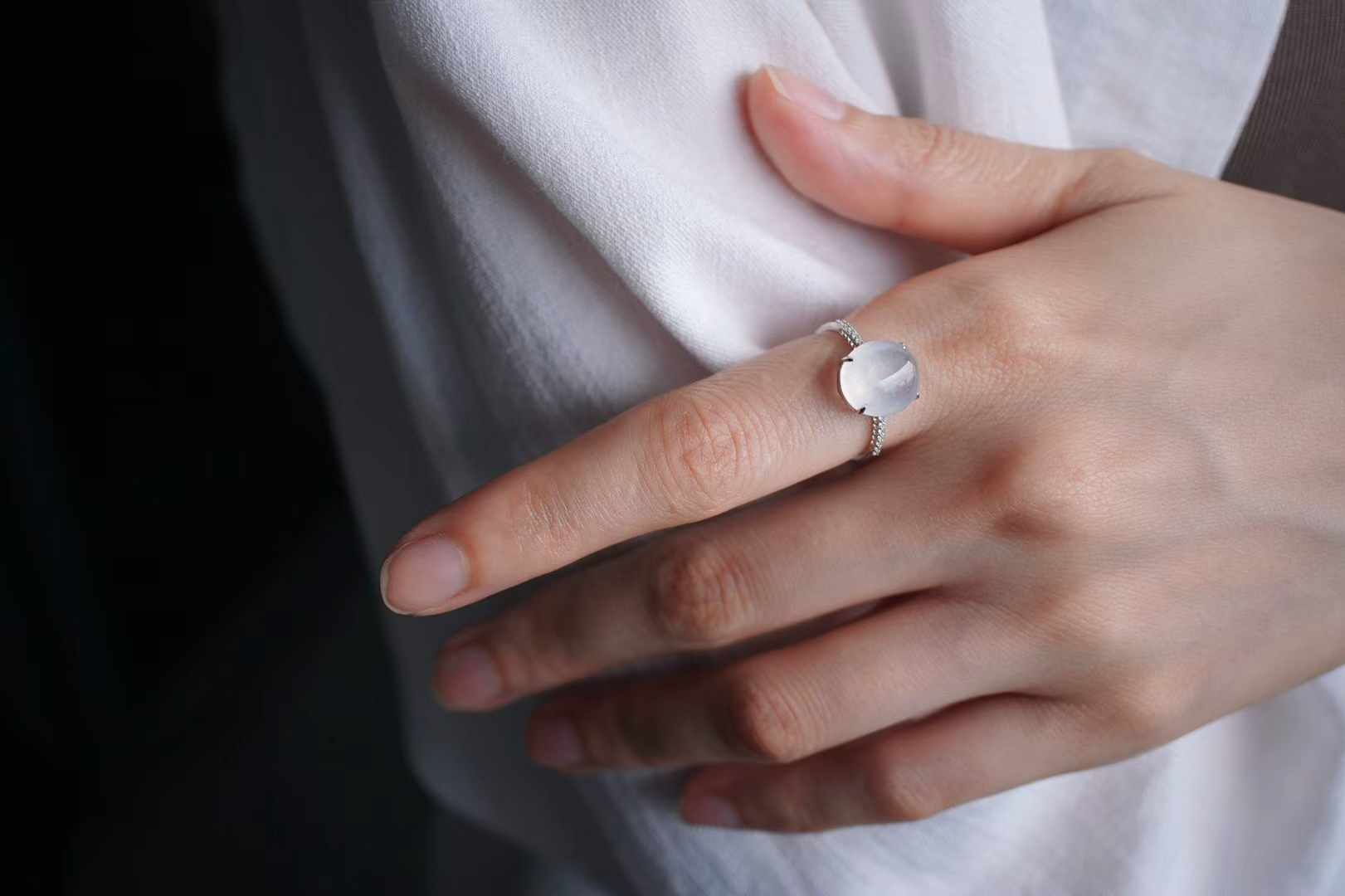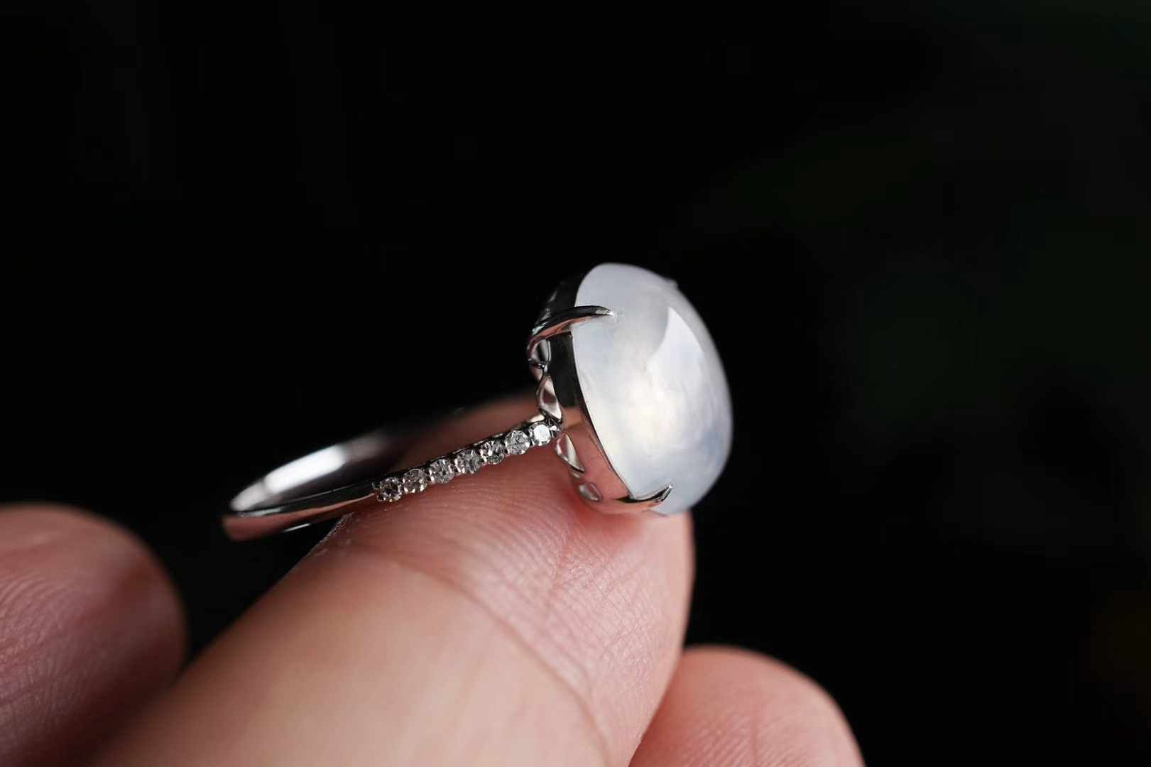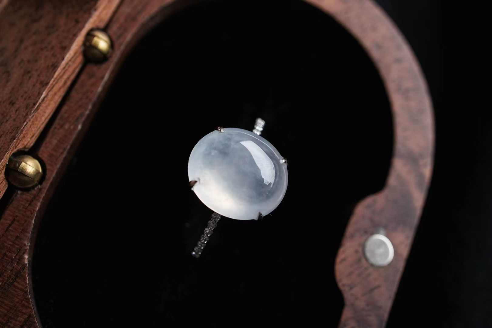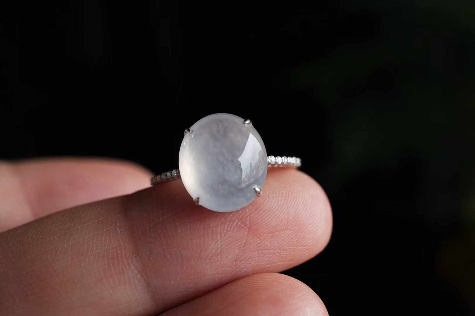 天然翡翠A玉,18K金鑲高冰蛋面戒指,這種清透感絕了!緬料老坑種,高冰種翡翠蛋面,色澤純淨無雜,通透起光感,簡簡單單就很美。