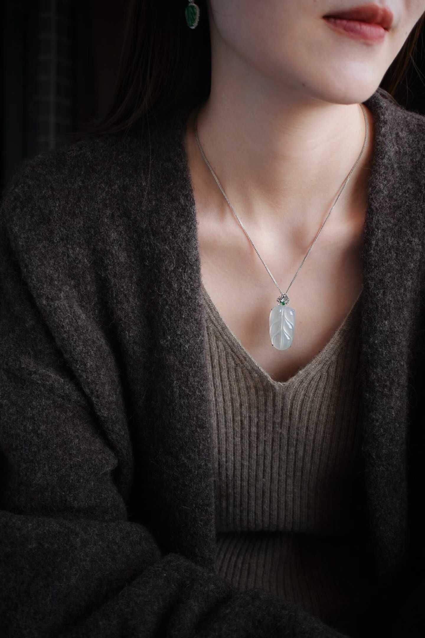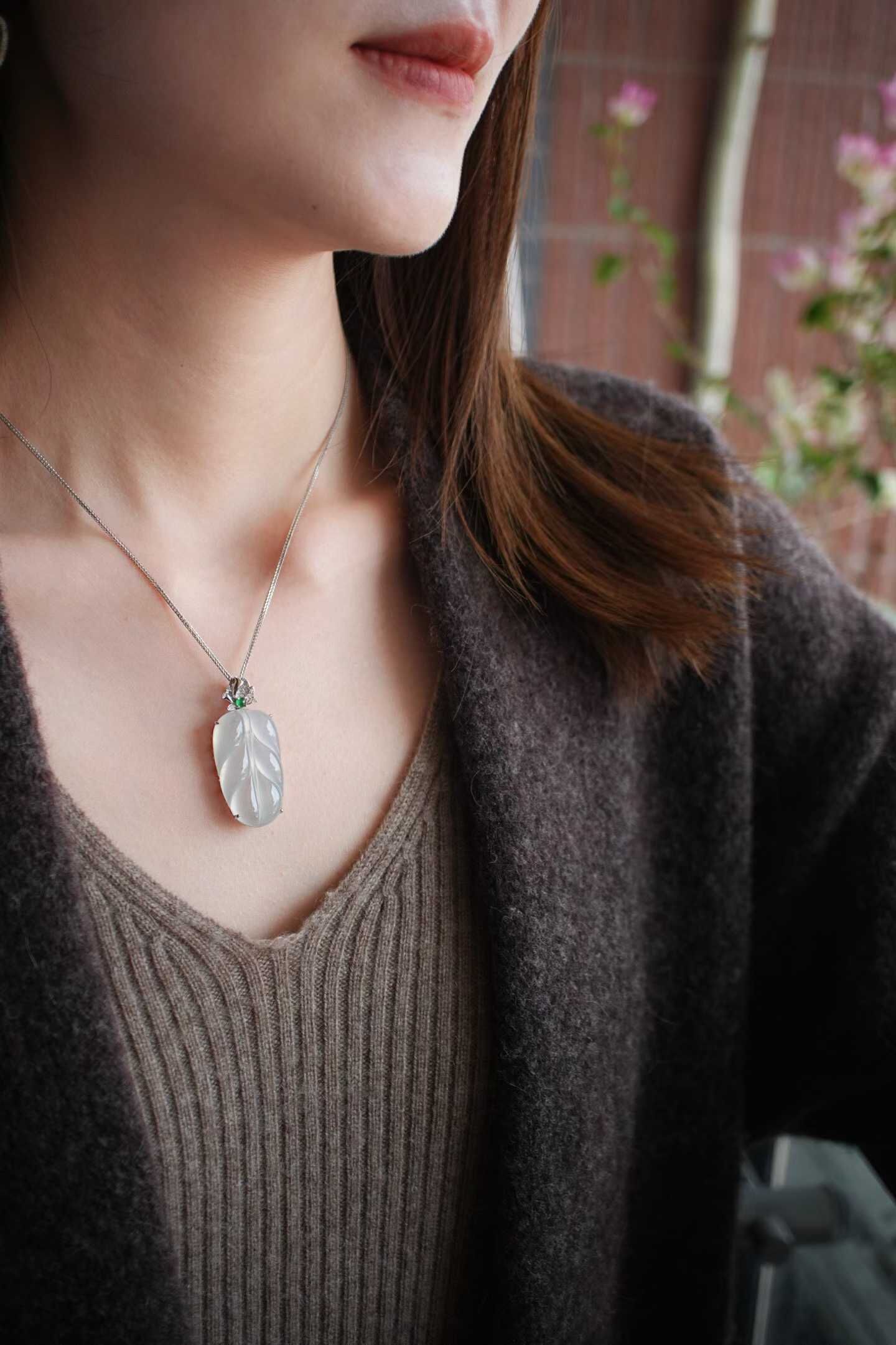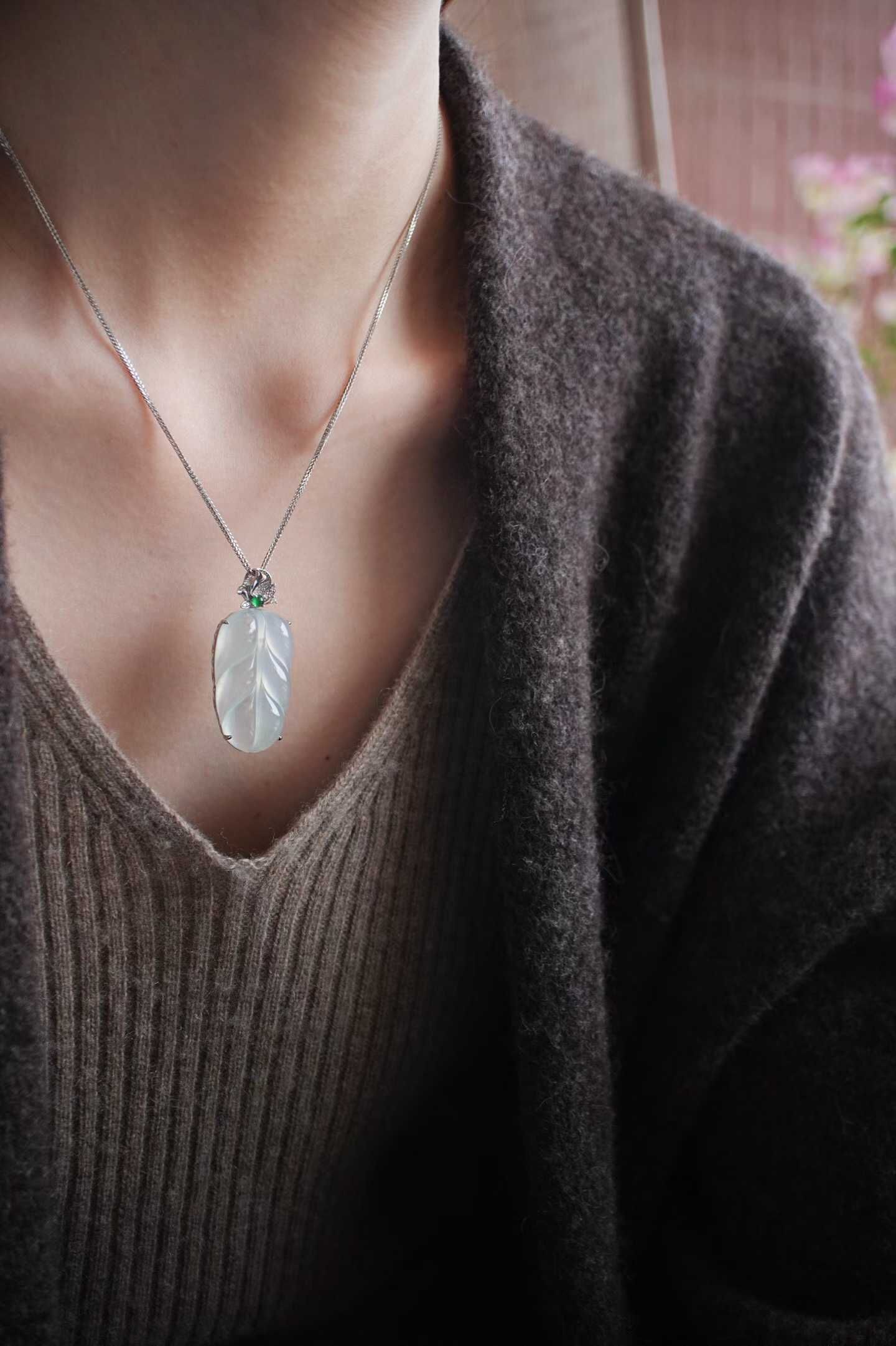 • 翡翠冰種葉子吊墜,天然翡翠A玉, 緬甸玉, Jade, Jadeite